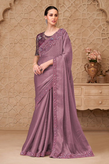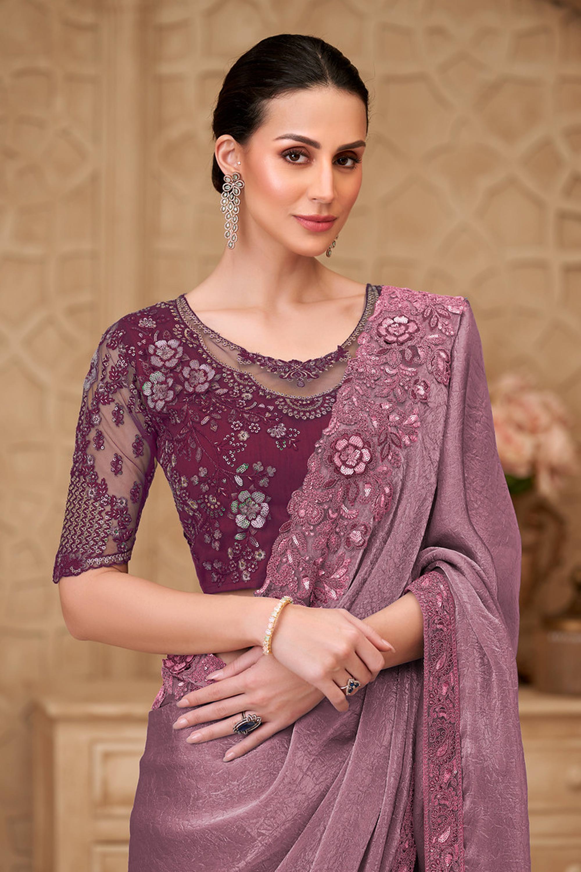Georgette Satin Embroidered Pink Festive Wear Saree
