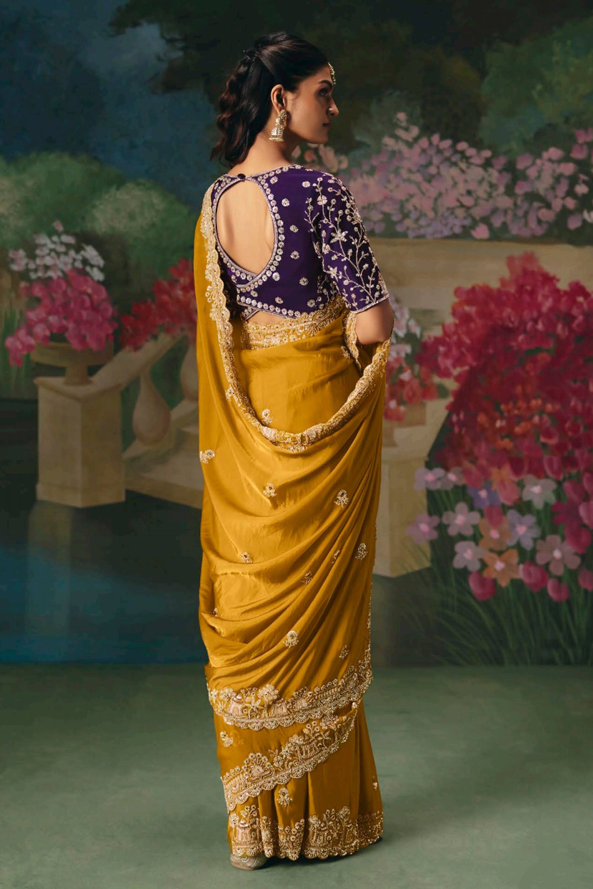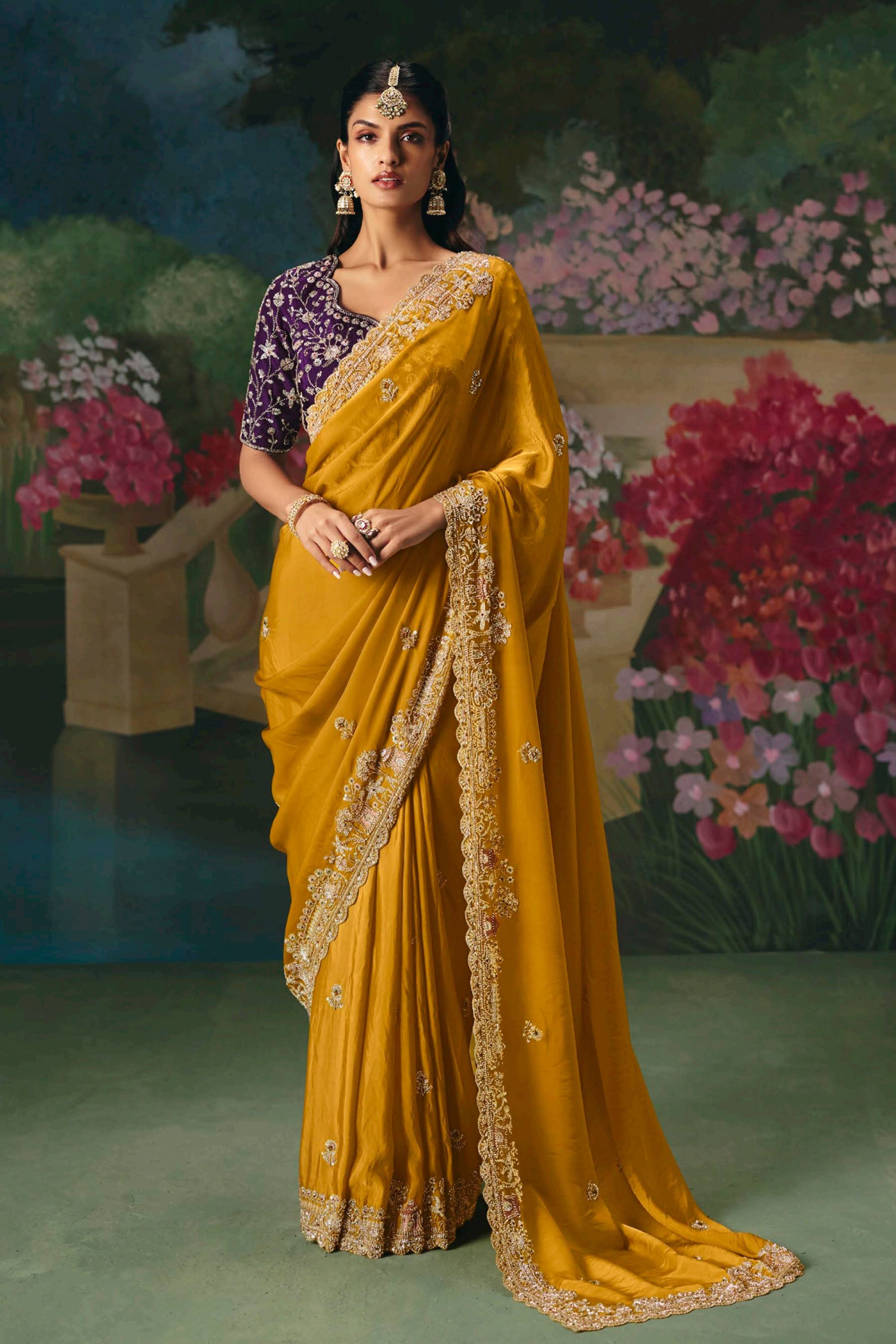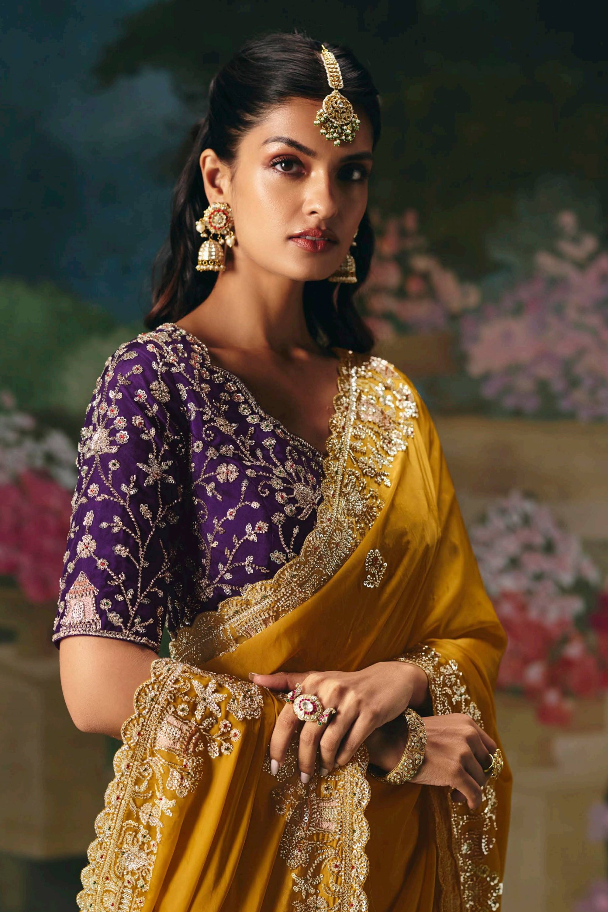 Mustard Wedding Wear Art Silk Embroidered Saree