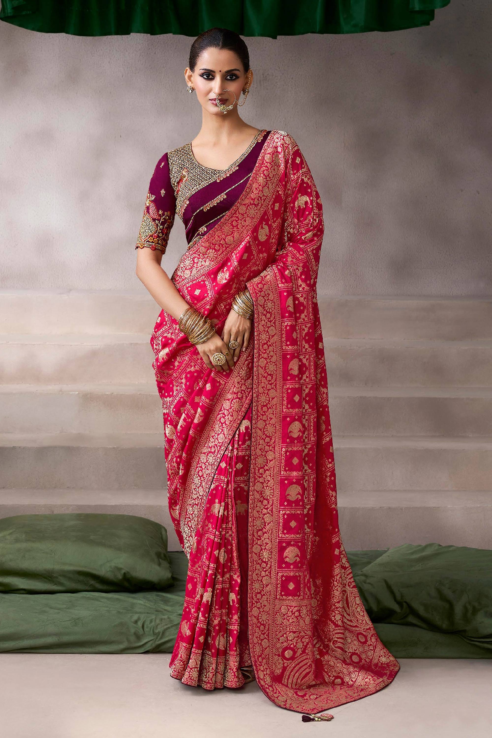 Enhance your festive look with this premium Zari Weaving Work Crepe Saree. This beautifully crafted saree is designed with an intricate weaving pattern that exudes refinement and traditional artistry. Made from high-quality crepe, it feels smooth against your skin and stays lightweight, allowing easy movement and grace. The saree comes with an unstitched heavy work blouse, so you can tailor it to suit your preferences and achieve a personalized, polished style. Perfect for cultural celebrations, evening events, or family gatherings, this saree offers a combination of comfort and class that never goes out of style.