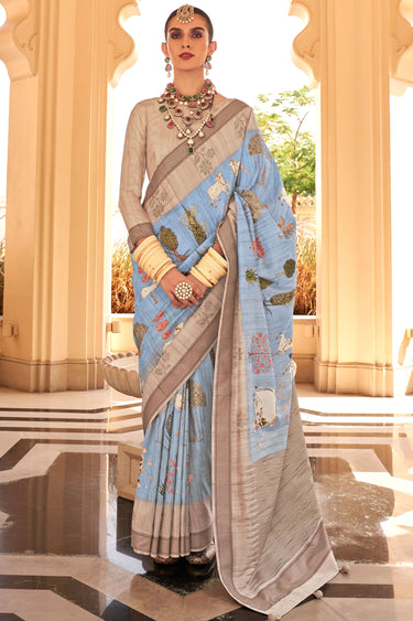 Sky Blue Color Art Silk Fabric Coveted Digital Printed Saree