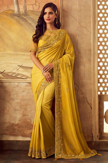 Yellow Party Wear Art Silk Embroidered Border Work Saree With Fancy Blouse