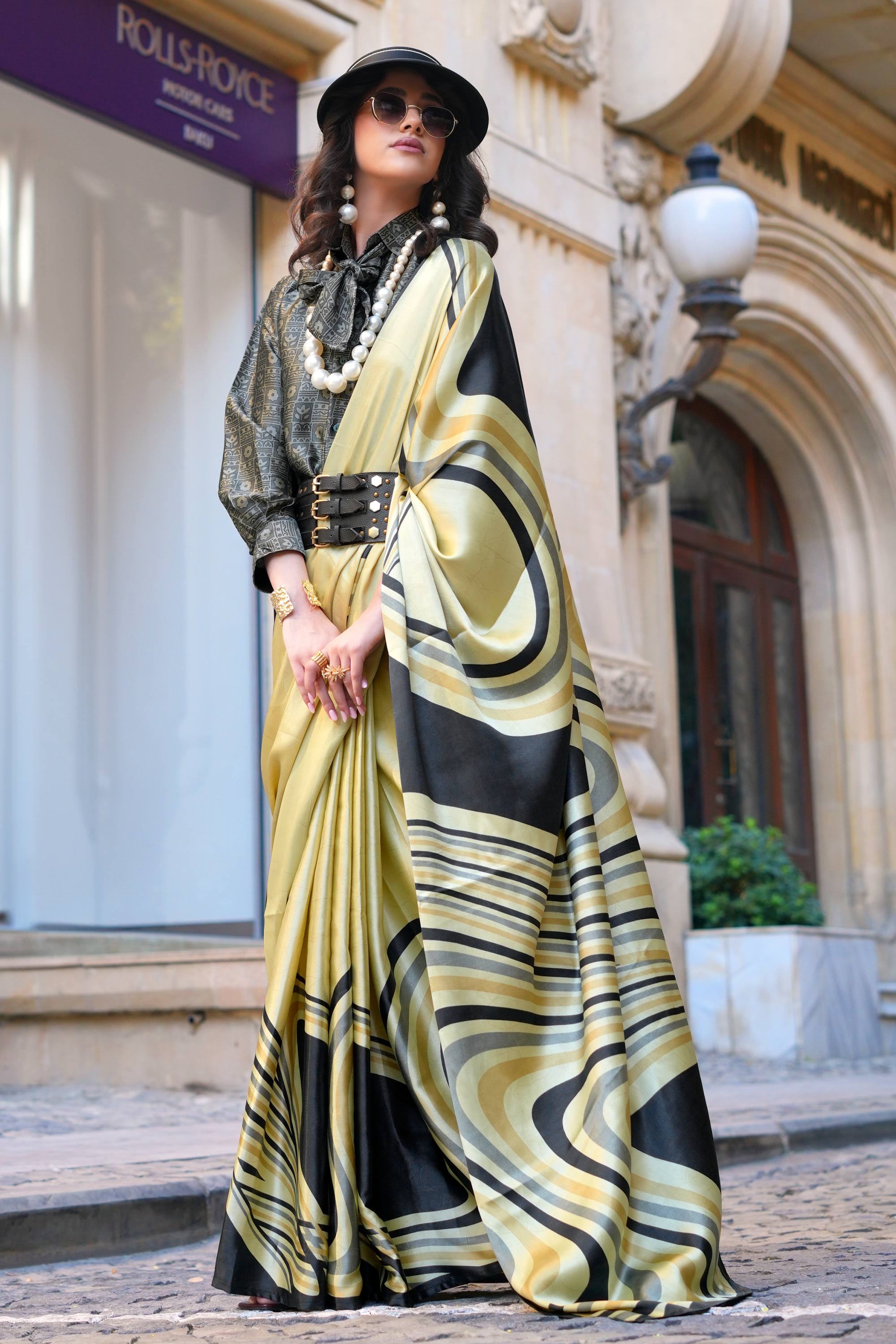 Add an elegant touch to your wardrobe with this exquisite Spanish Satin Designer Saree, crafted for weddings and special occasions. Featuring vibrant digital prints, the fabric radiates sophistication and grace, perfect for a bride or festive events. Made from premium satin, this saree ensures a comfortable fit and smooth texture throughout your celebration. The unstitched blouse provides you with the freedom to design a custom-fit style to enhance your appearance. Elevate your fashion game effortlessly with this must-have bridal saree.