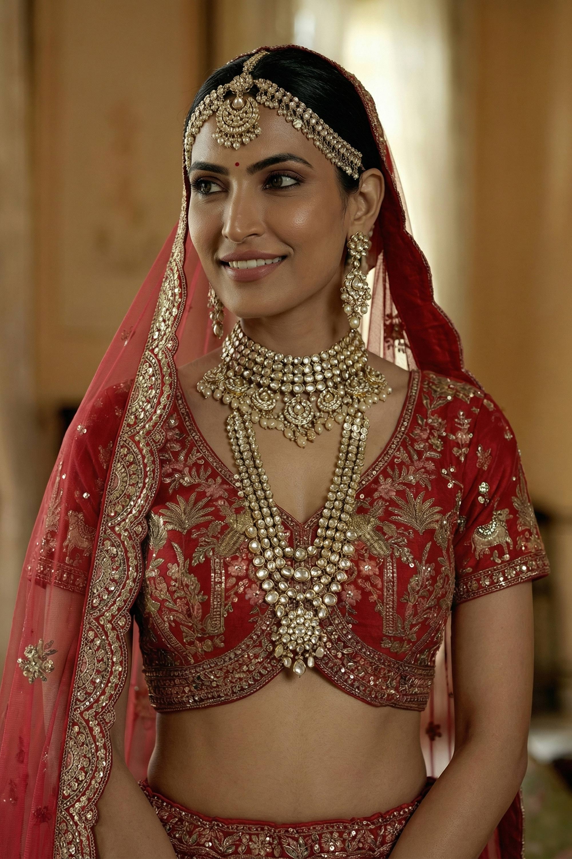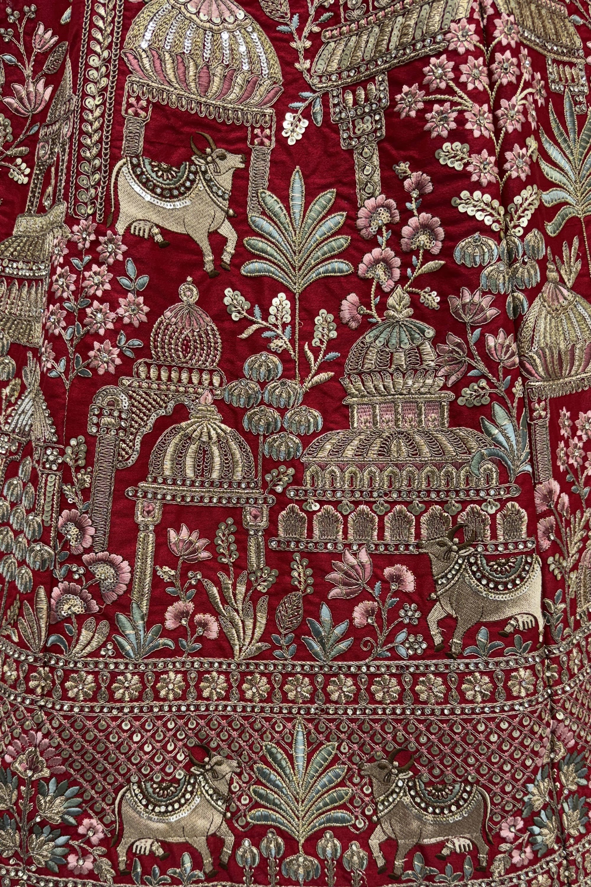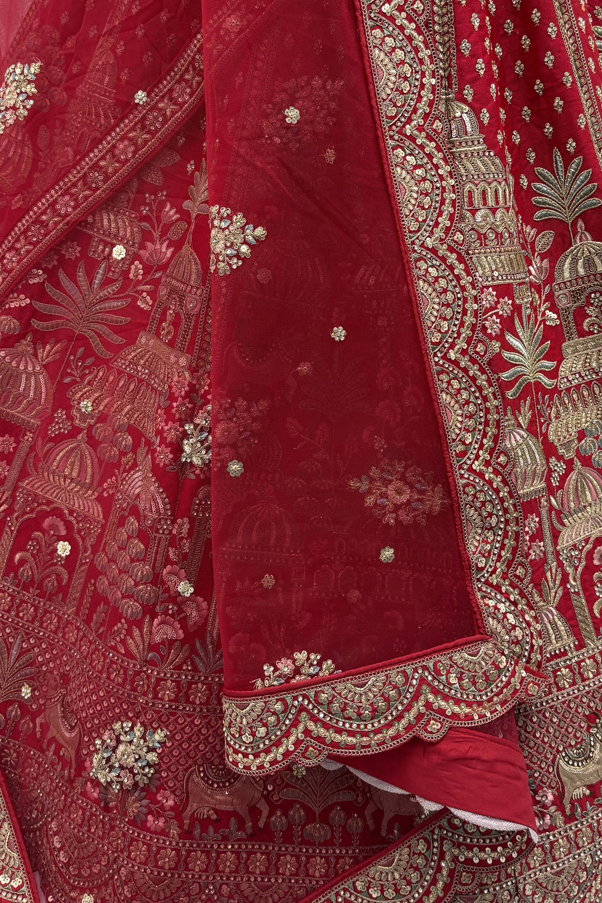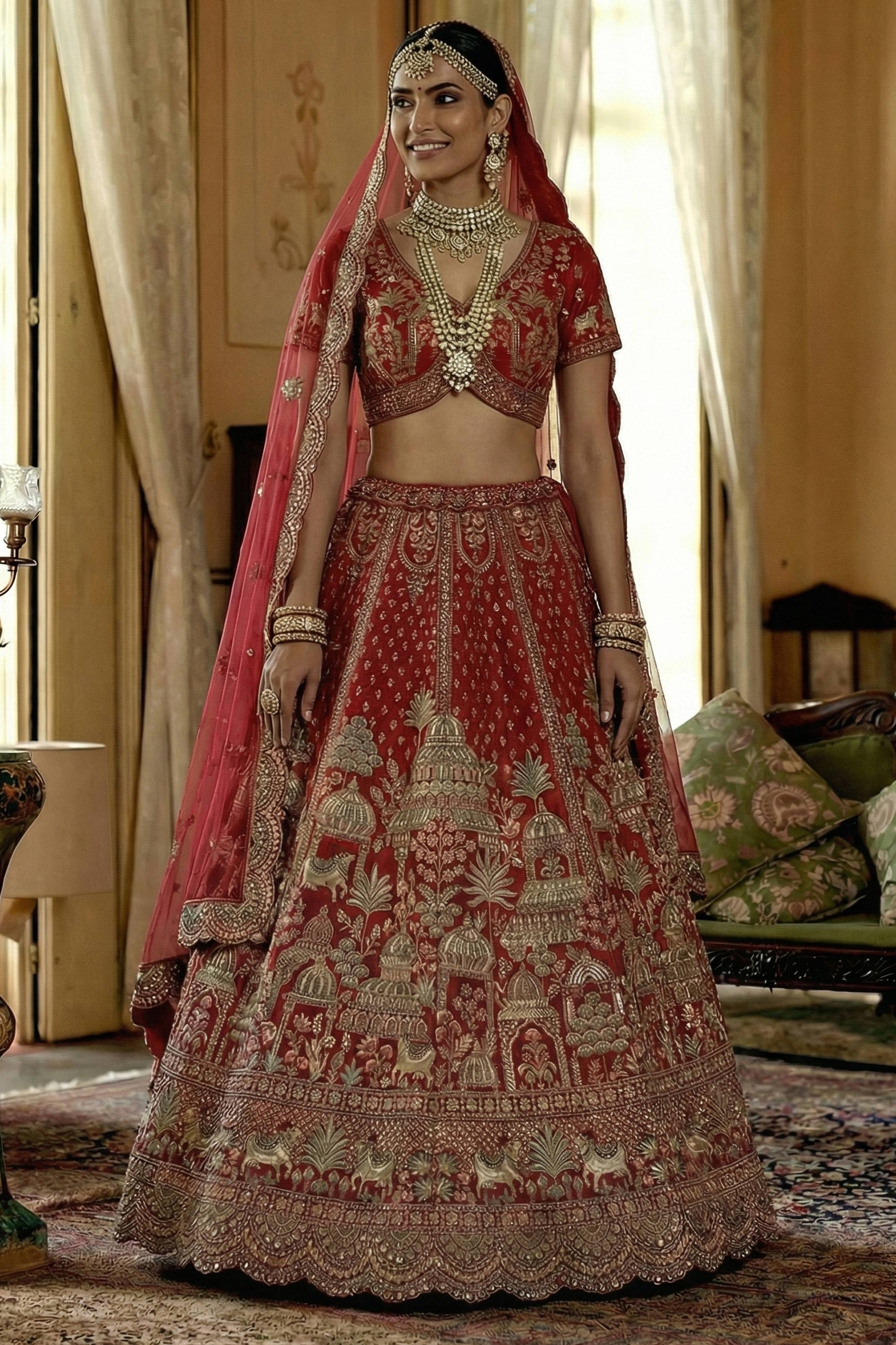 Red Heavy Embroidered Silk Bridal Lehenga Choli