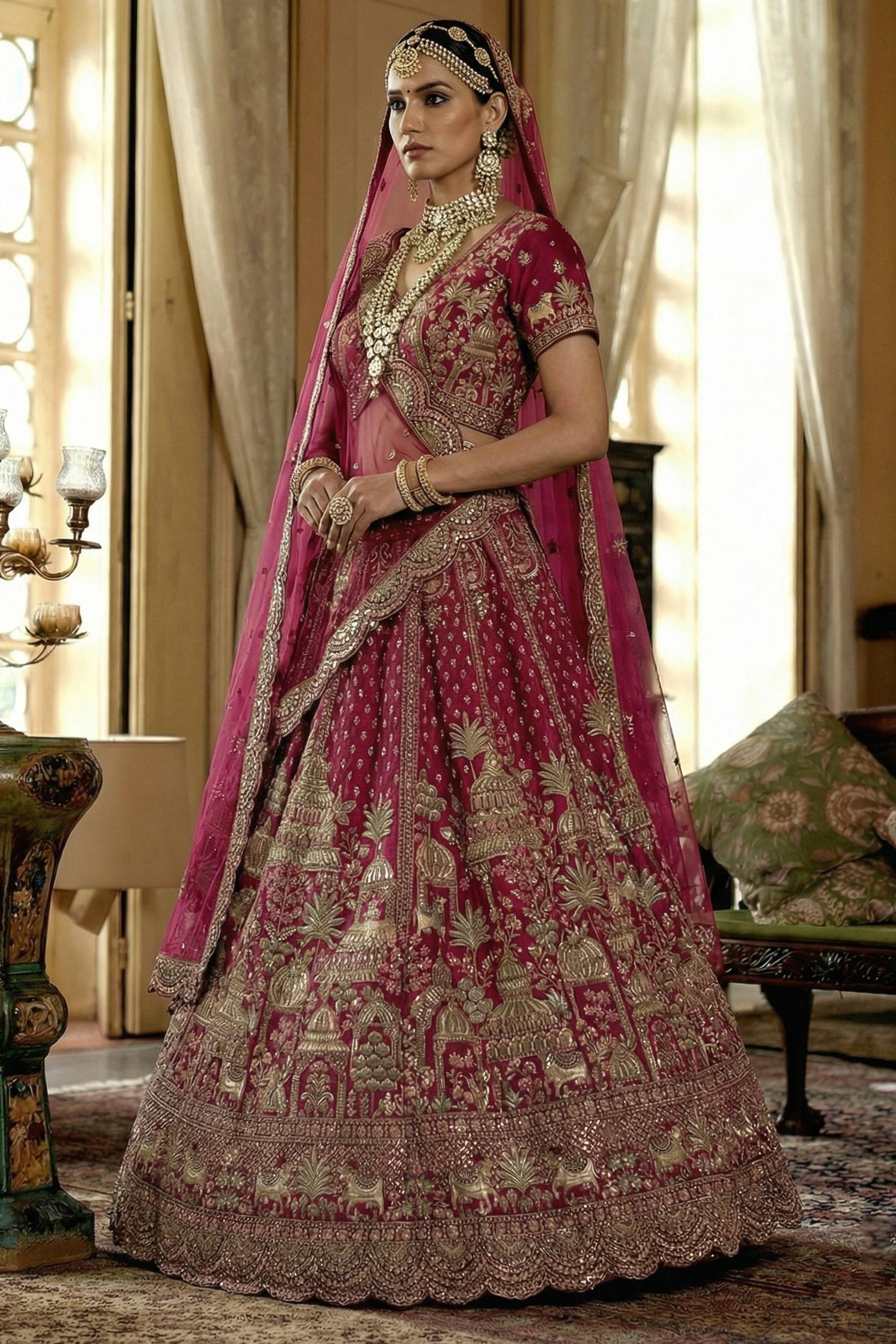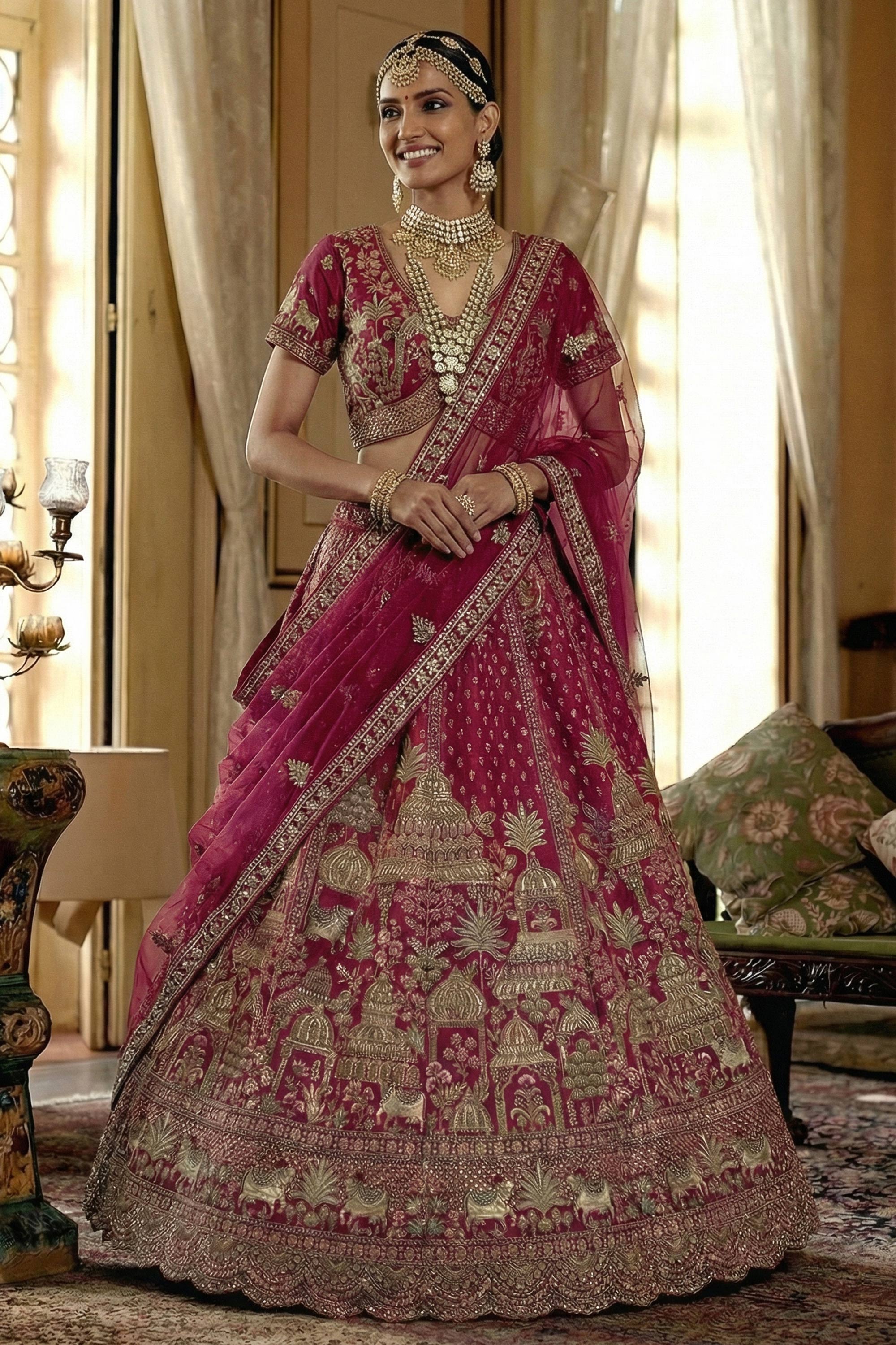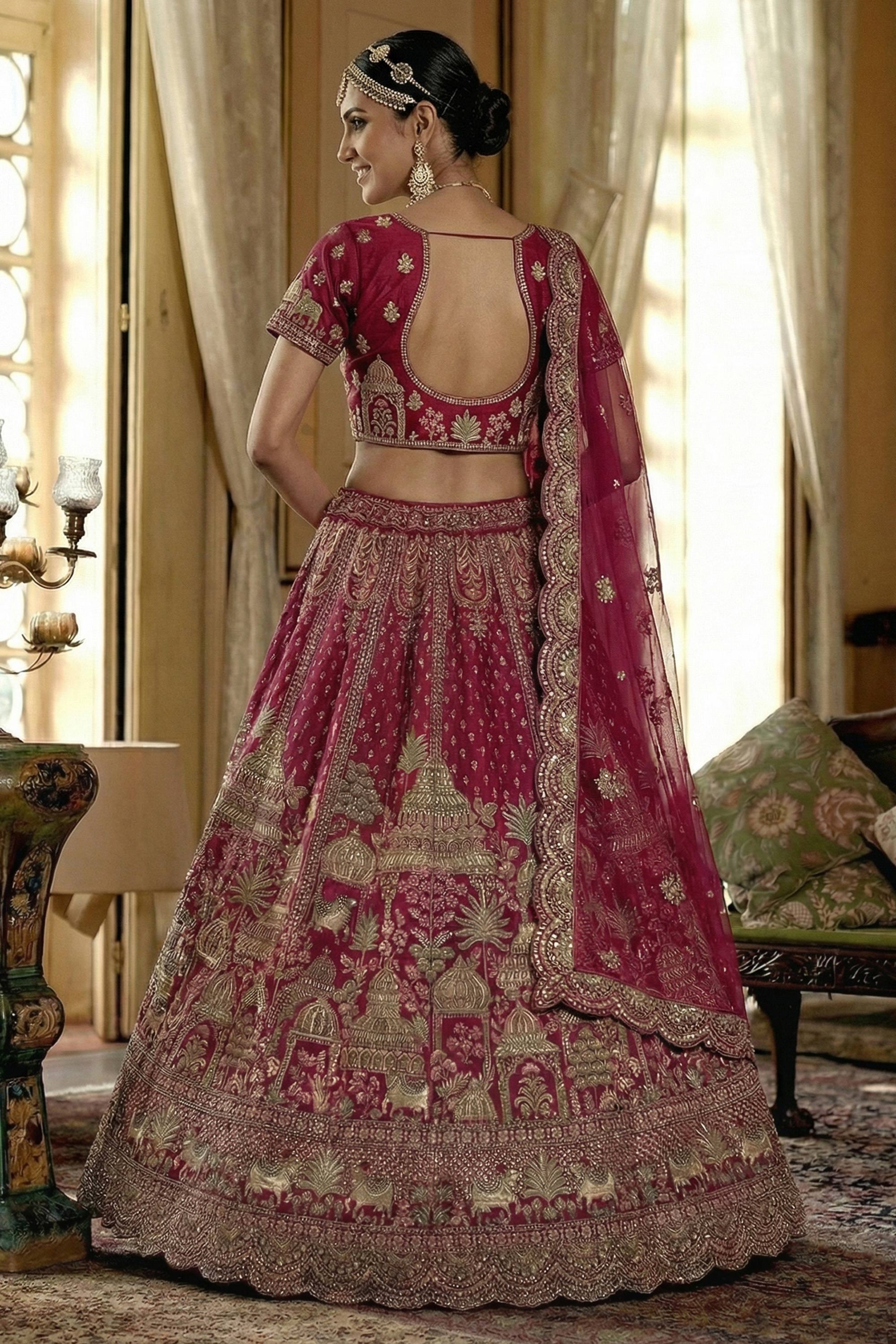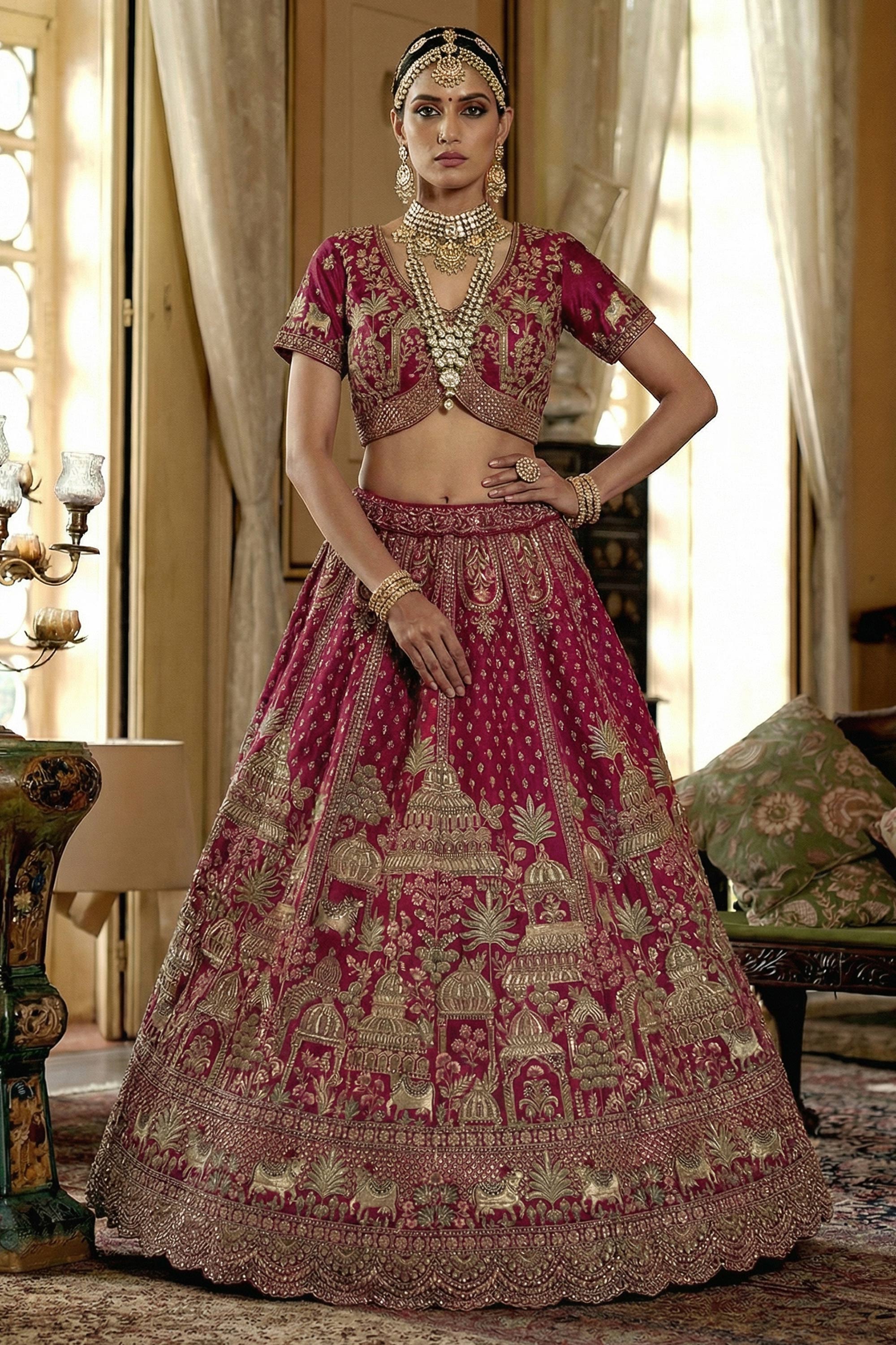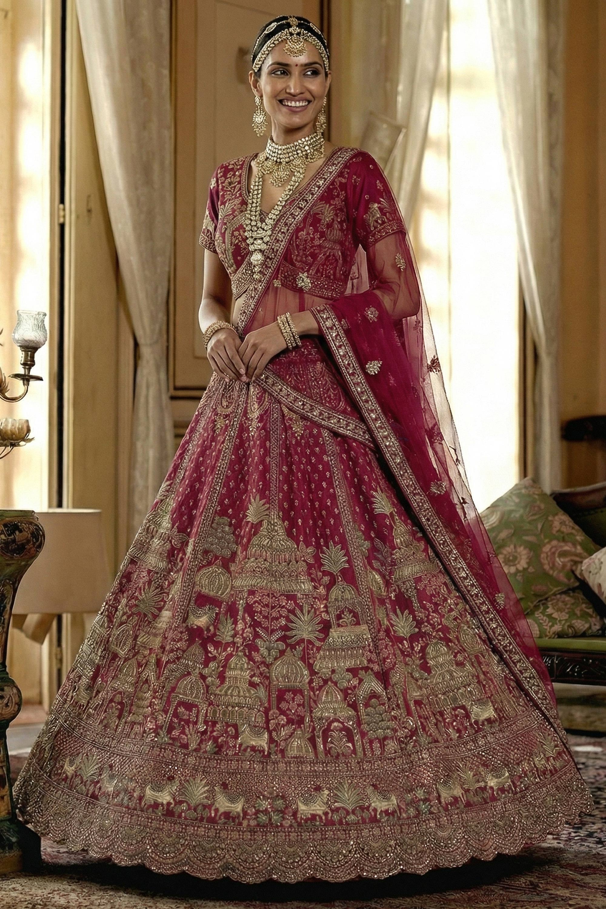 Silk Heavy Embroidered Maroon Bridal Lehenga Choli