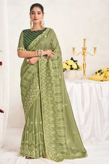 Khaki Color Embroidered Work On Silk Fabric Chic Saree