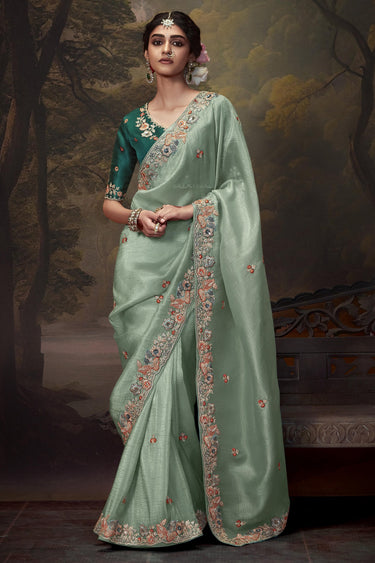 Rich Light Cyan Silk Saree