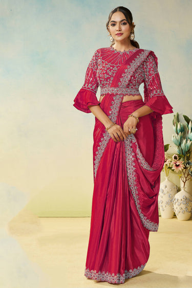Celebrate your special moments in style with this Readymade Designer Saree made from premium satin silk. The elegant border work adds a traditional touch, making it ideal for weddings, festivals, and special functions. Note: Due to digital photography, slight color variations may occur.