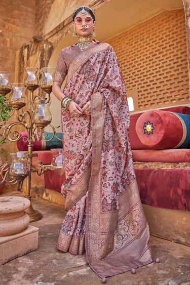 Art Silk Floral Printed Festive Wear Saree In Pink Color