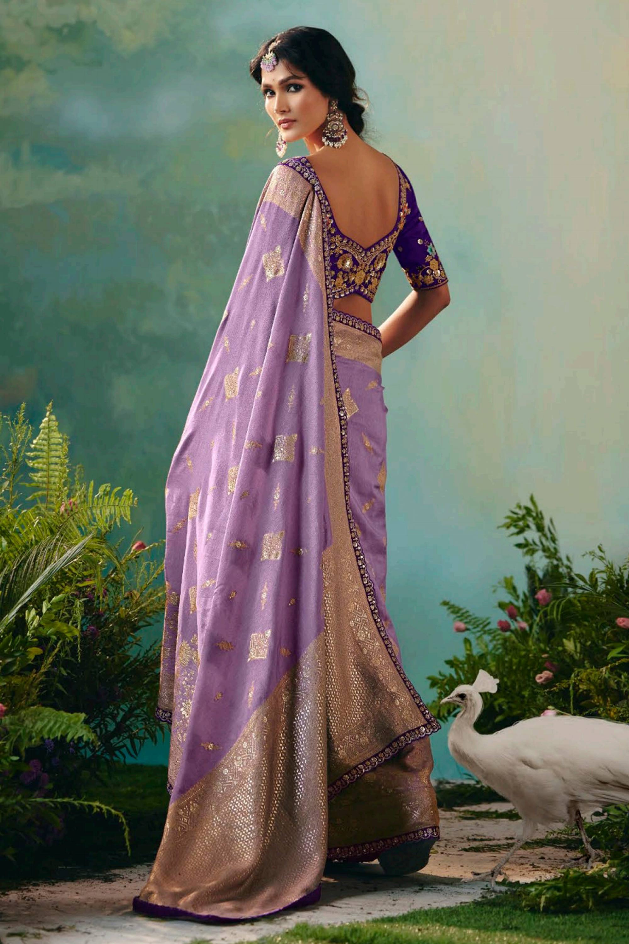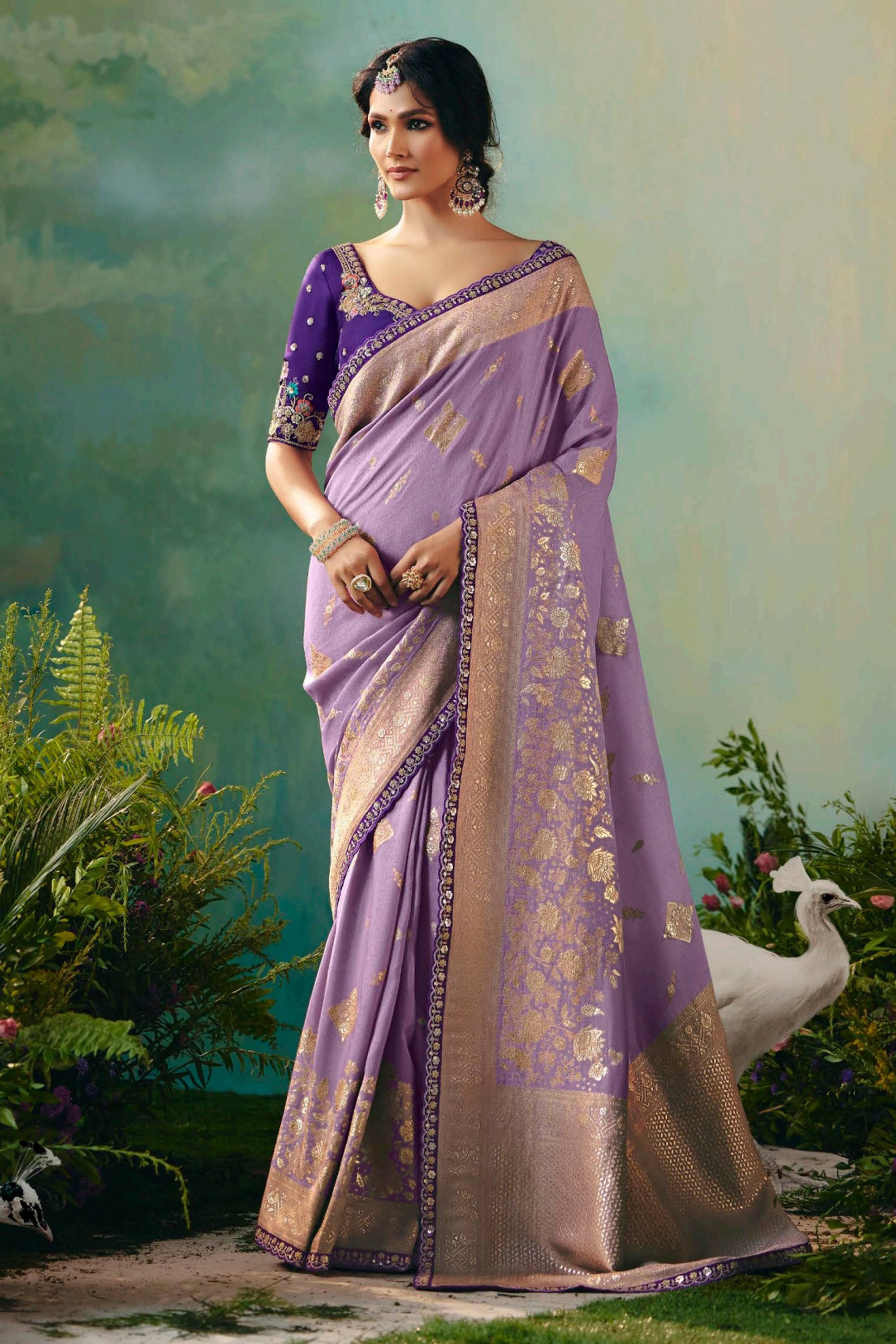 Opulent Lavender Viscose Silk Traditional Zari Border Work Saree