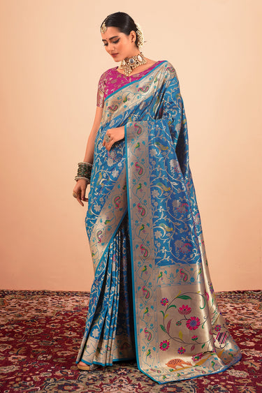 Function Wear Paithani Silk Weaving Saree In Teal Color