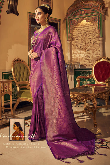 Function Wear Soft Handloom Weaving Silk Saree In Purple Color