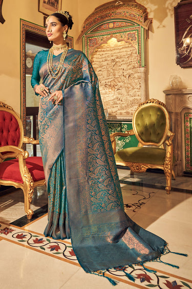 Radiance Teal Function Wear Soft Handloom Weaving Silk Saree