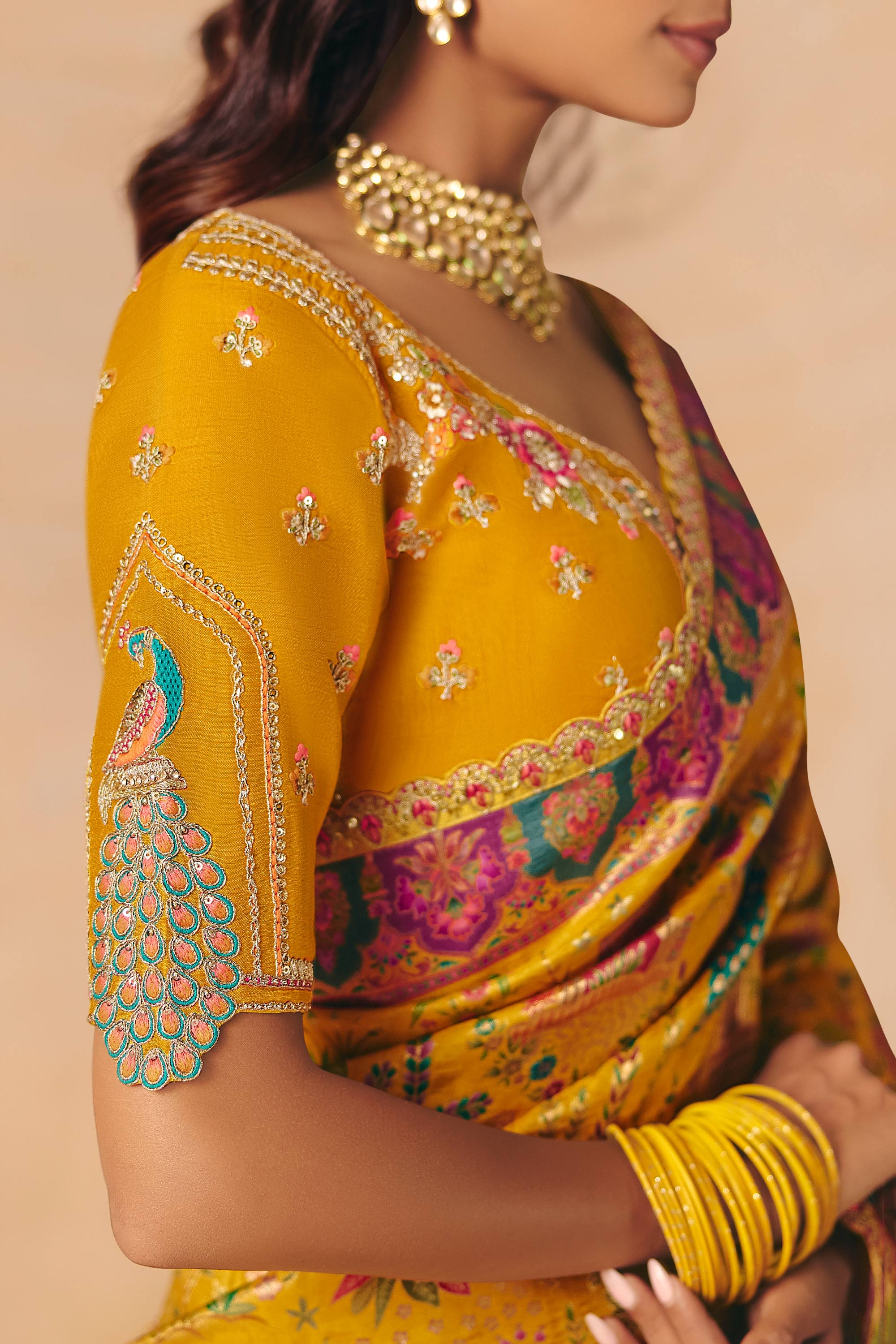 Silk Fabric Weaving Work Mustard Sangeet Wear Saree