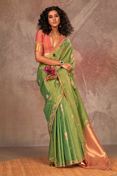 Sophisticated Green Two Tone Handloom Weaving Silk Function Wear Saree