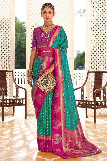 Stunning Sea Green Banarasi Art Silk Festive Saree With Contrast Blouse