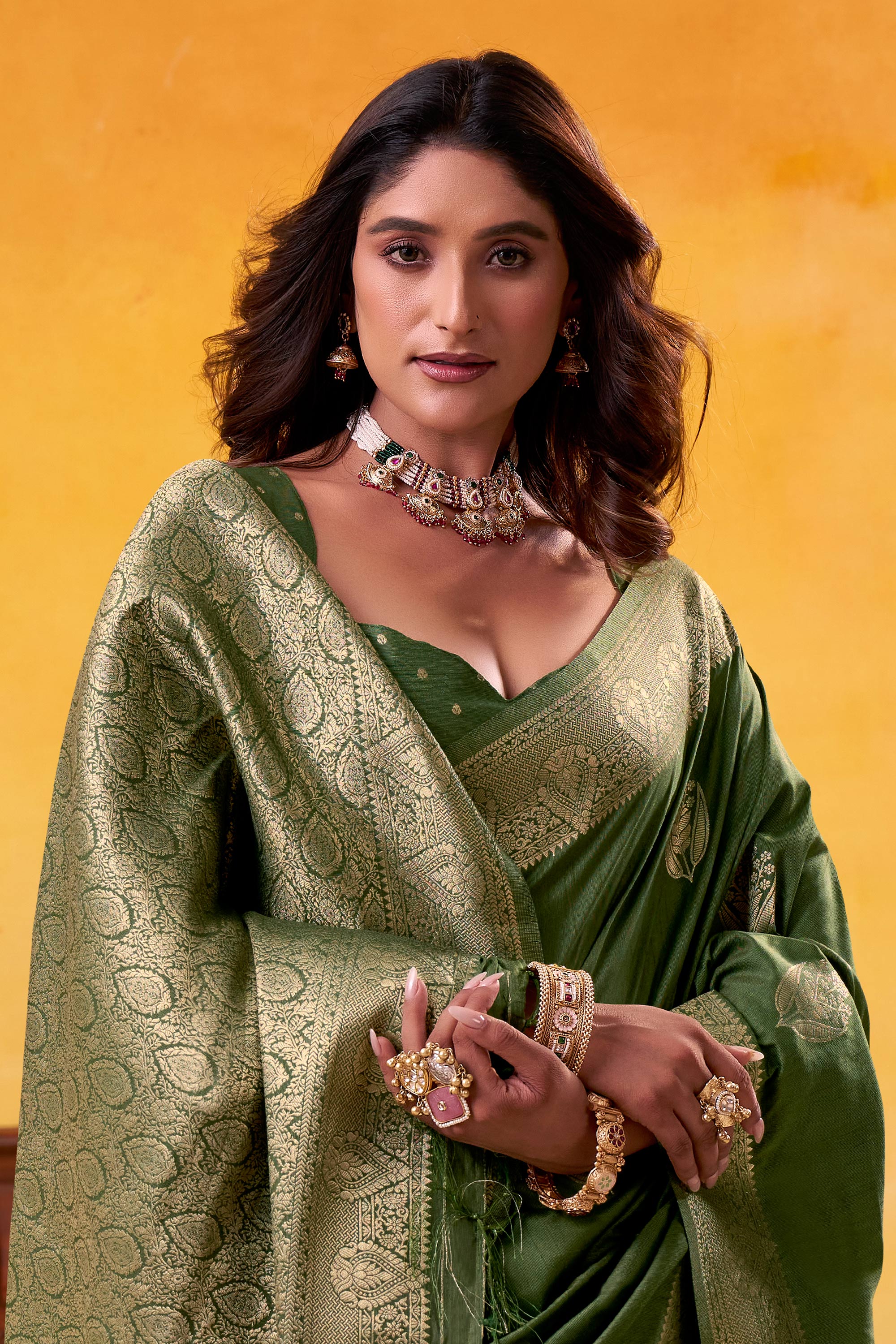 Weaving Work Art Silk Green Function Wear Saree