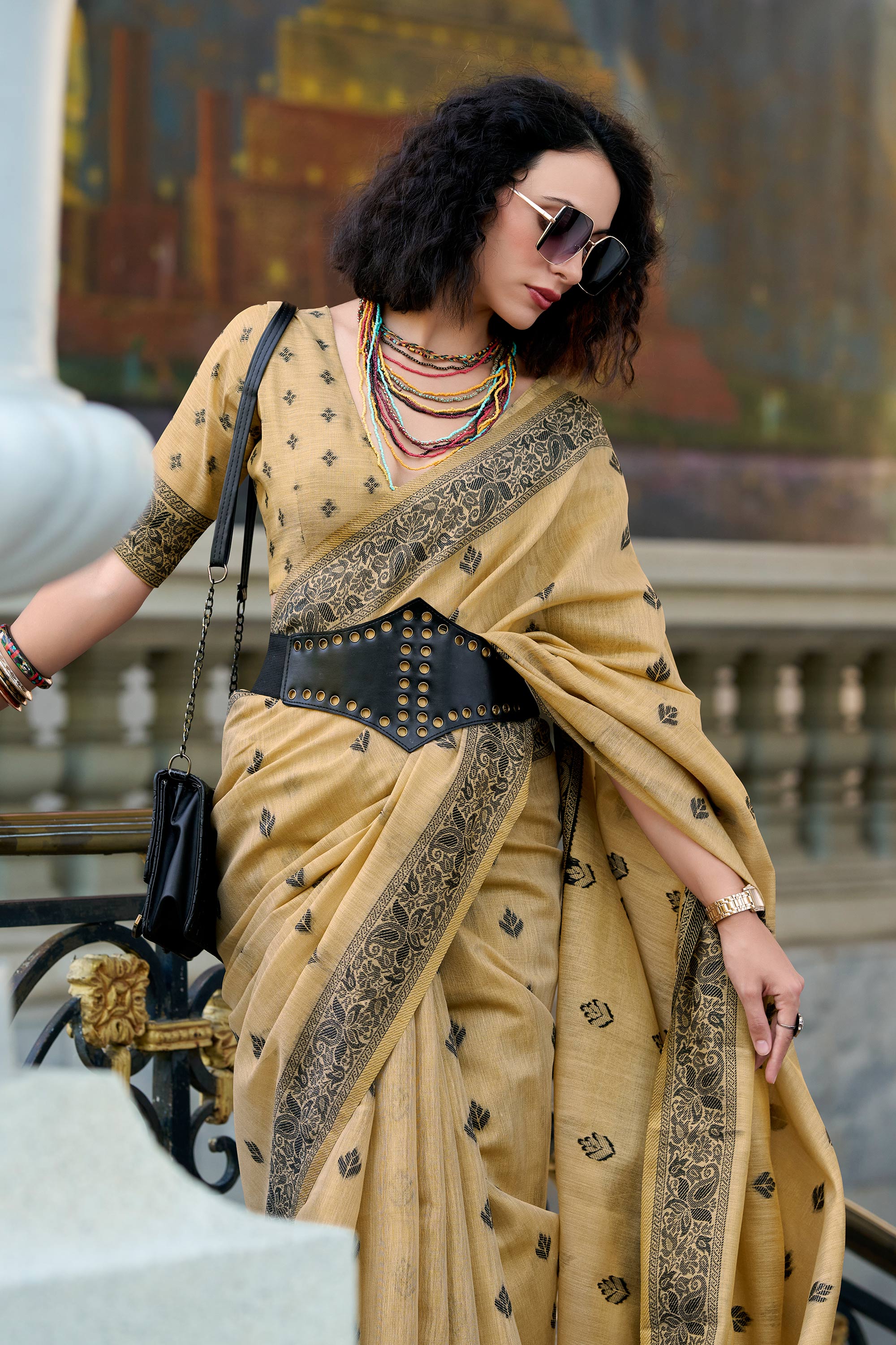 Weaving Work Tissue Fabric Beige Saree For Casual Wear