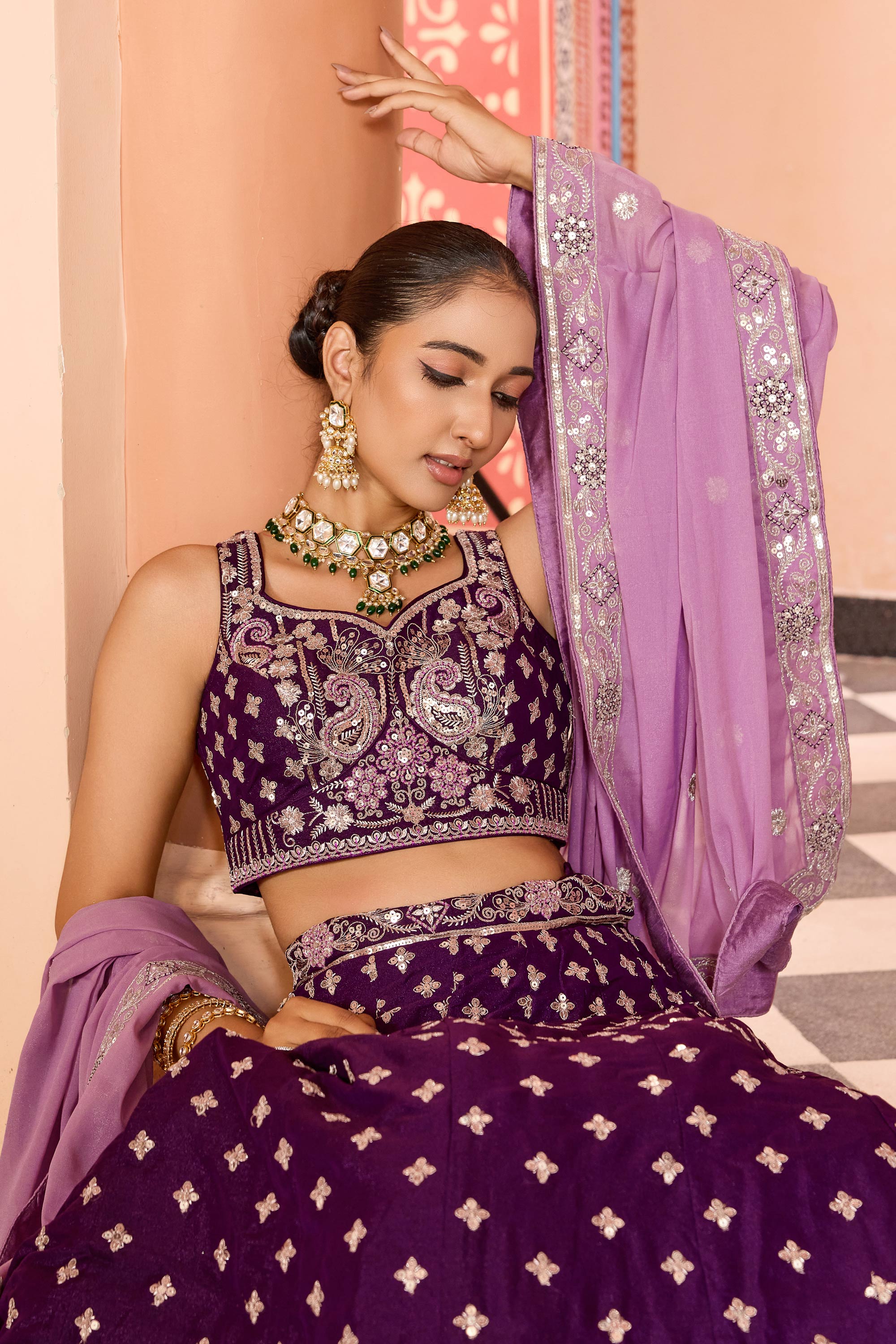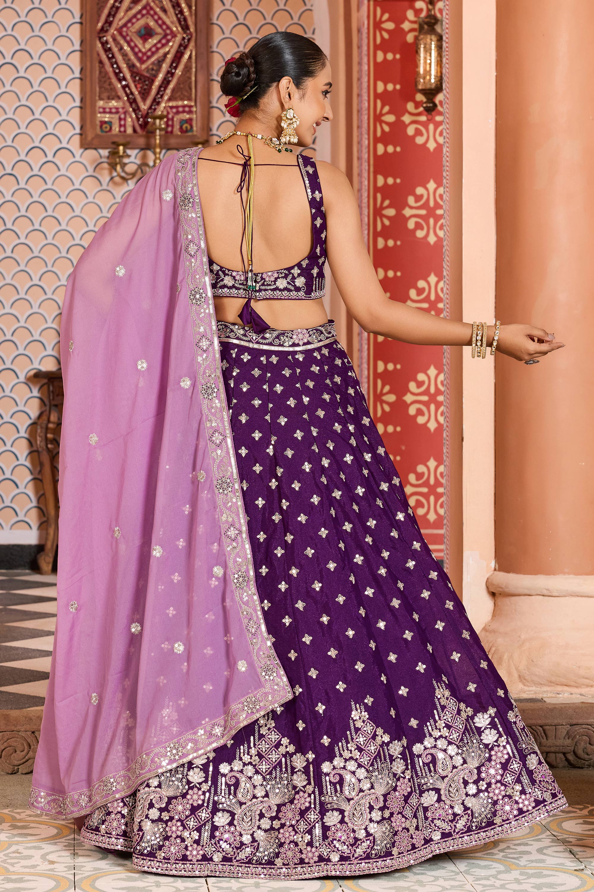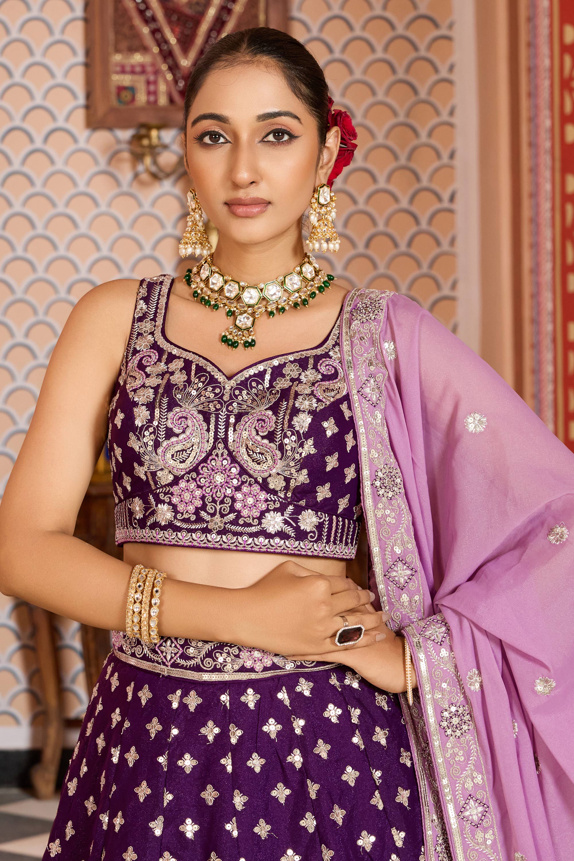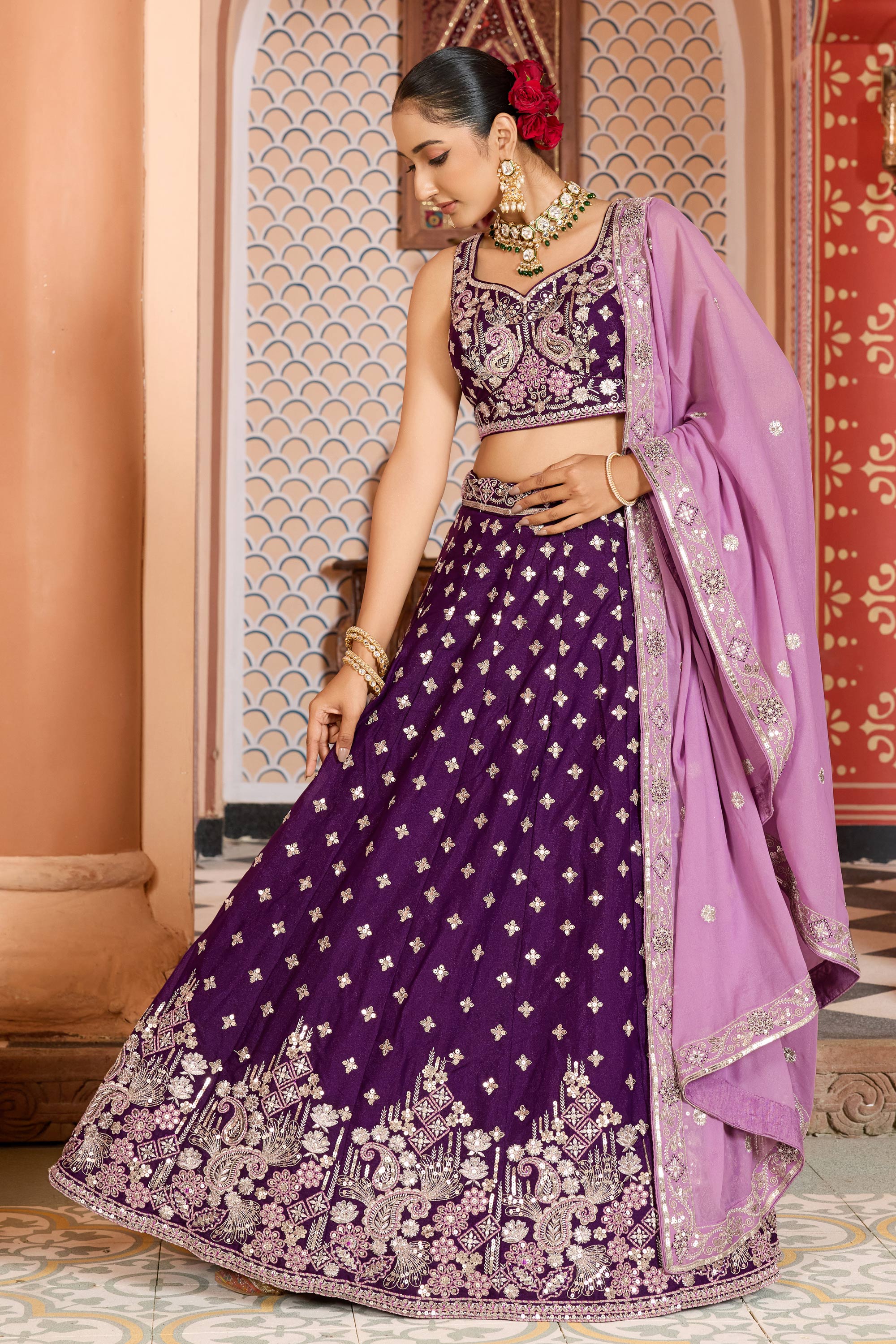 Embroidered Tissue Silk Purple Wedding Wear Lehenga Choli With Dupatta