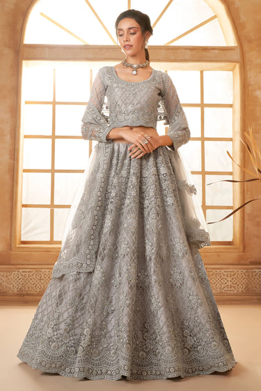 Step into elegance with our designer Lehenga Choli in exquisite hues. Made from soft net fabric, both the lehenga and blouse provide comfort without compromising on style. Paired with a soft net dupatta, the outfit is adorned with heavy designer thread embroidery and diamond work, making it perfect for wedding wear. Available for customization up to size 42. Recommended for dry cleaning to maintain its beauty. Note: Accessories shown are for presentation only and not included. The product color may slightly vary due to photography effects or display settings. Ships in 10 working days.