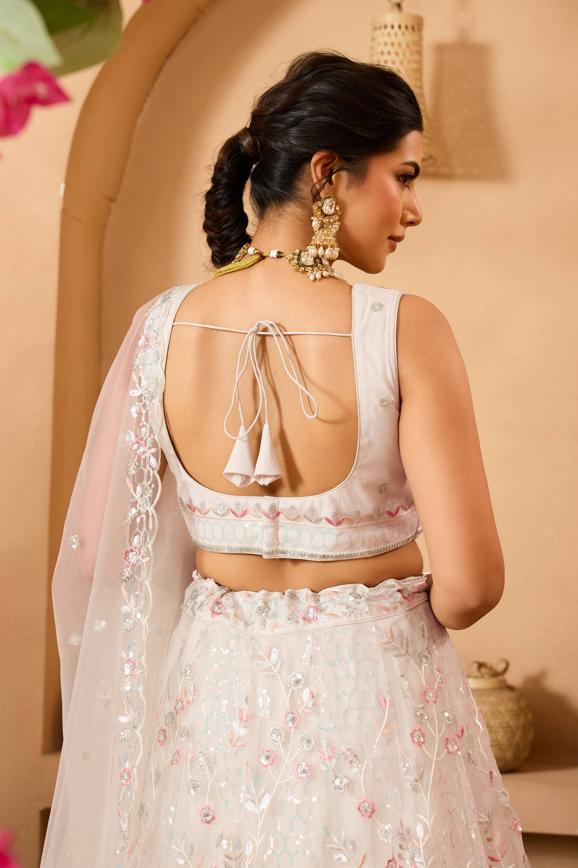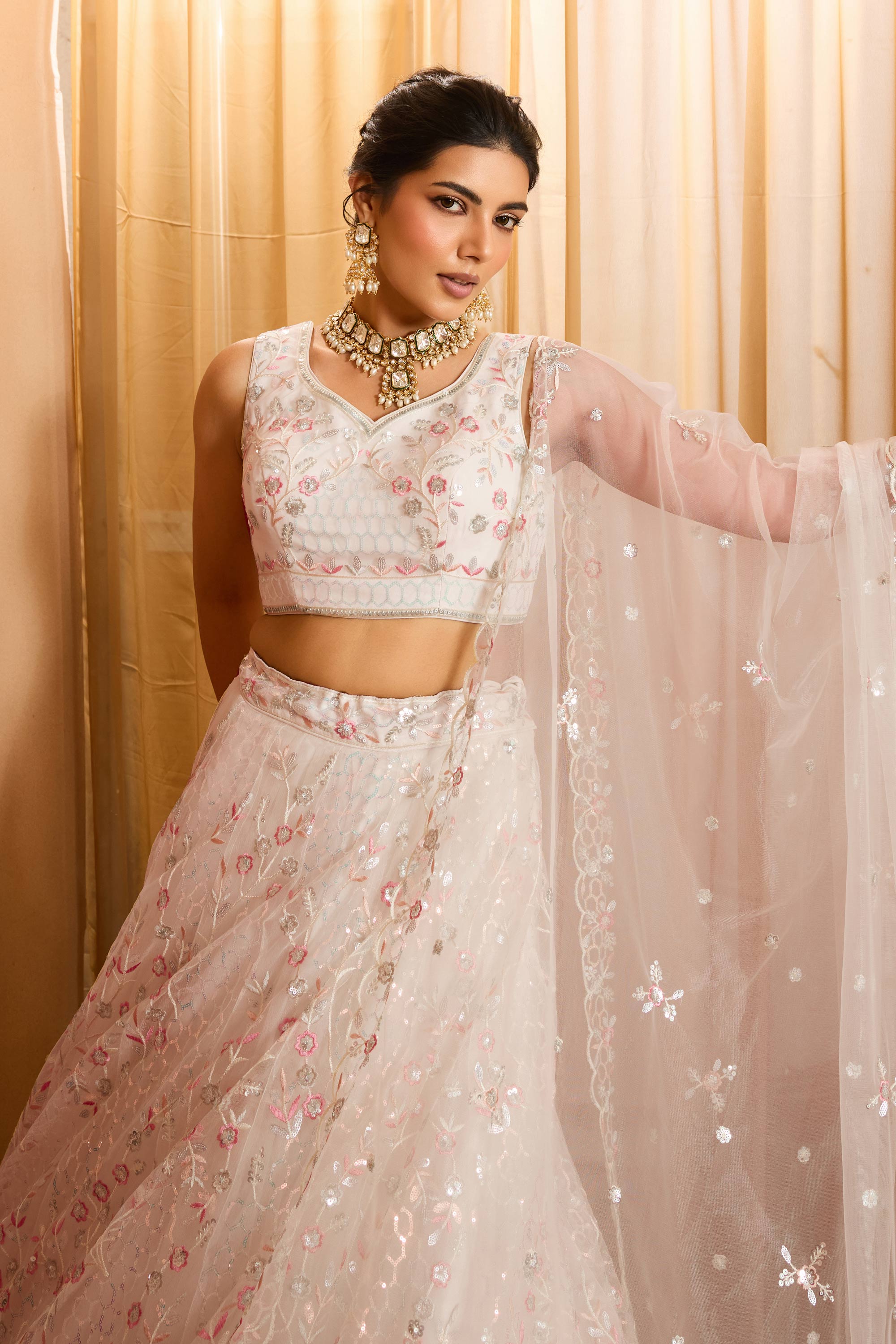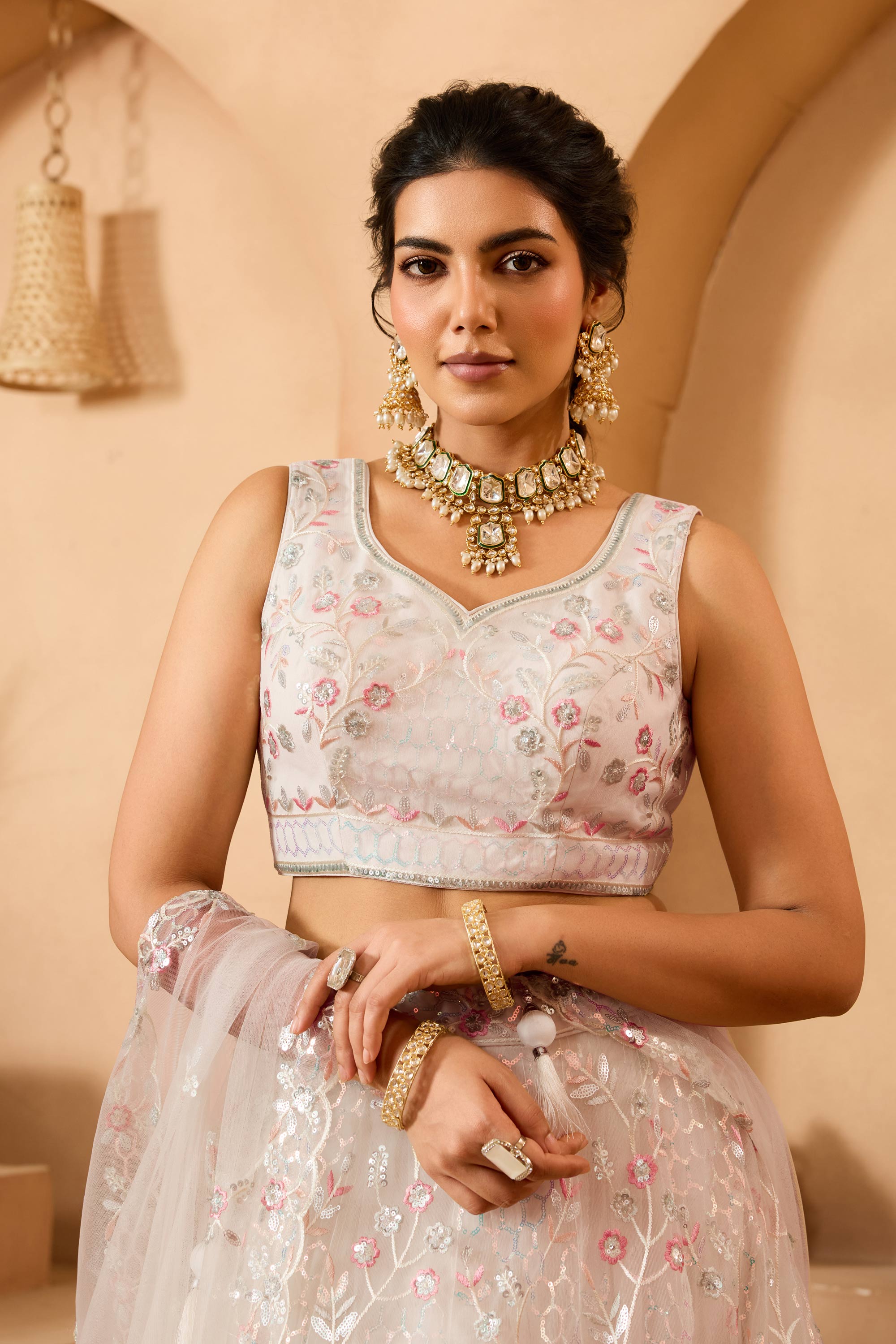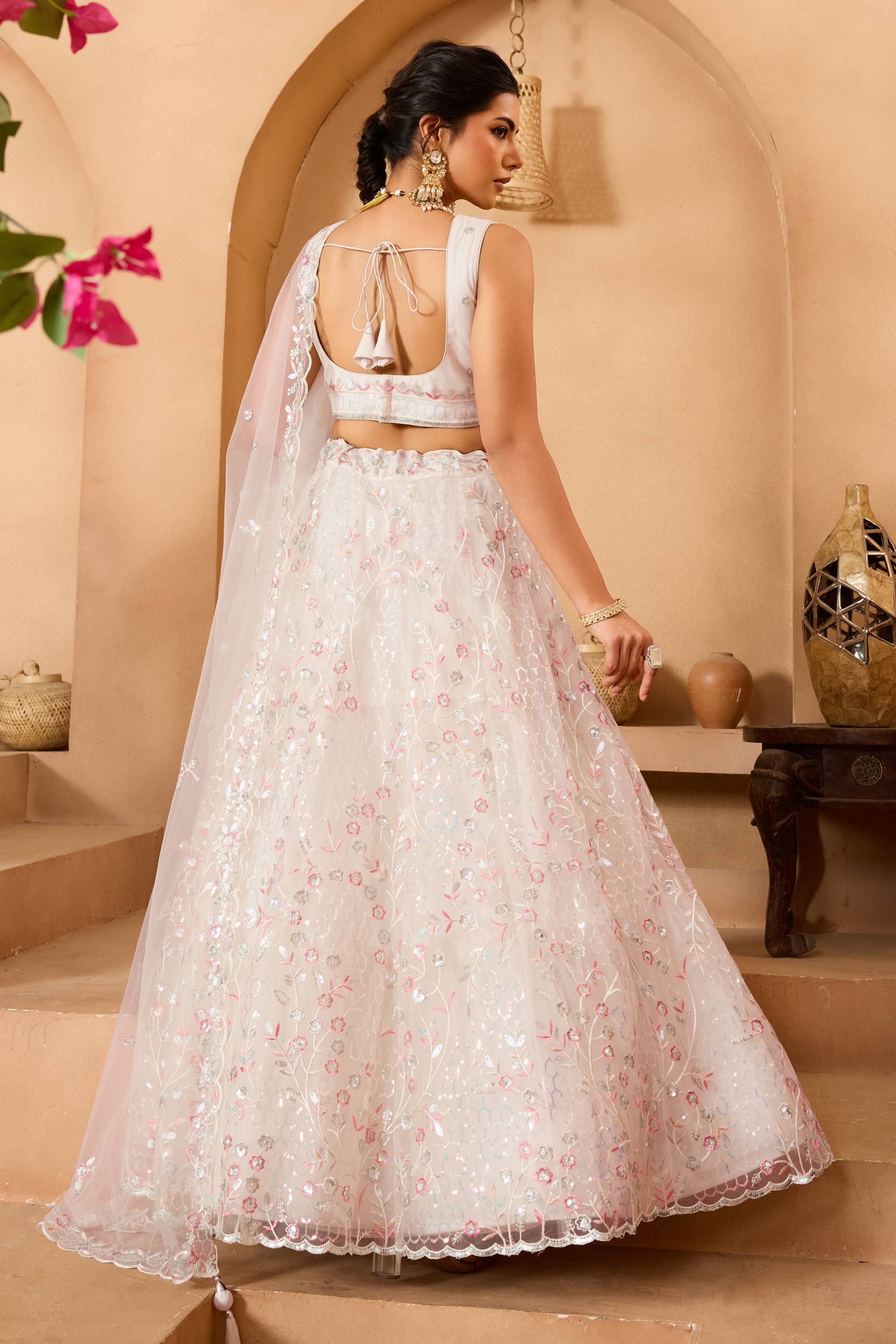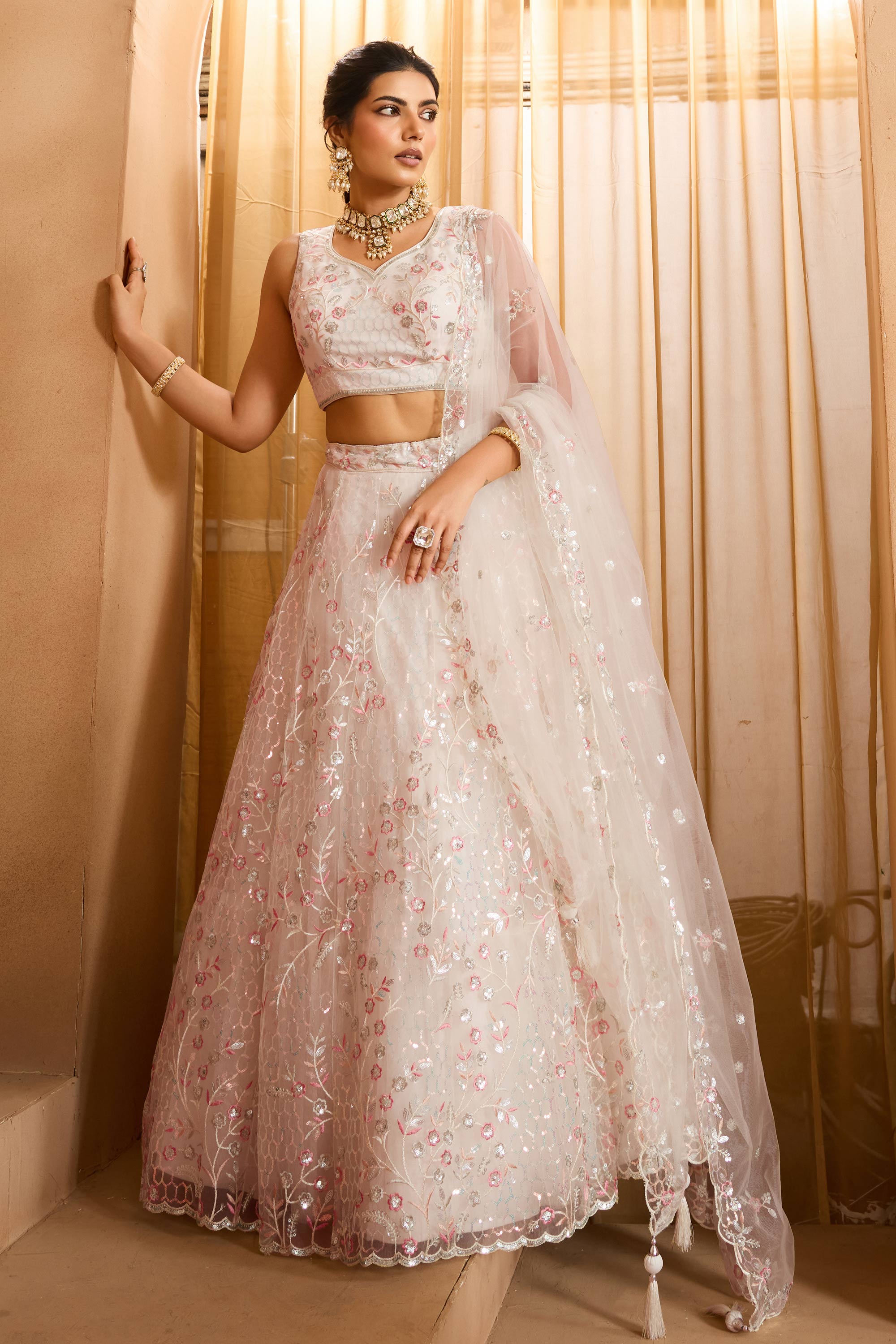 Net Fabric Embroidered Cream Wedding Wear Lehenga Choli