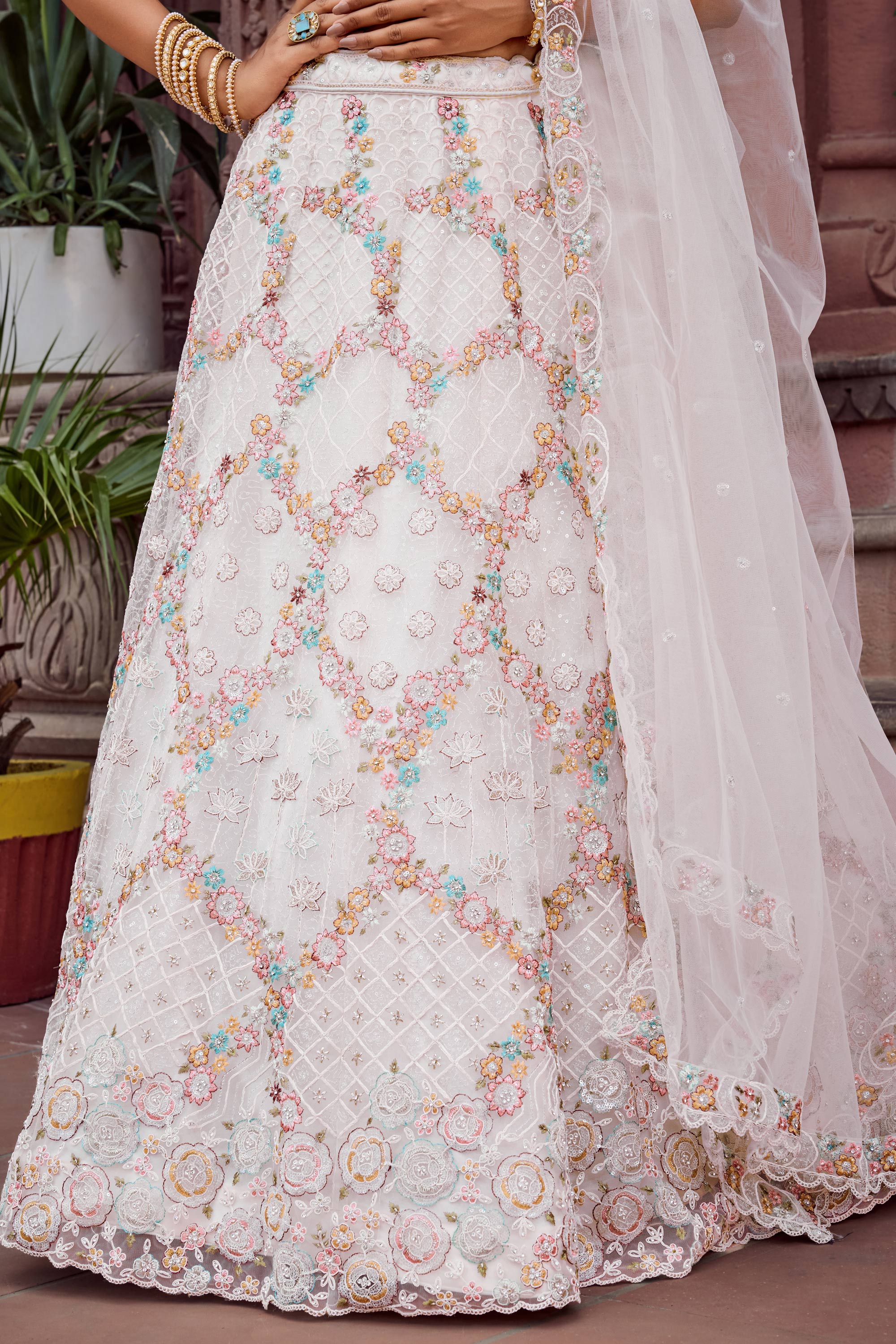 Off White Wedding Wear Embroidered Net Fabric Lehenga Choli
