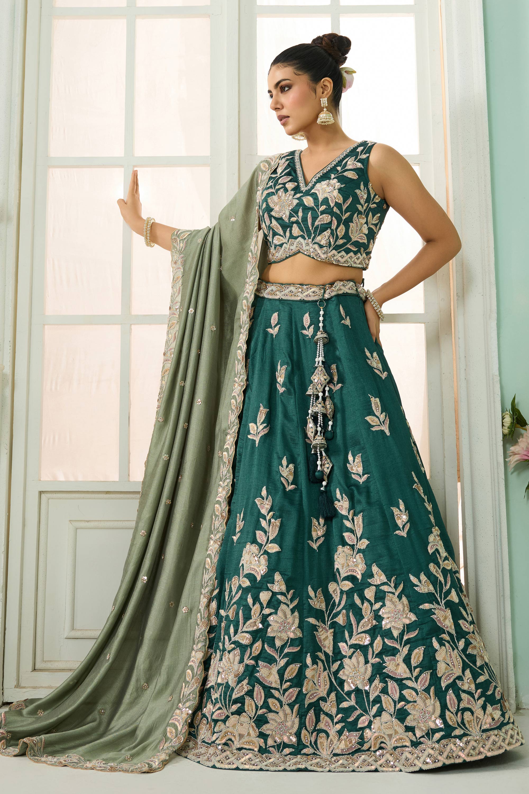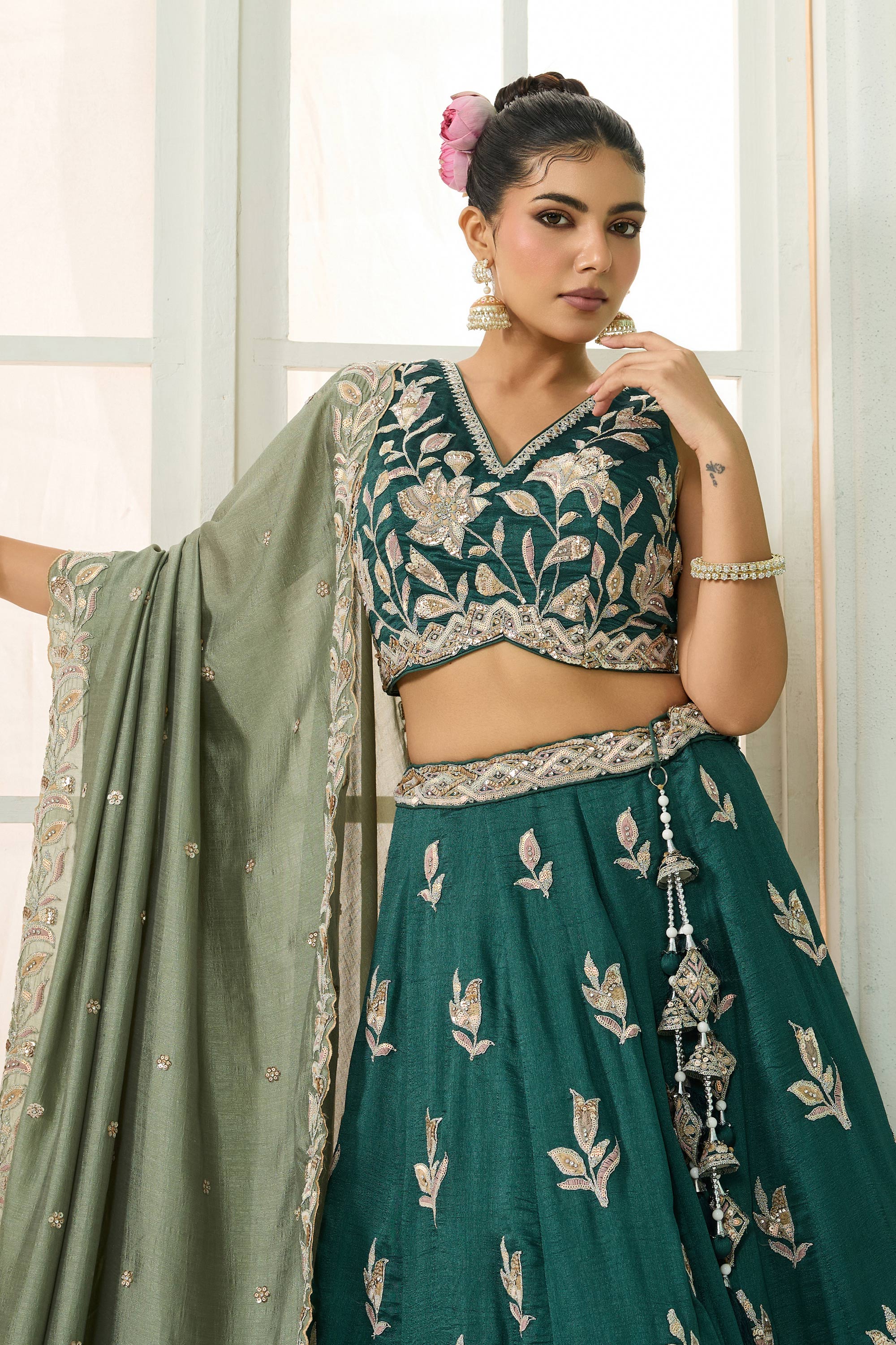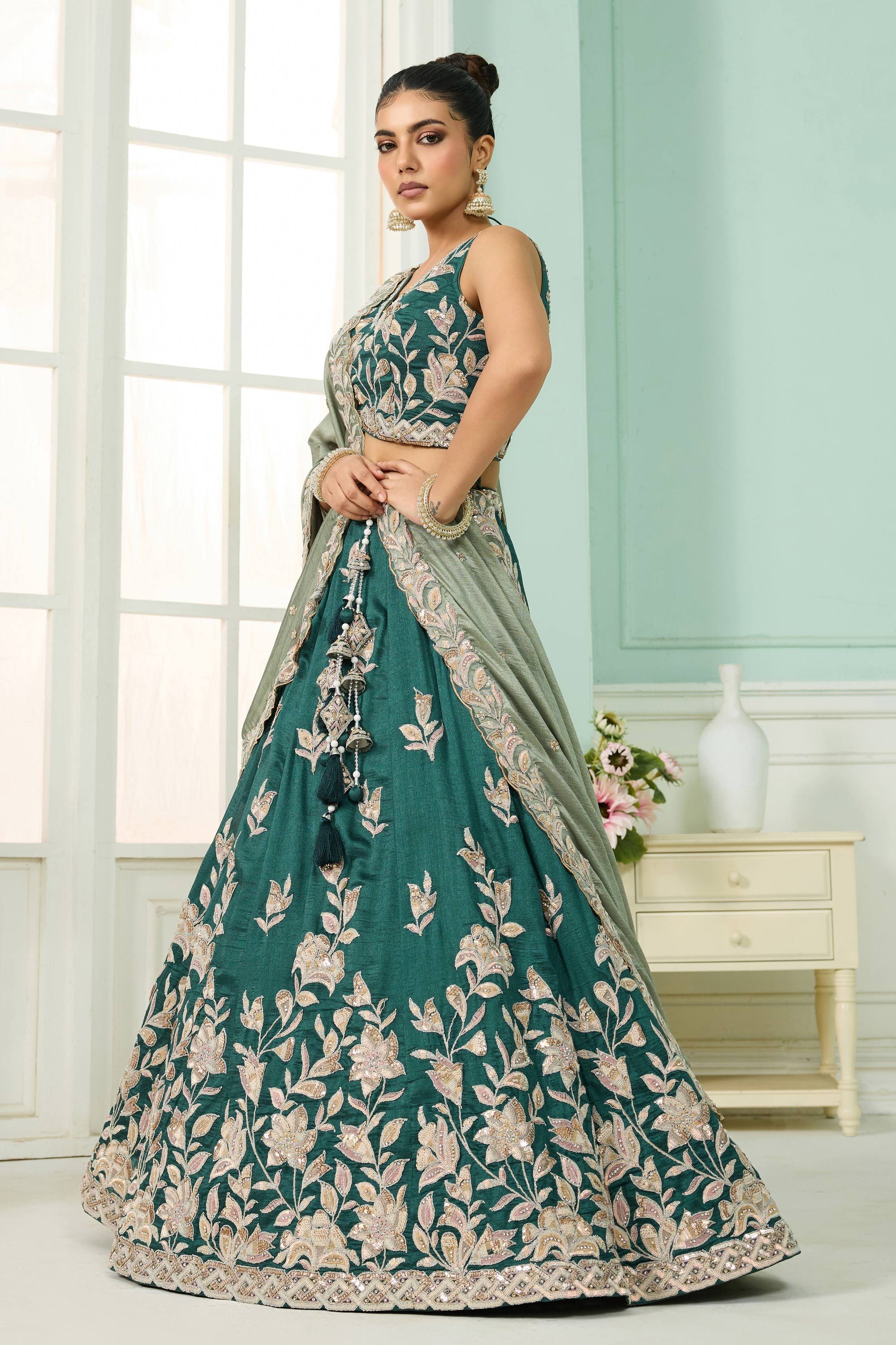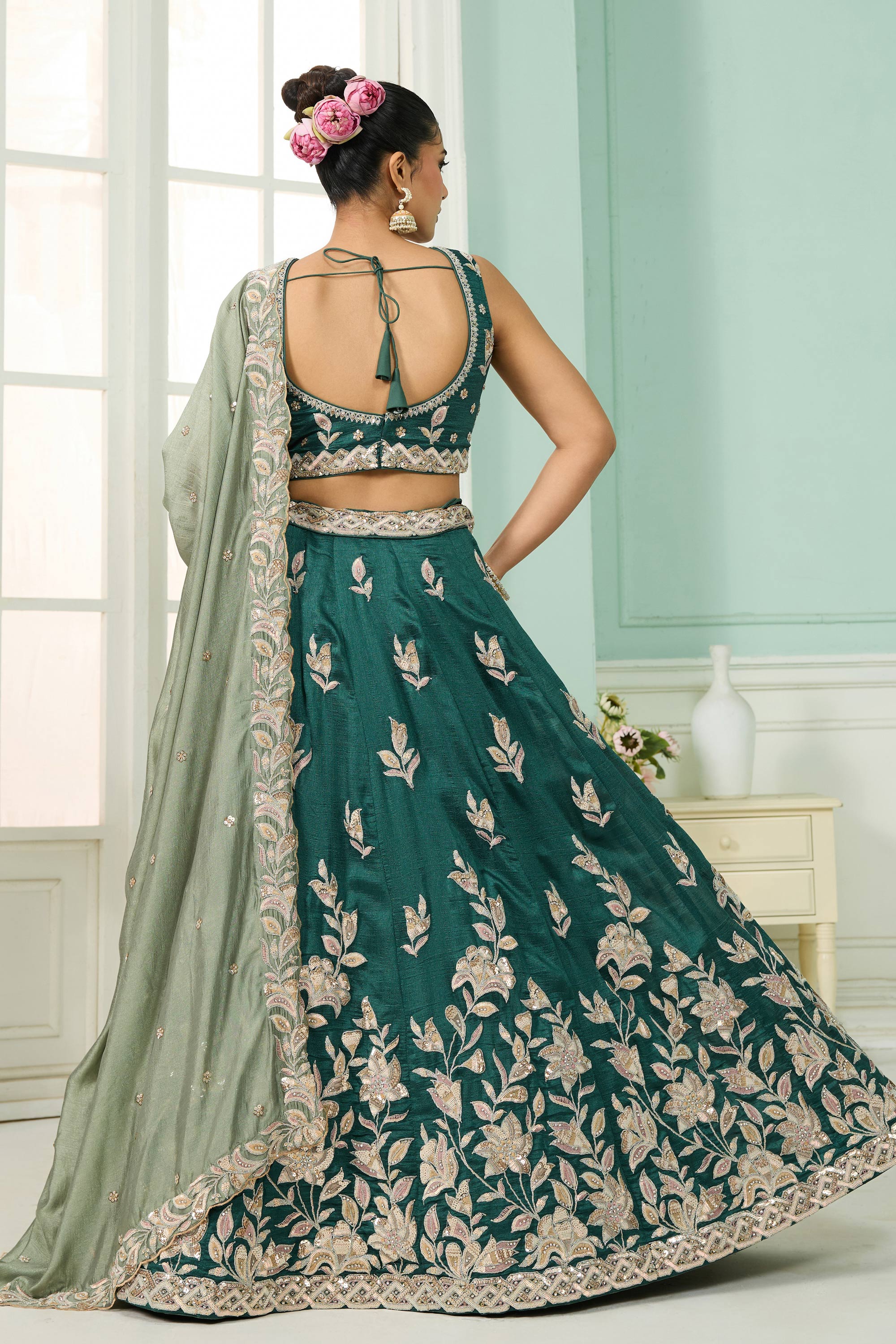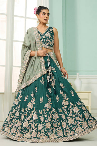 Silk Fabric Dark Green Wedding Wear Lehenga Choli With Dupatta