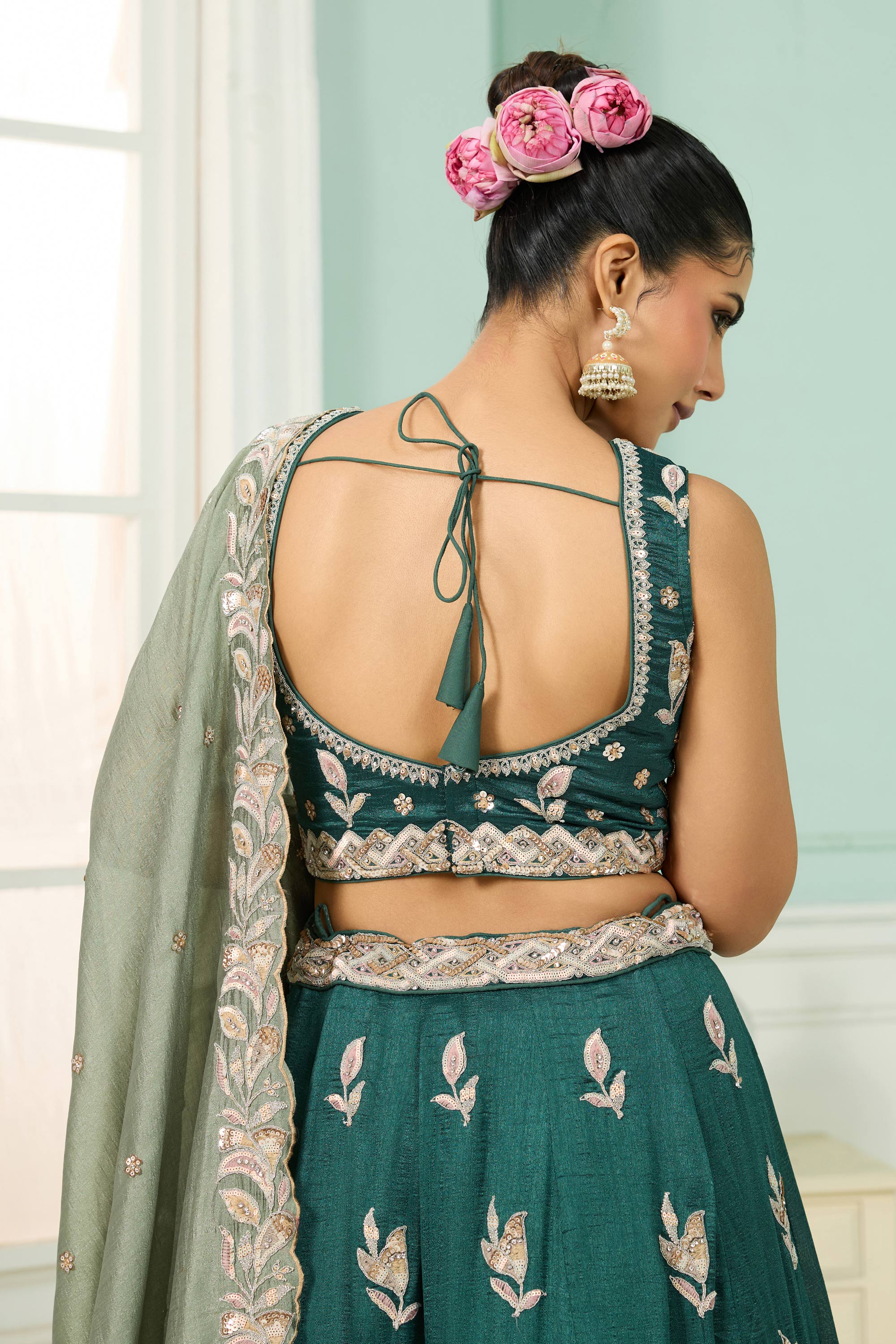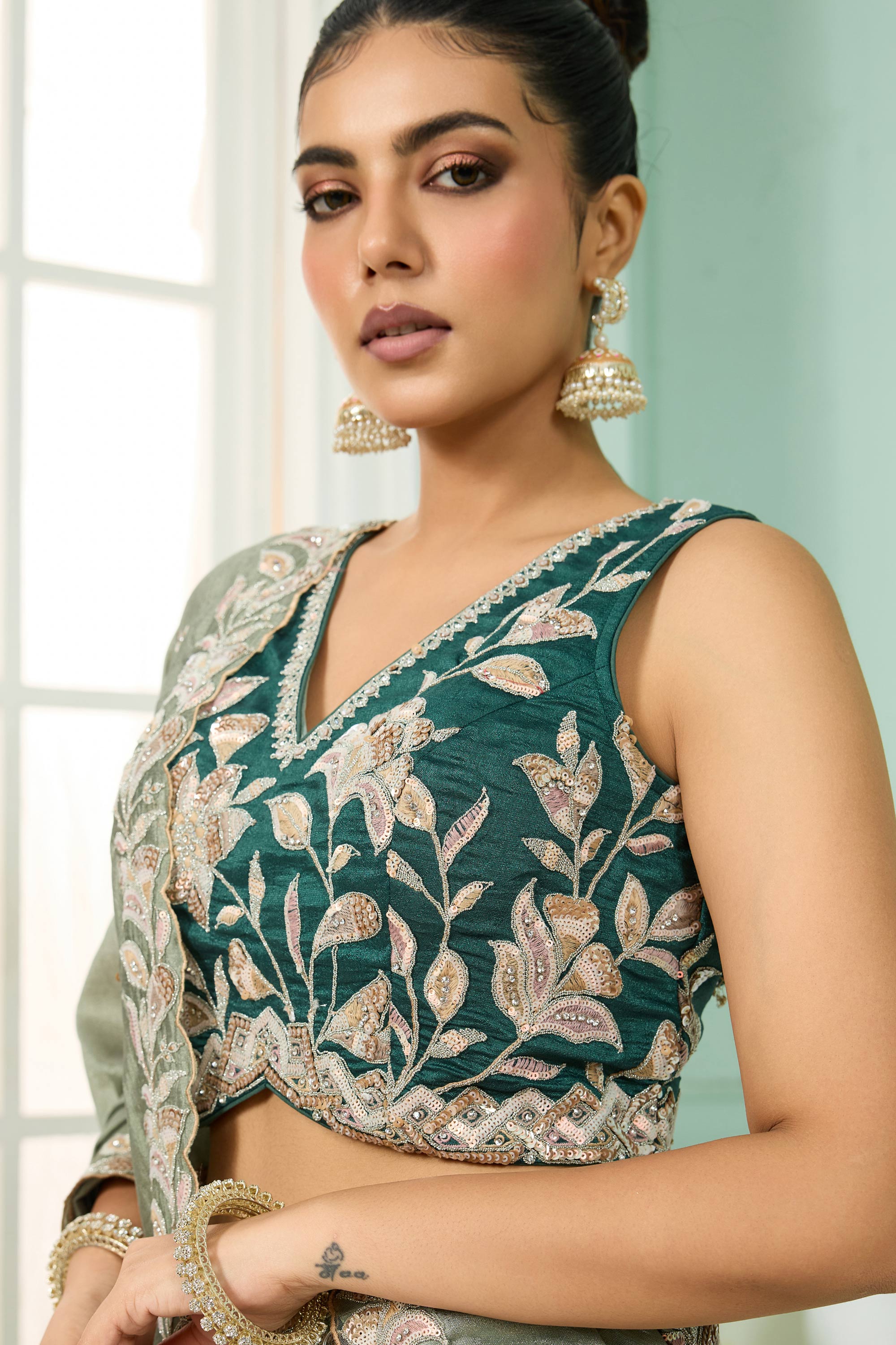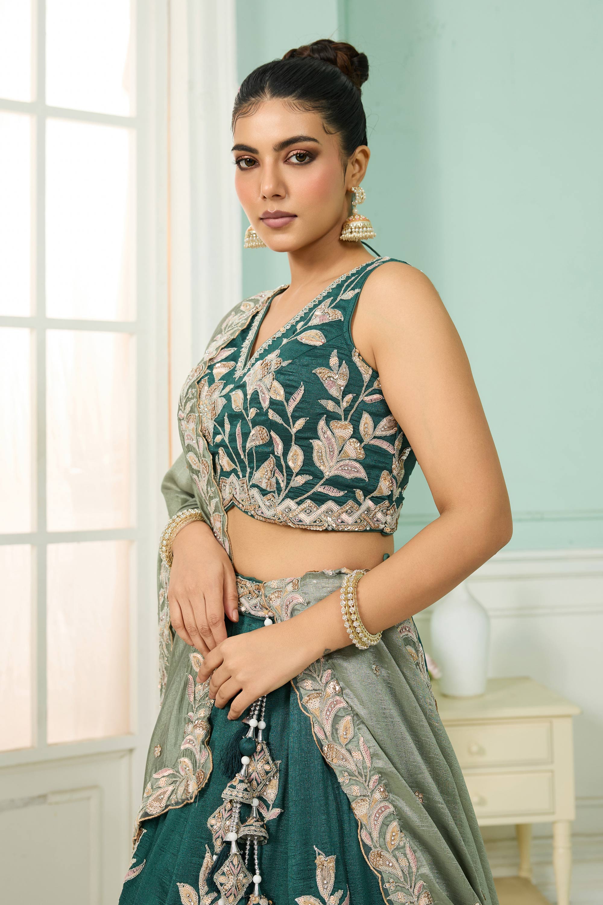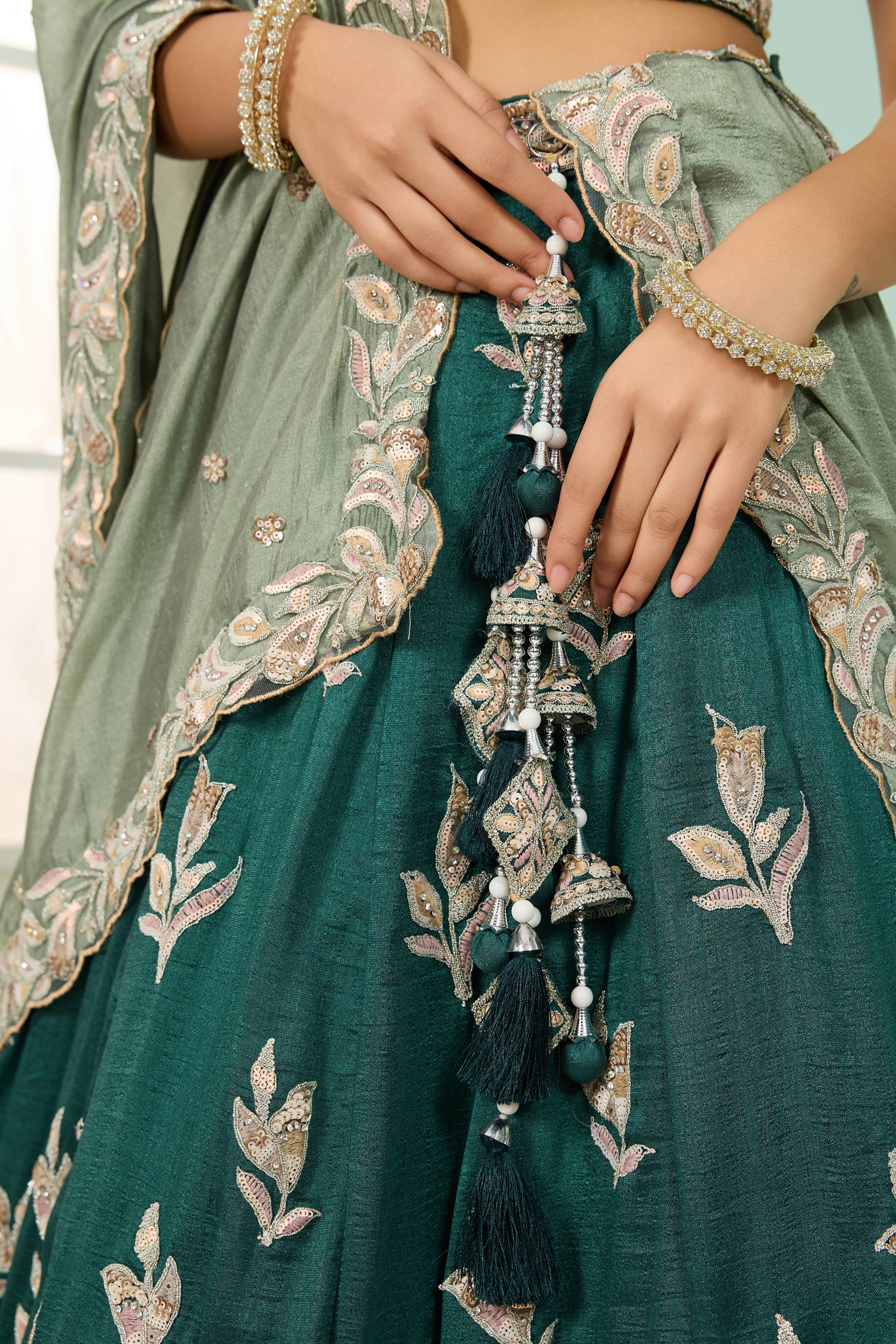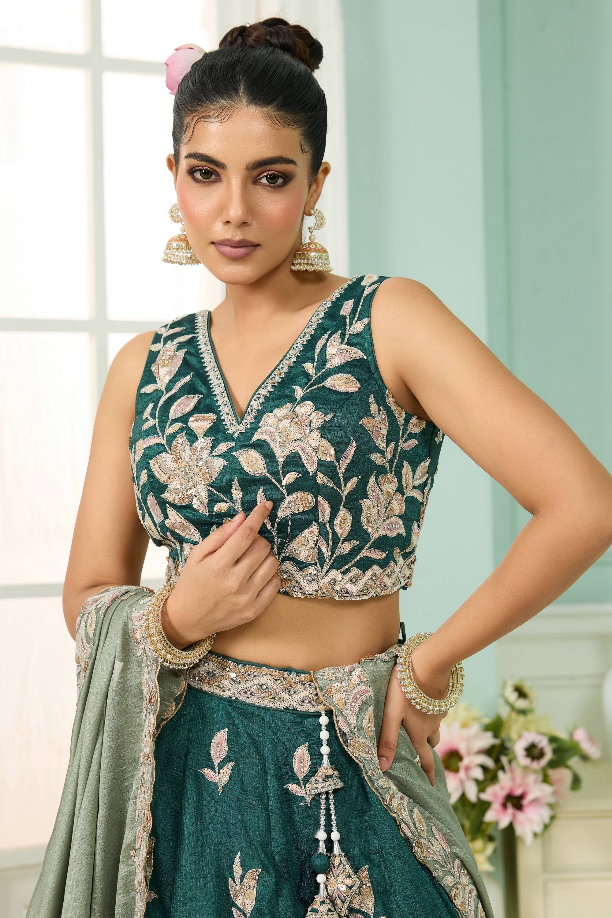 Silk Fabric Dark Green Wedding Wear Lehenga Choli With Dupatta