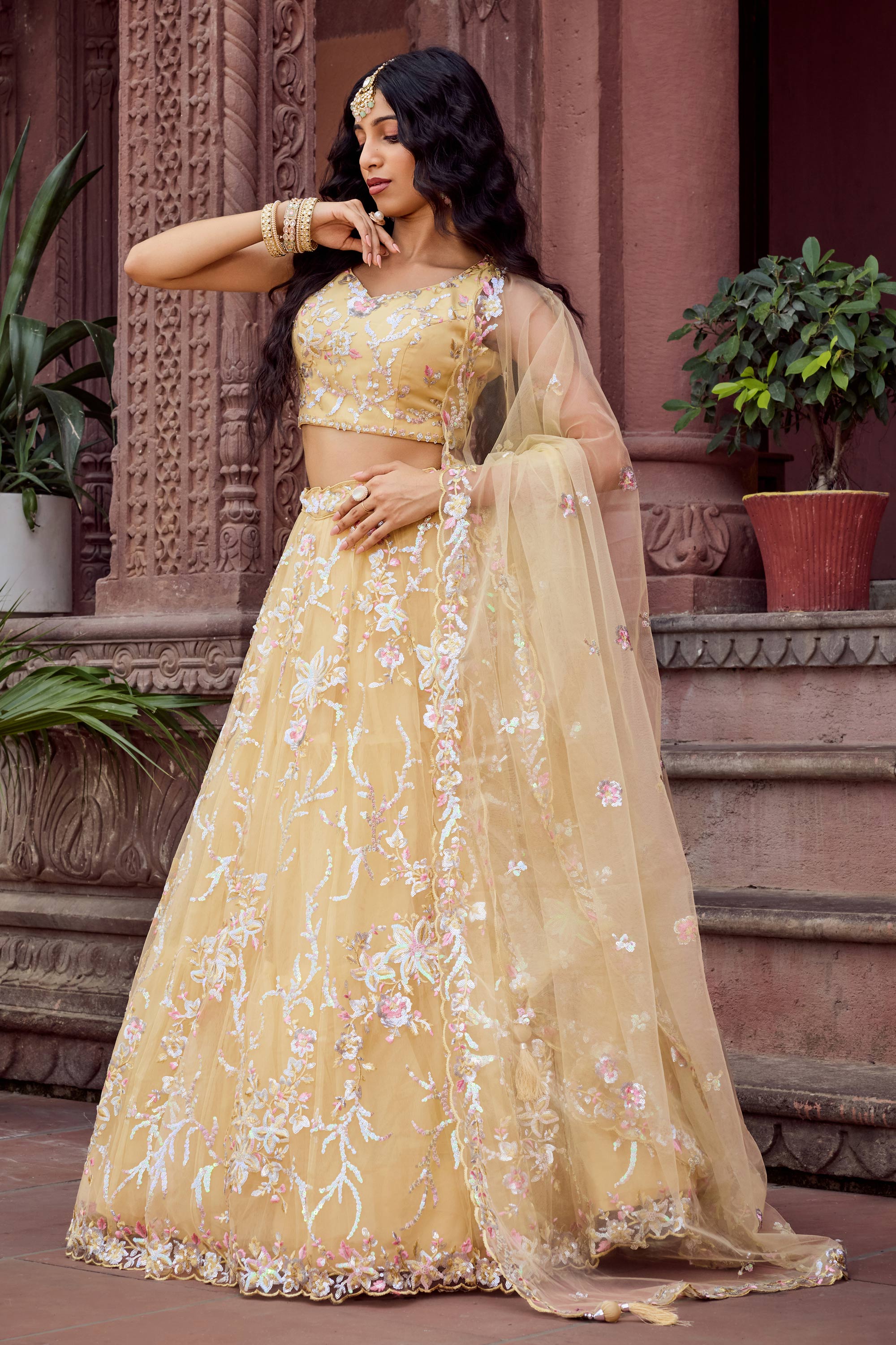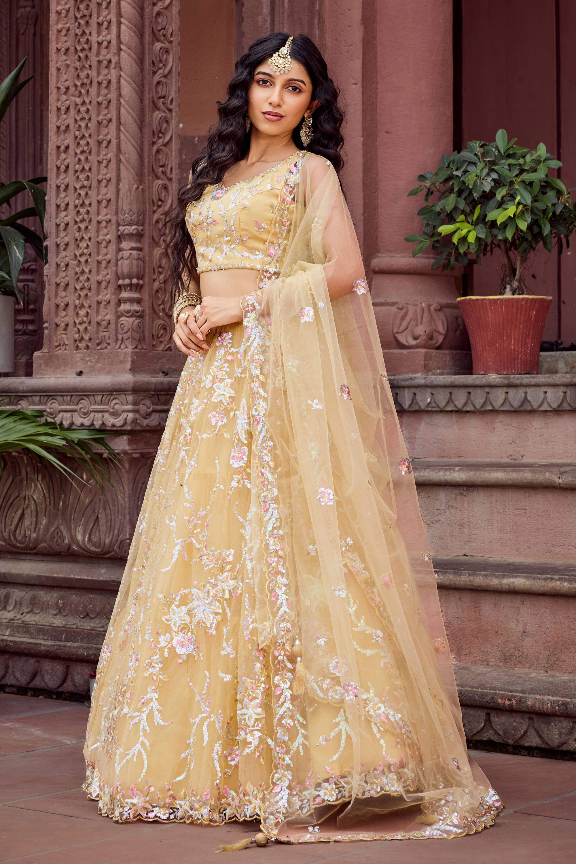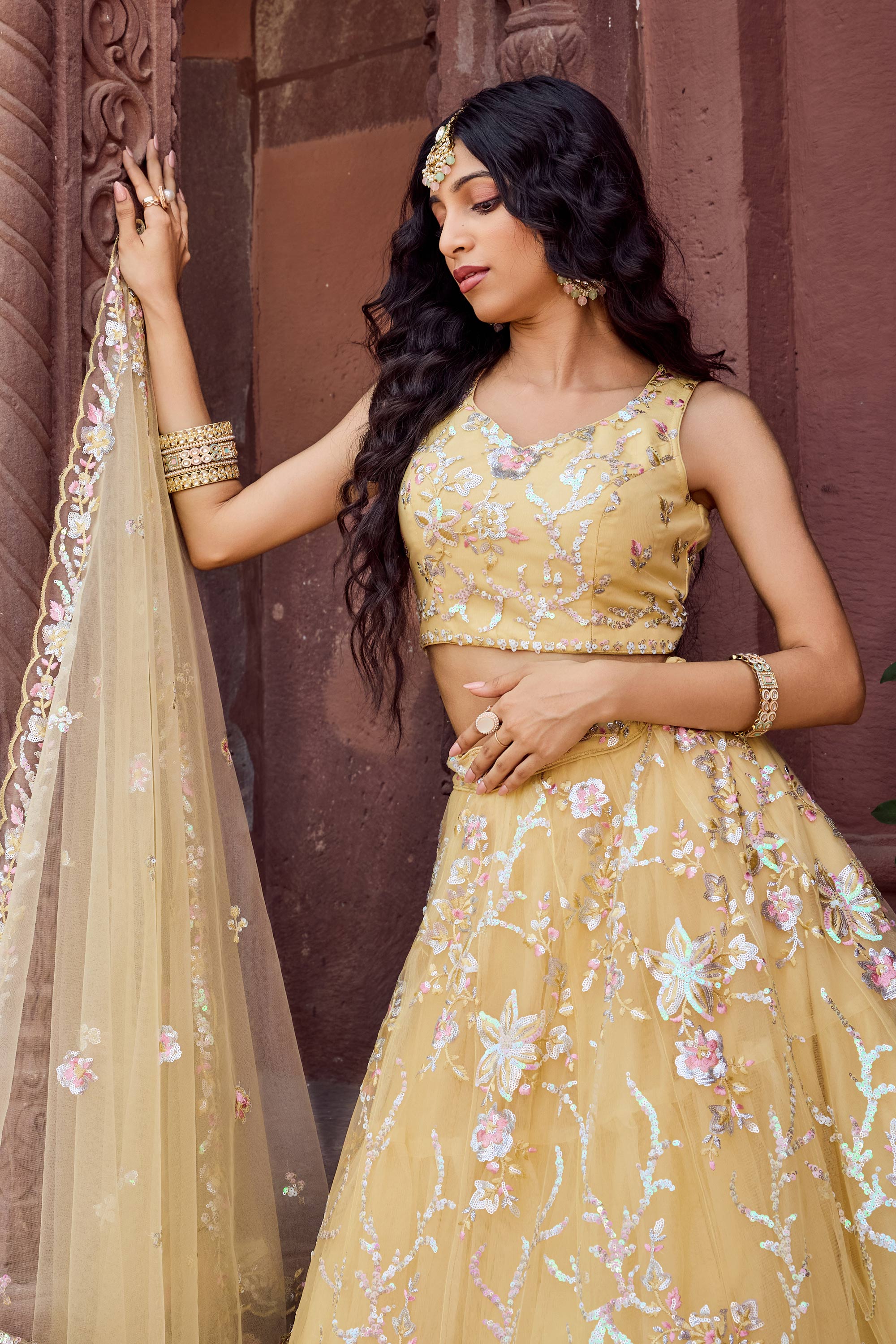 Yellow Wedding Wear Net Embroidered Lehenga Choli With Dupatta