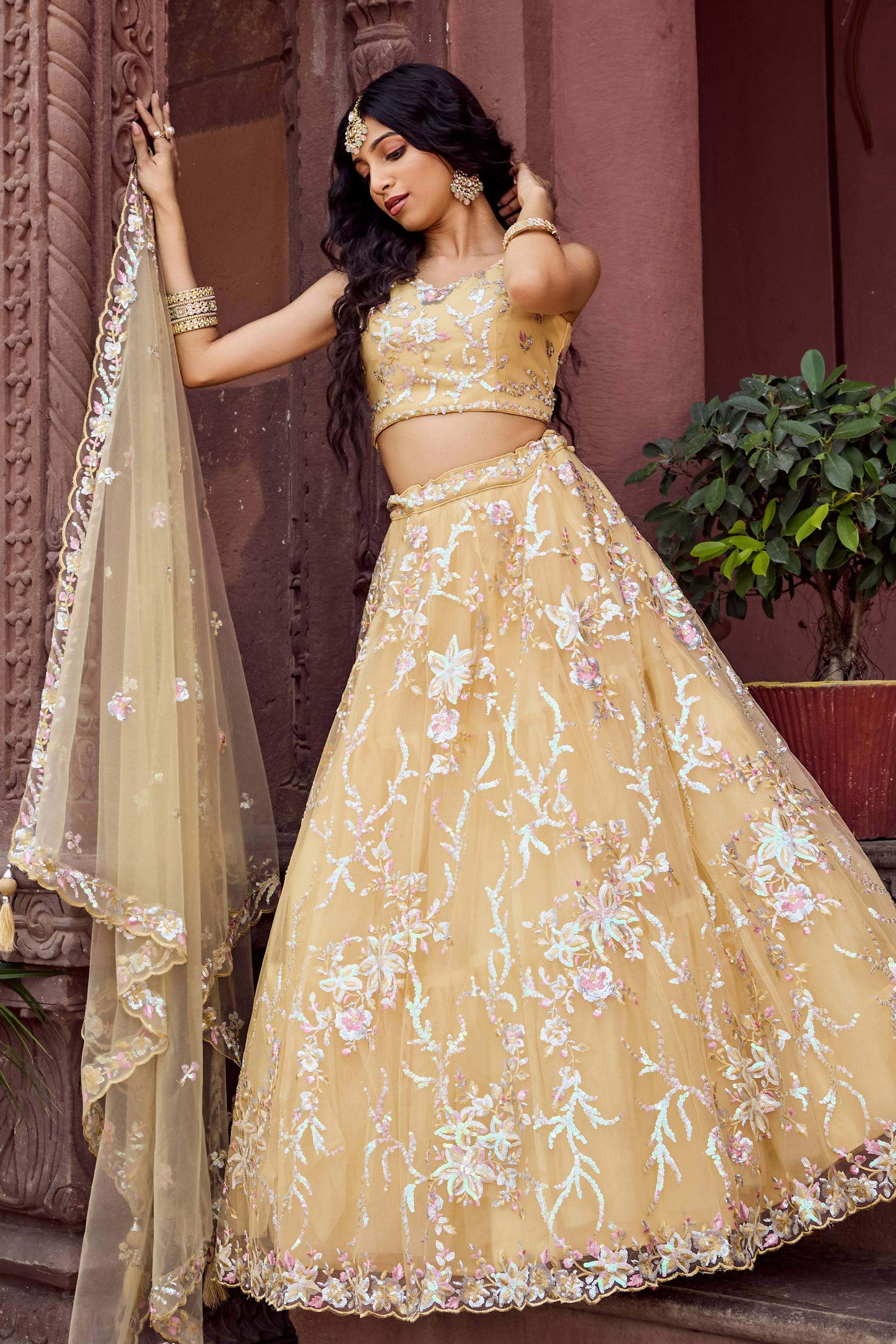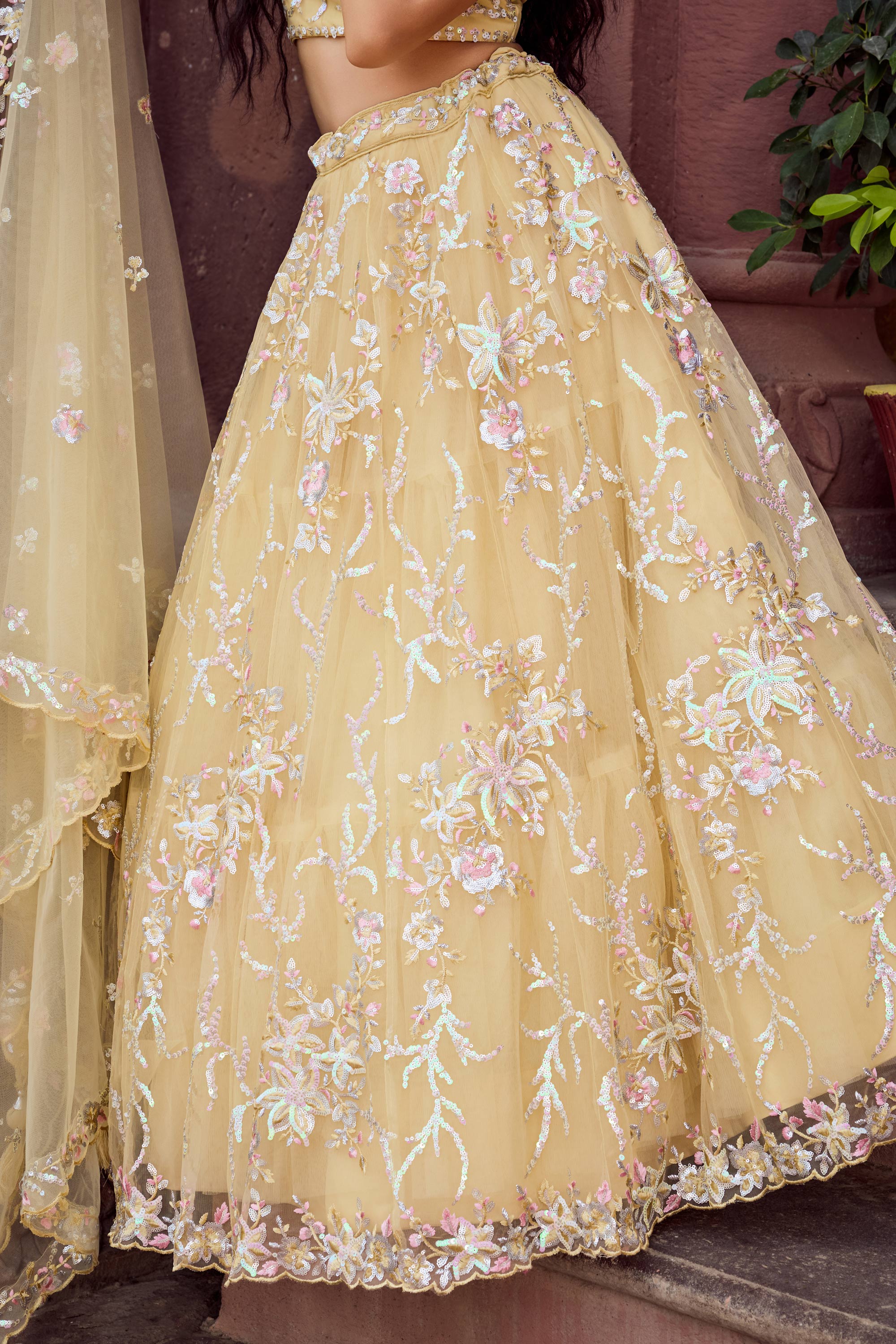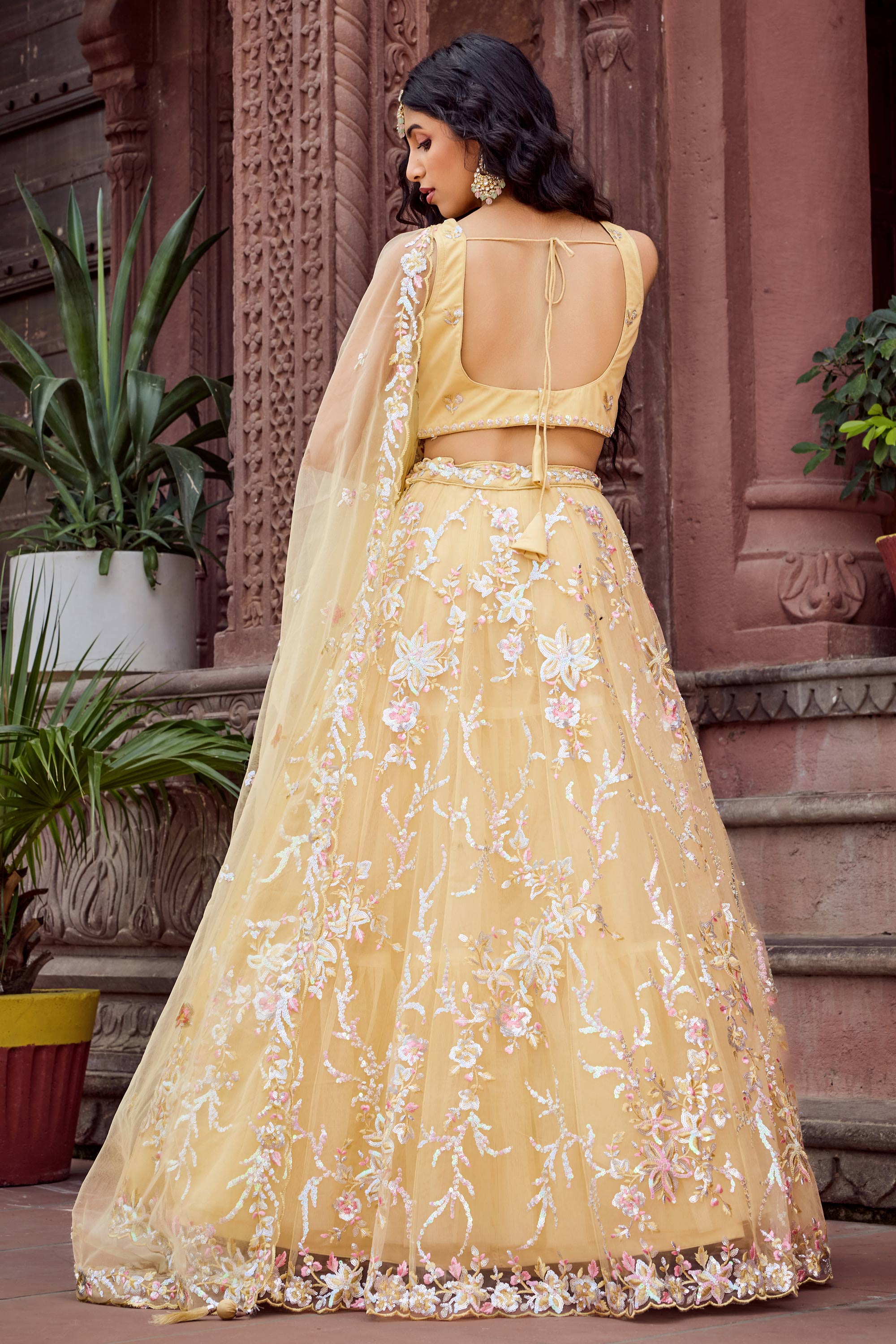 Yellow Wedding Wear Net Embroidered Lehenga Choli With Dupatta