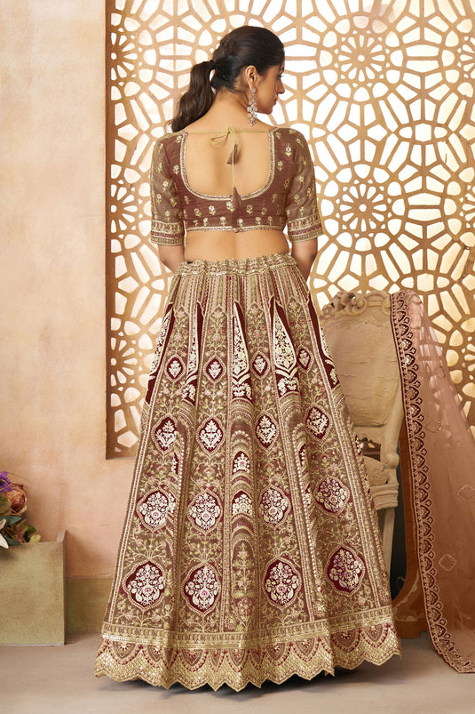 €121,95 EUR€243,95 EUR Original Price Save 50%/ Heavy Embroidered Net Maroon Bridal Lehenga CholiSave 50%