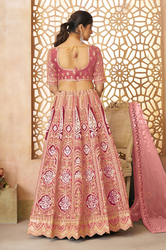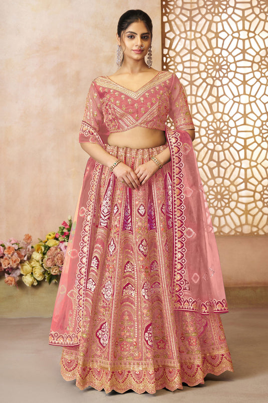 €95,95 EUR€191,95 EUR Original Price Save 50%/ Embroidered Net Pink Wedding Wear Lehenga Choli With DupattaSave 50%