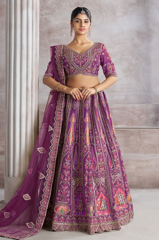 €93,95 EUR€186,95 EUR Original Price Save 50%/ Purple Wedding Wear Embroidered Net Lehenga CholiSave 50%