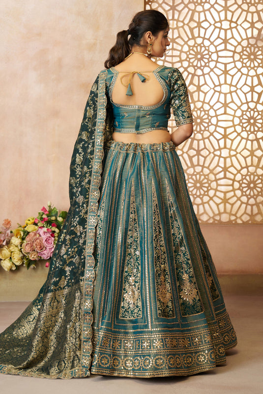 €95,95 EUR€191,95 EUR Original Price Save 50%/ Teal Wedding Wear Embroidered Net Lehenga Choli With DupattaSave 50%