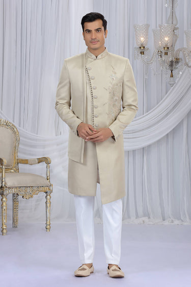 Art Silk Beige Readymade Indo Western For Men