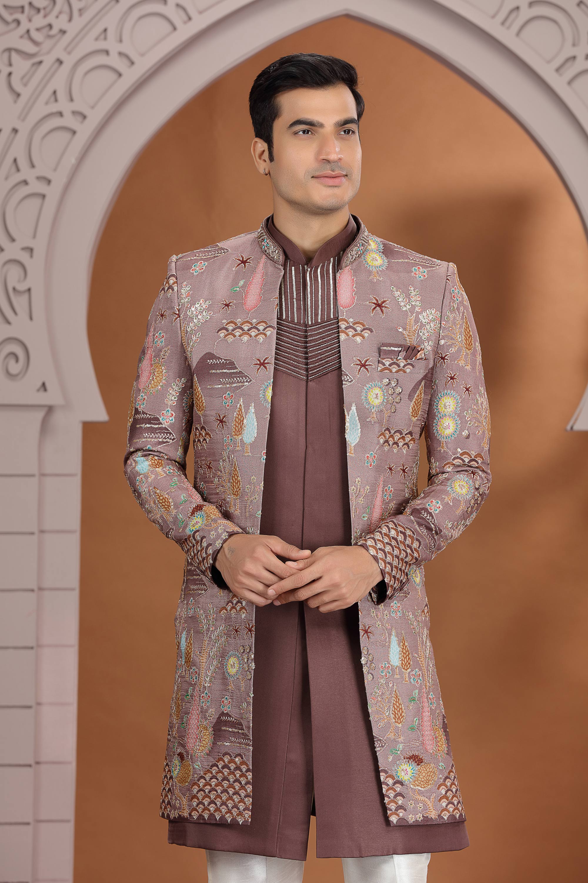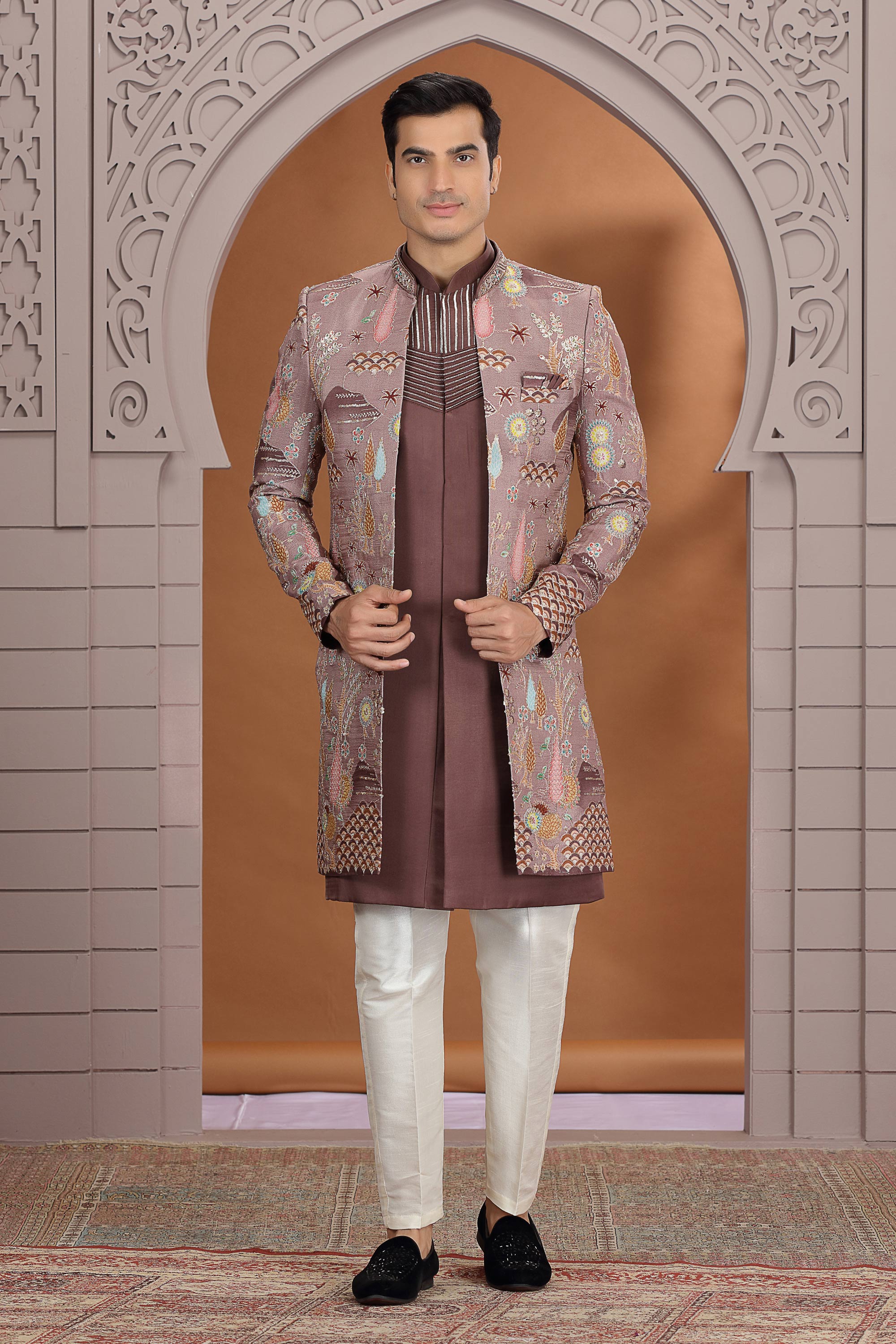 brown-art-silk-readymade-3-piece-indo-western-for-men