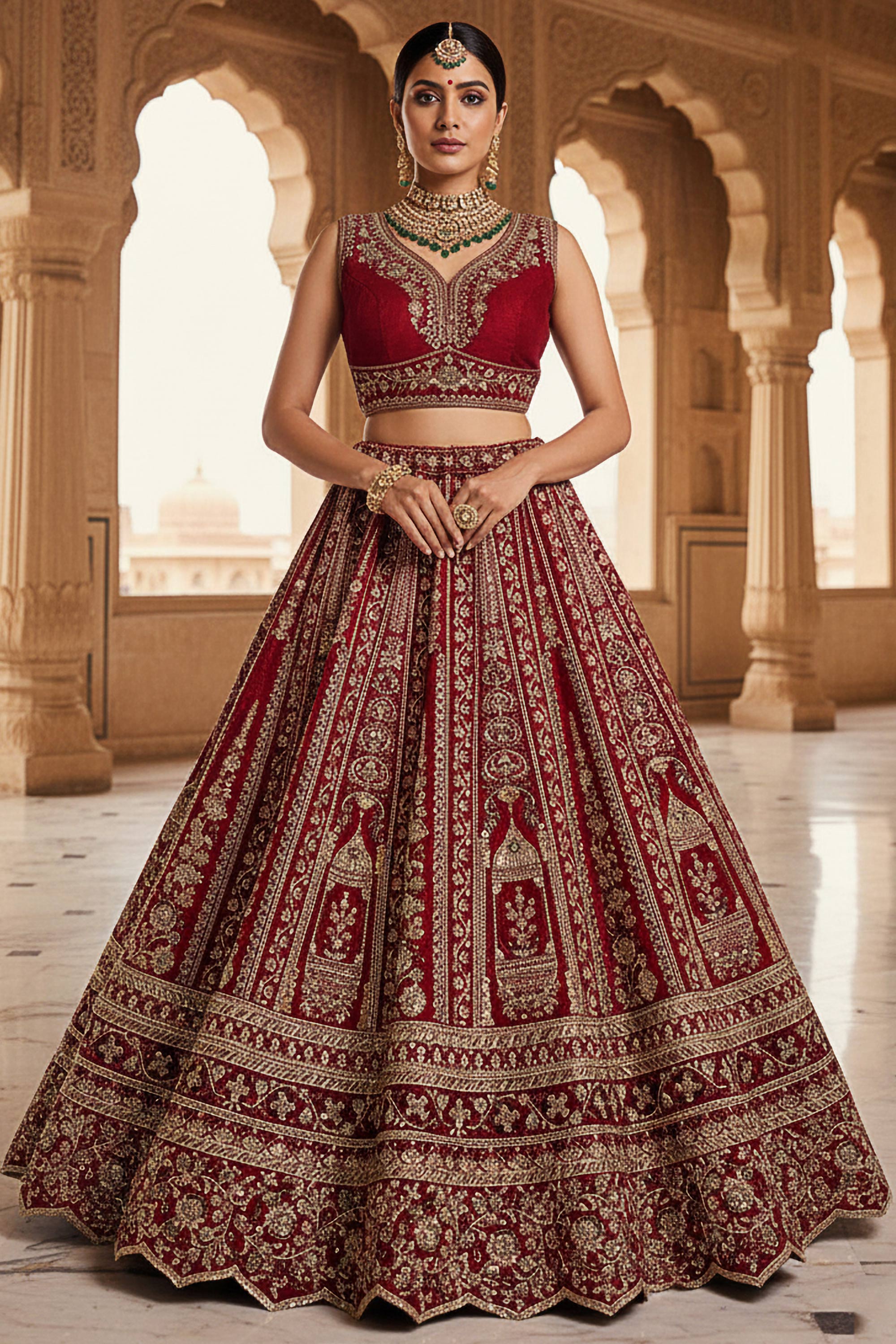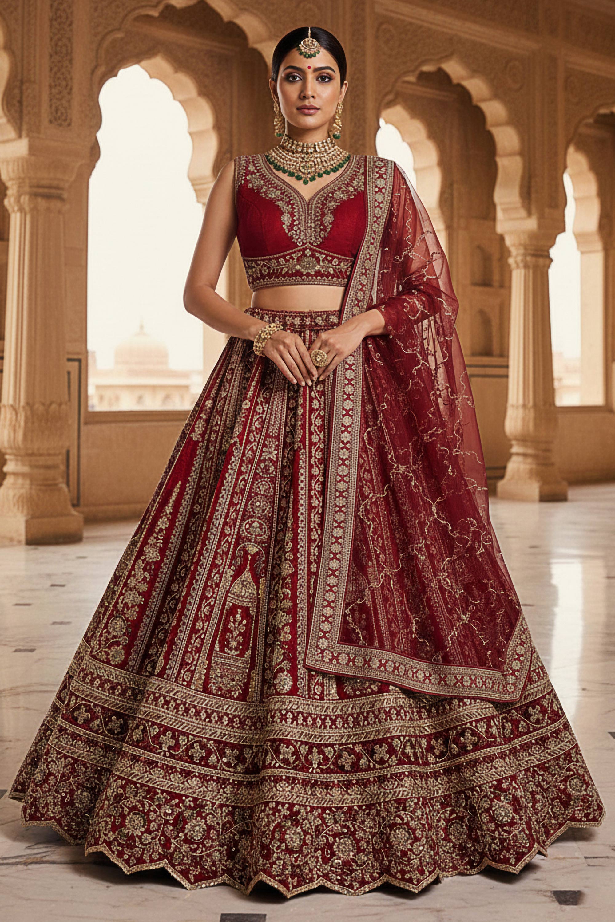 Attractive Red Silk Heavy Embroidered Bridal Lehenga Choli