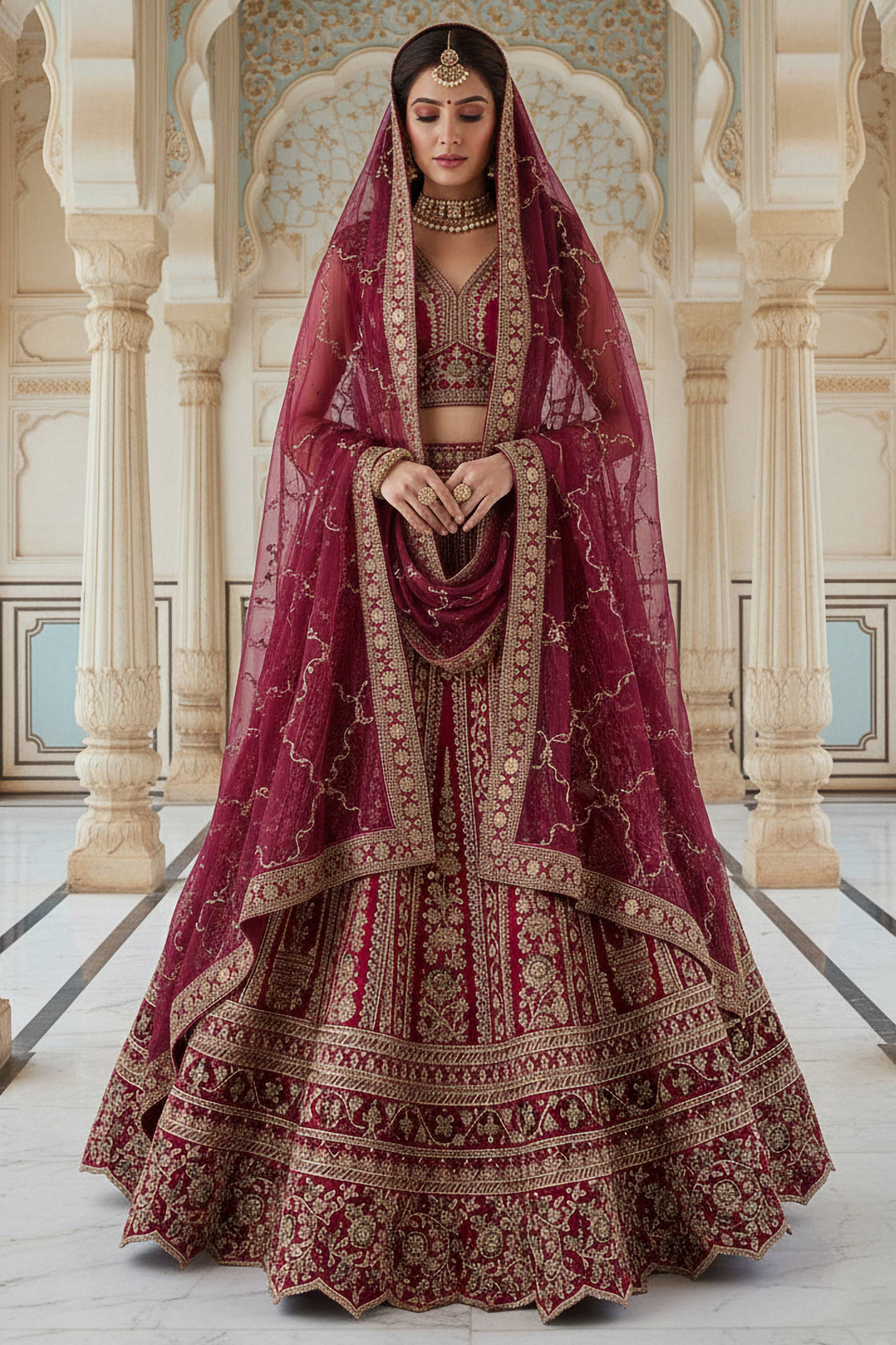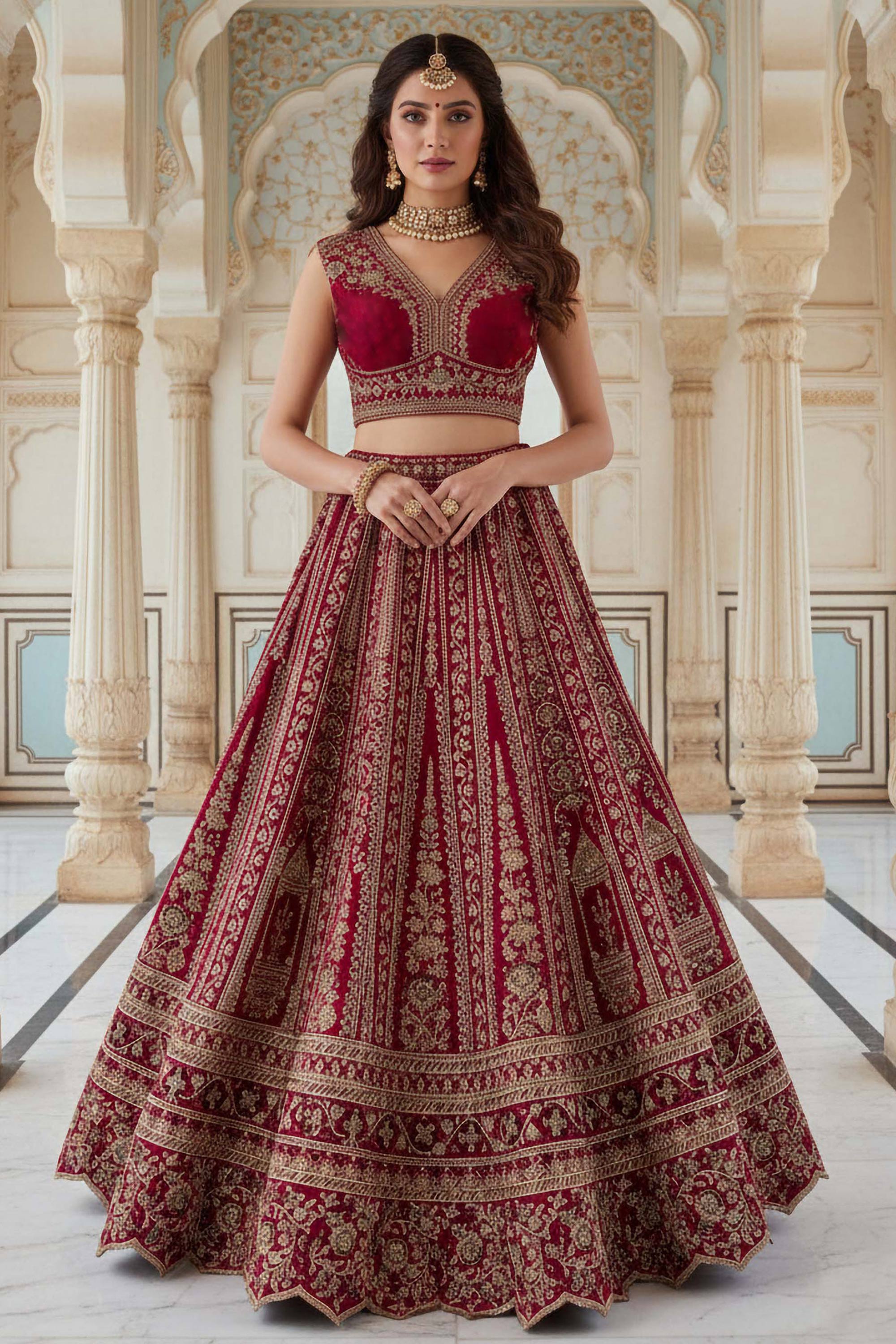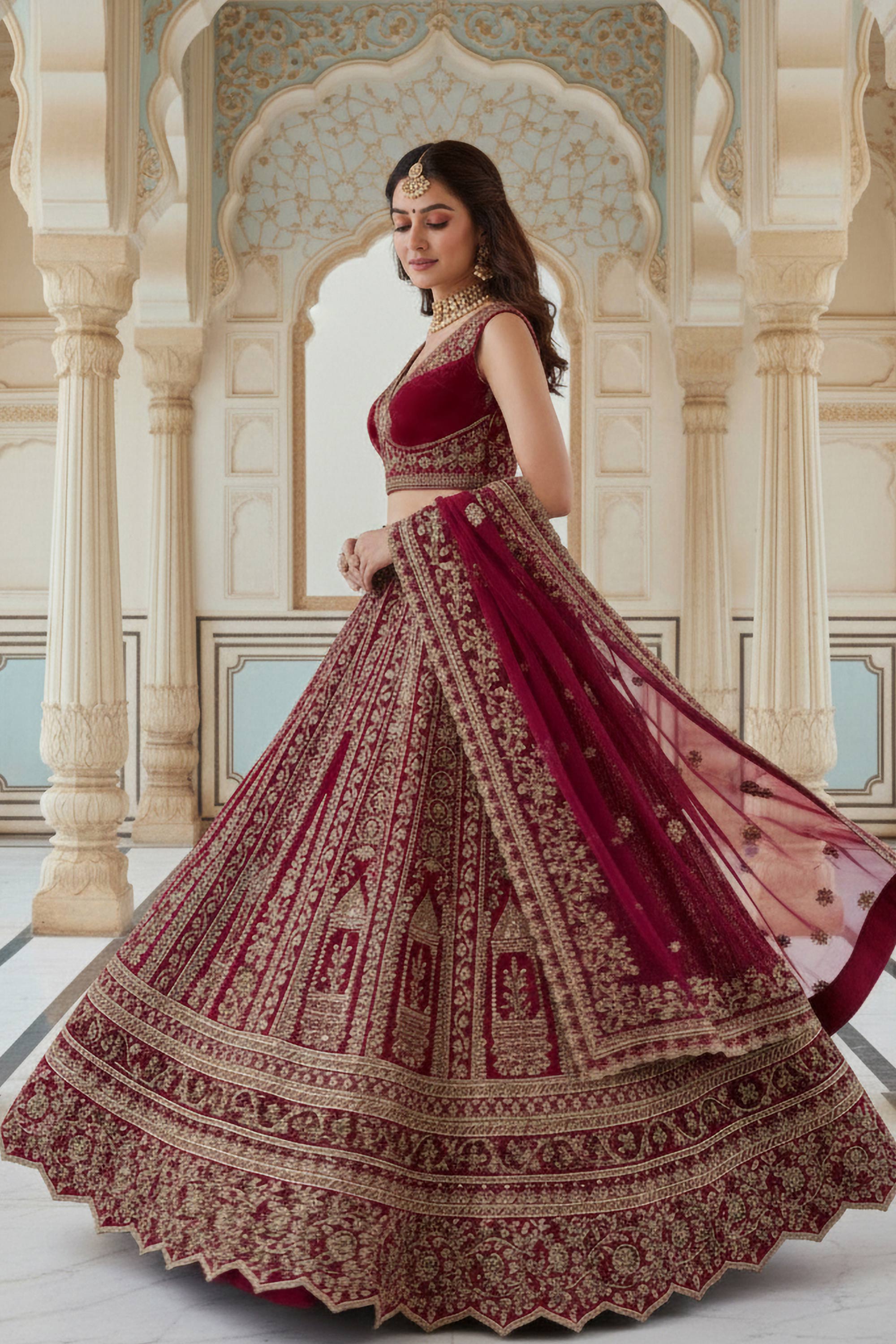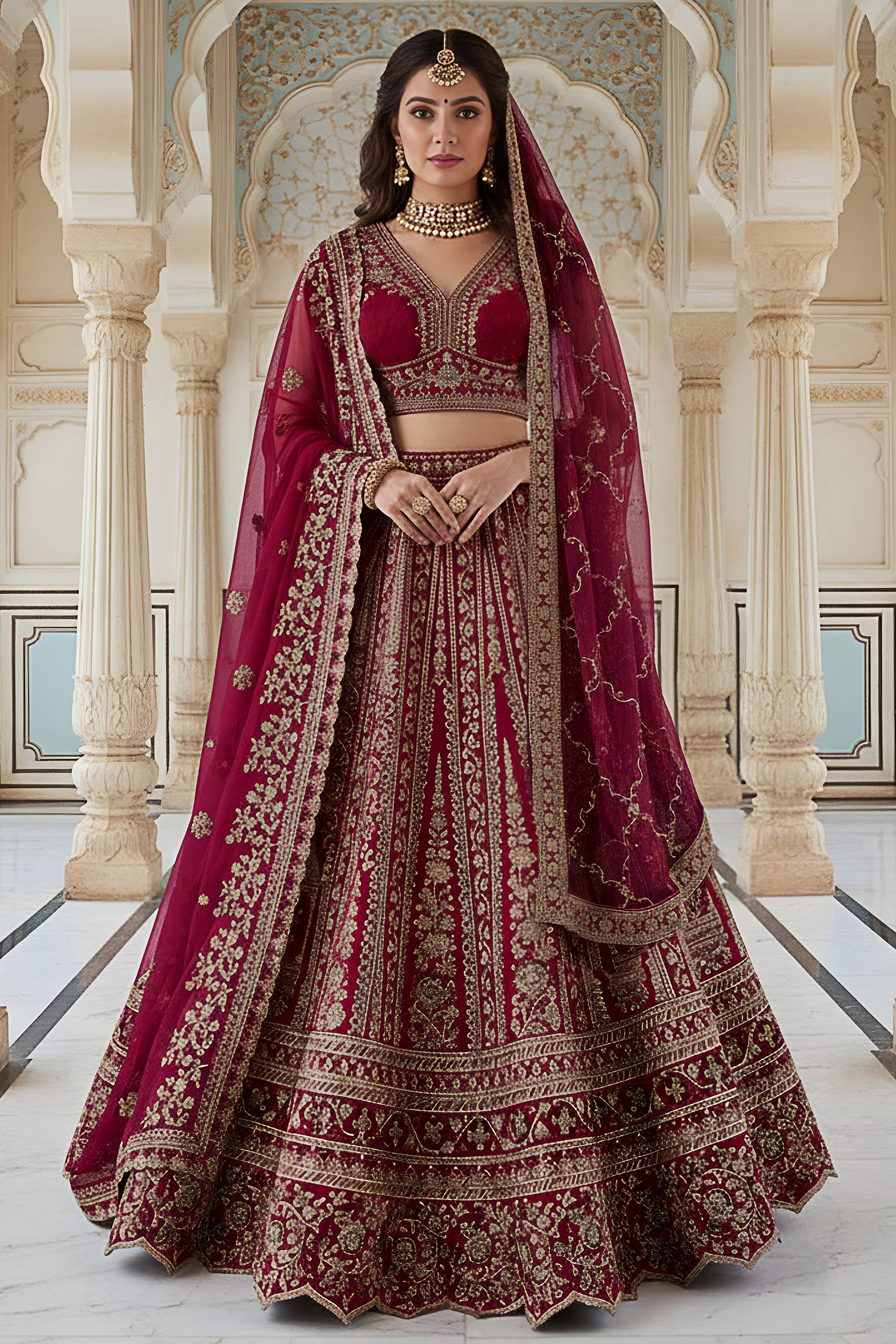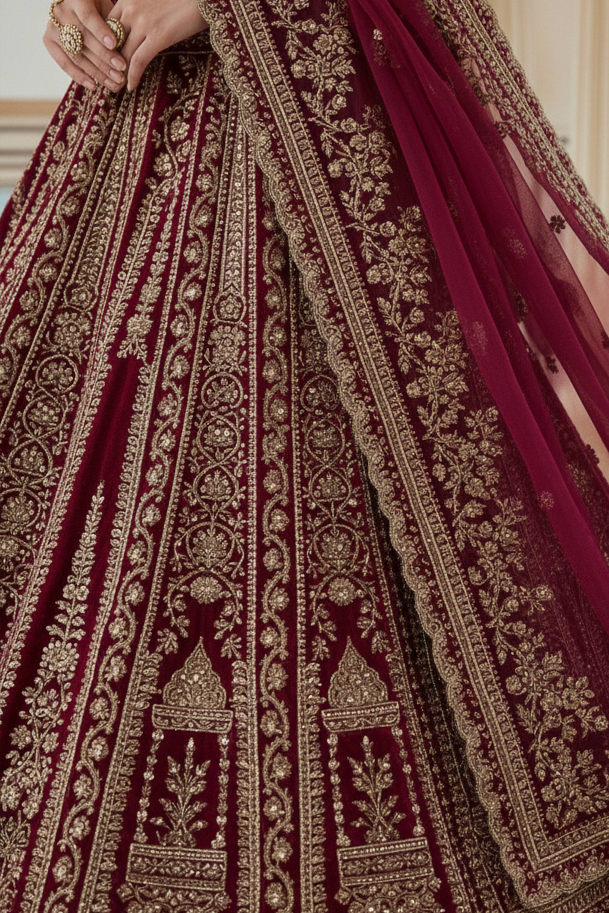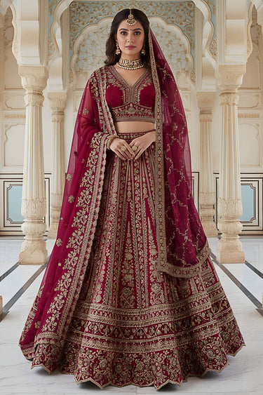 Maroon Beautiful Heavy Embroidered Bridal Lehenga Choli