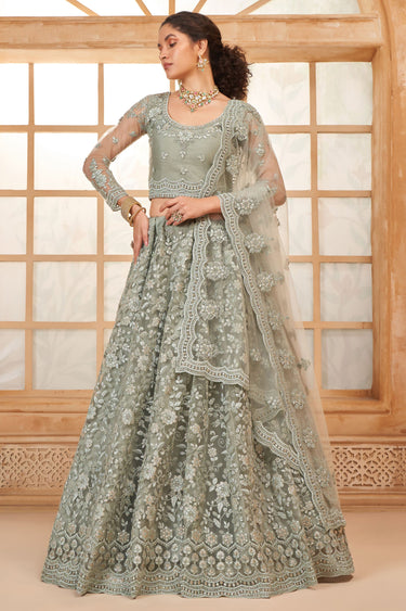 Net Wedding Lehenga Choli In Grey Color