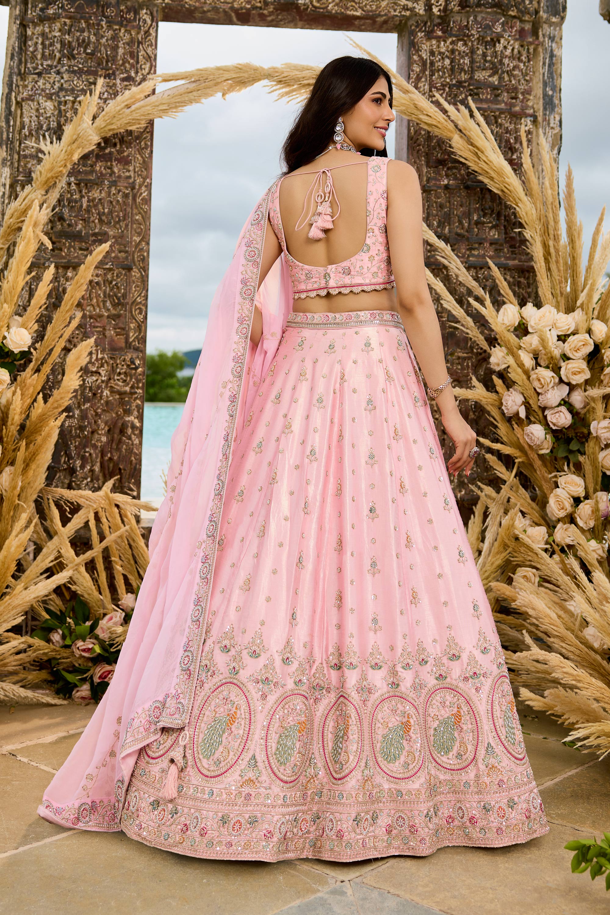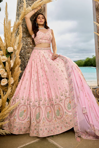 Pink Heavy Embroidered Designs Wedding Wear Lehenga Choli
