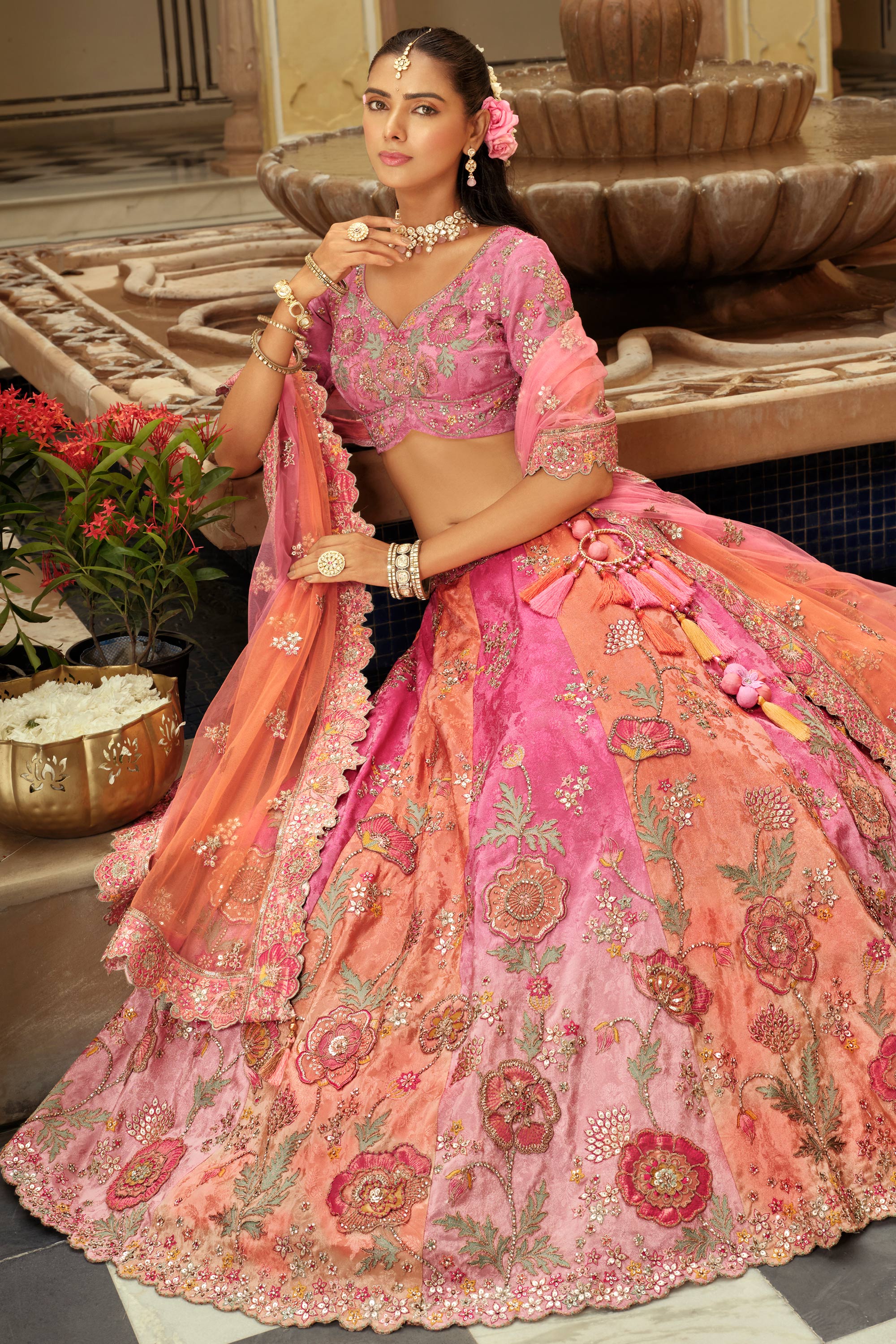 Pretty Pink Wedding Wear Readymade Lehenga With Heavy Choli