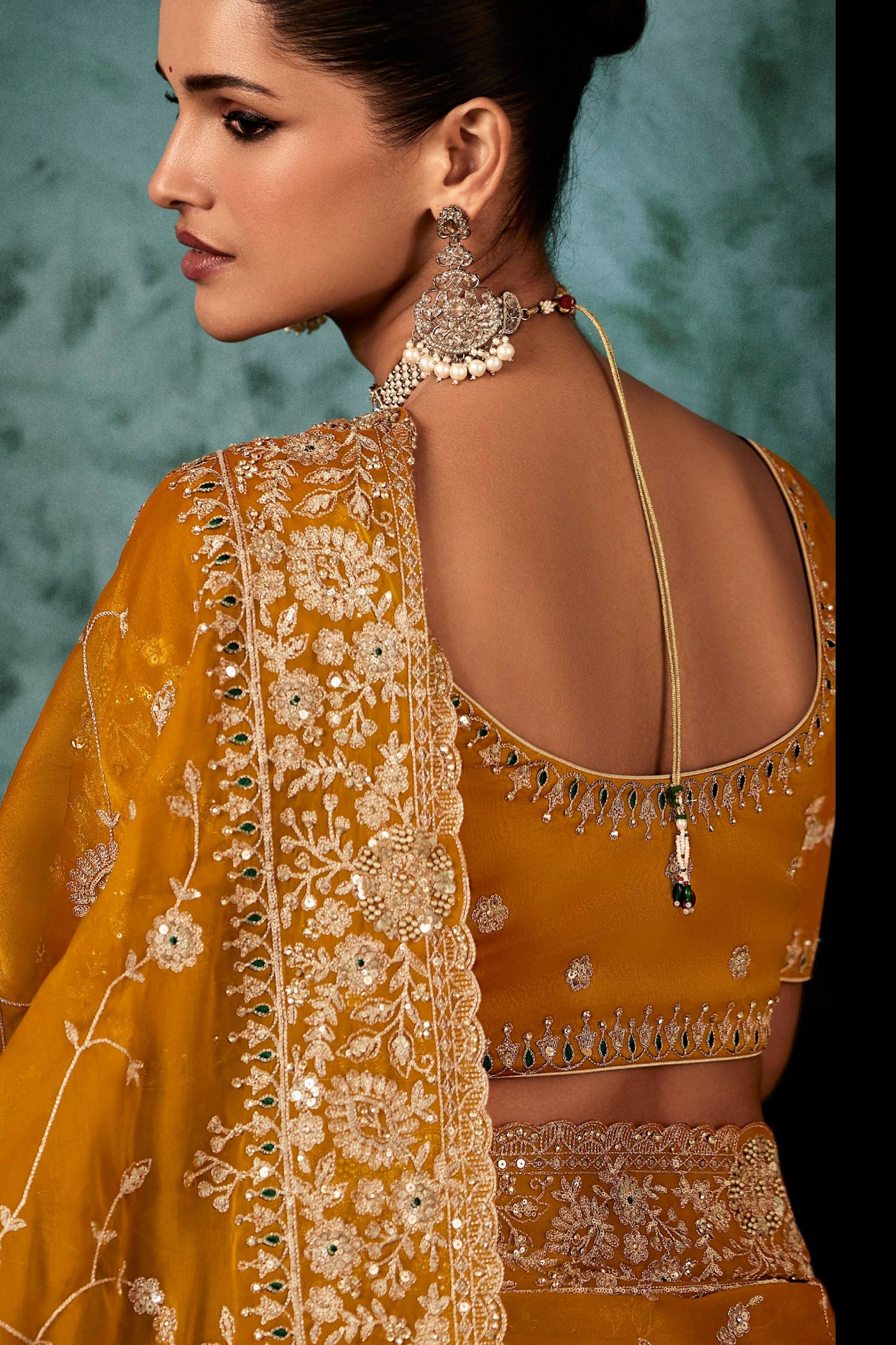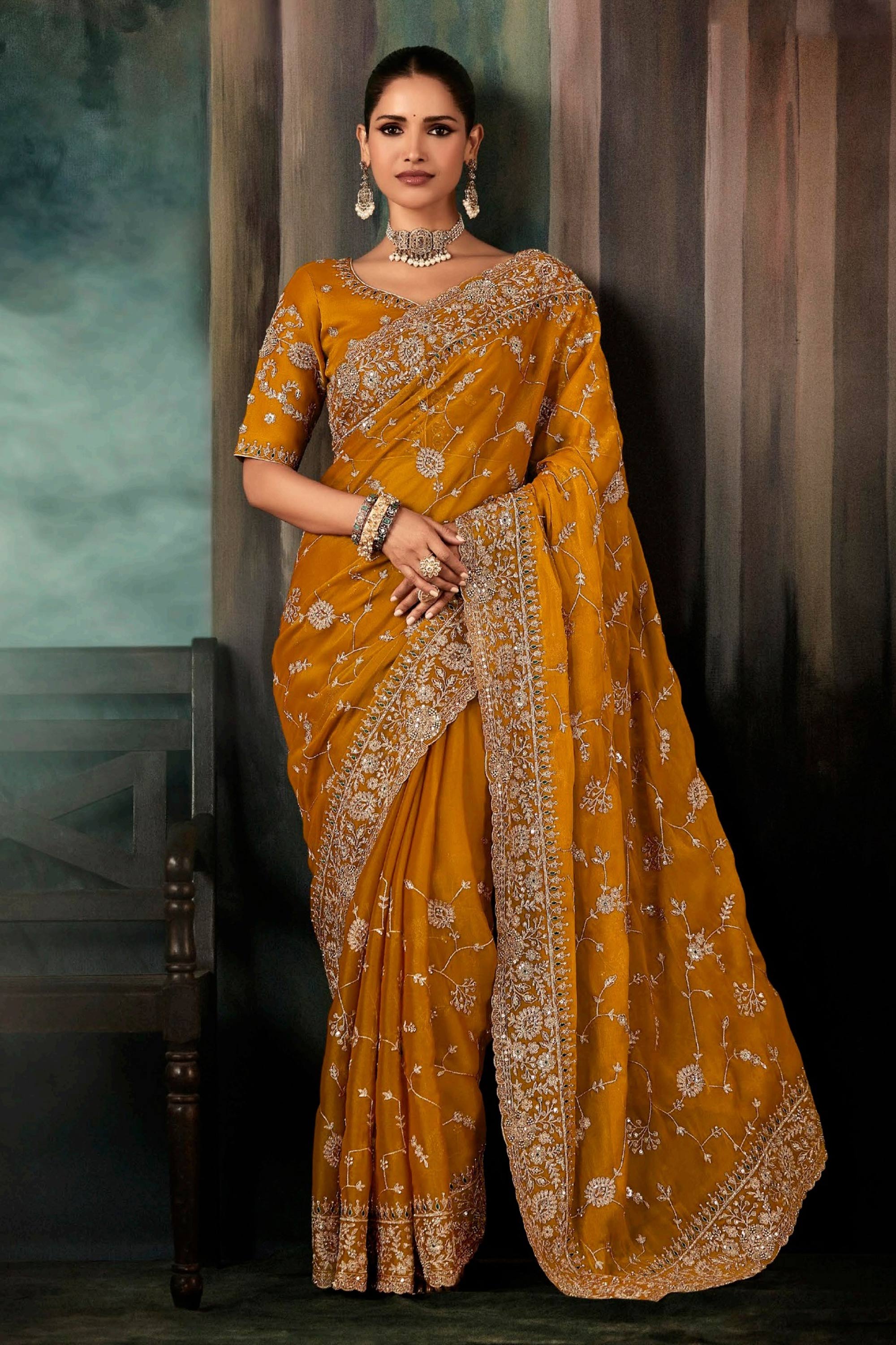 Embrace the art of traditional fashion with this exquisitely designed Heavy Embroidered Work Wedding Bridal Designer Saree. Its delicate yet elaborate embroidery reflects refined craftsmanship, making it the perfect attire for weddings, festive gatherings, and celebratory events. This saree's luxurious fabric is adorned with rich patterns, offering both comfort and unmatched elegance. Paired with an unstitched heavy work blouse, you have the freedom to create a tailored outfit that reflects your unique style. Add grace and poise to your special day with this saree that combines modern glamour with cultural heritage.