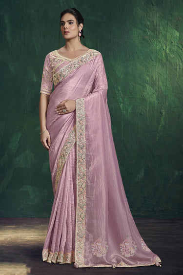 Pink Wedding Wear Art Silk Embroidered Border Work Readymade Saree