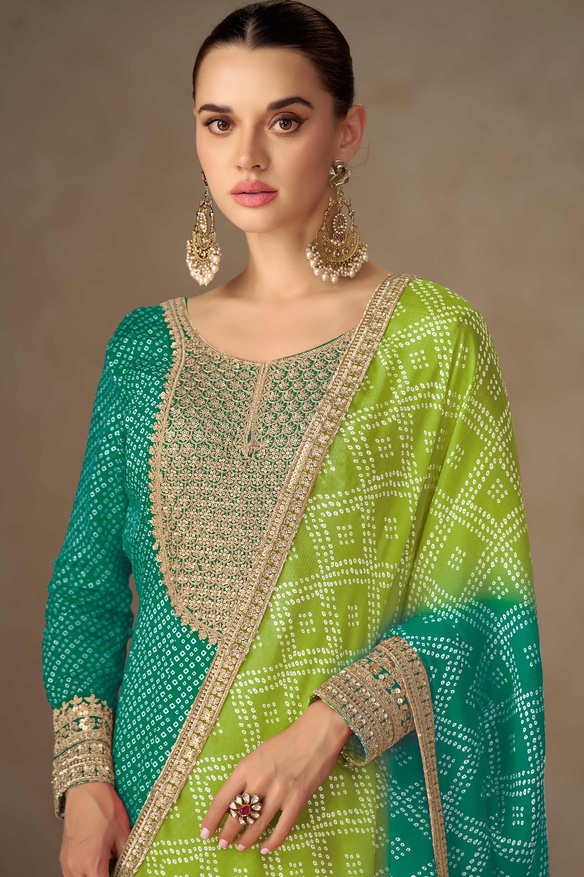 Chinon Green Sequins Work Readymade Anarkali Salwar Suit