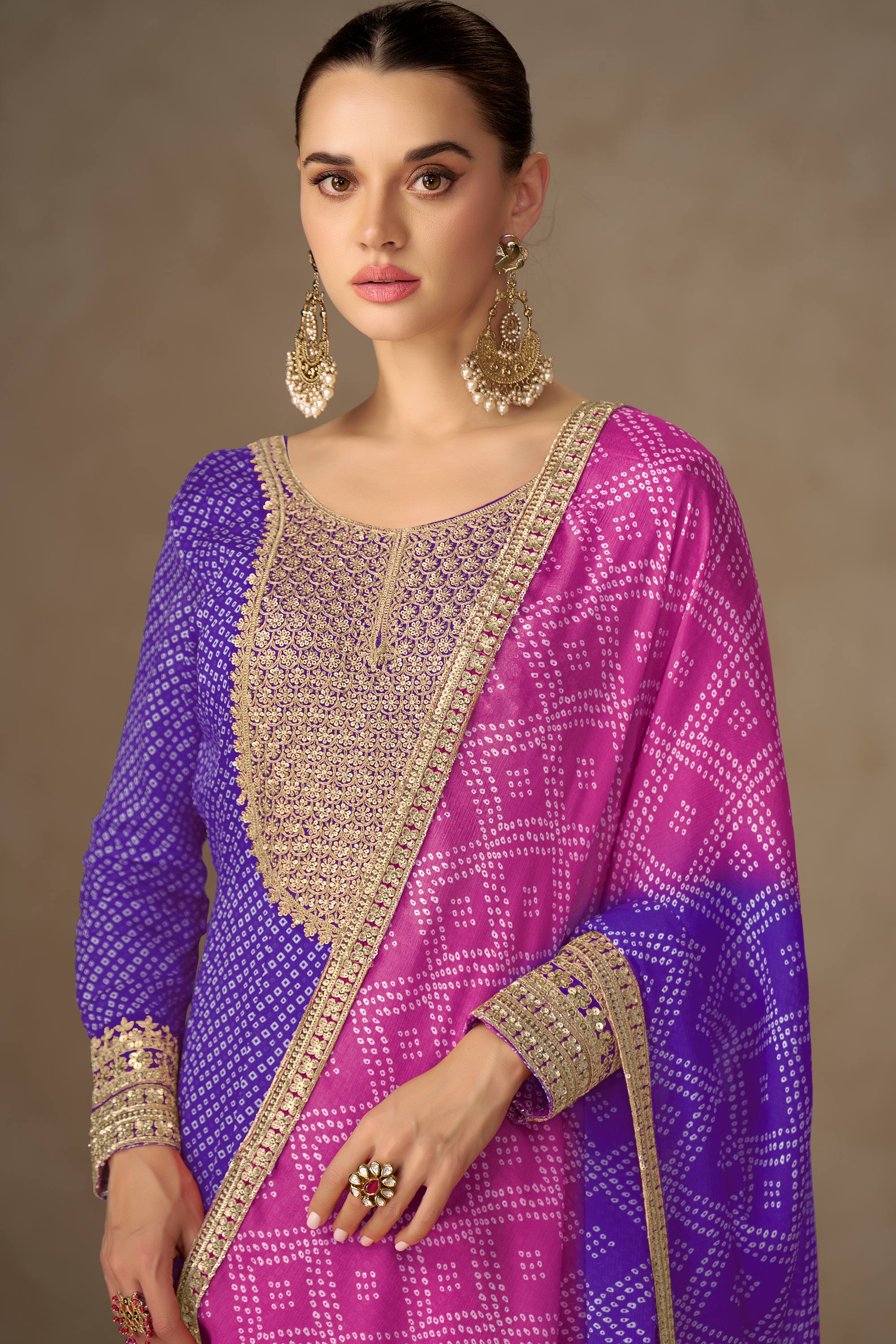 Achieve an effortlessly graceful appearance with the Chinon Sequins Work Readymade Anarkali Salwar Kameez. Crafted from Chinon fabric, this ready-to-wear outfit is highlighted by detailed sequin embellishments, making it ideal for formal events or cultural gatherings. The classic Anarkali design provides a flattering, flowy fit that enhances your natural elegance. Complete with a coordinating bottom and soft dupatta, it saves you time without compromising style. This beautifully crafted set blends traditional aesthetics with contemporary ease, offering a wardrobe solution that balances practicality and refined charm. Perfect for special occasions, it makes dressing up seamless and stylish.