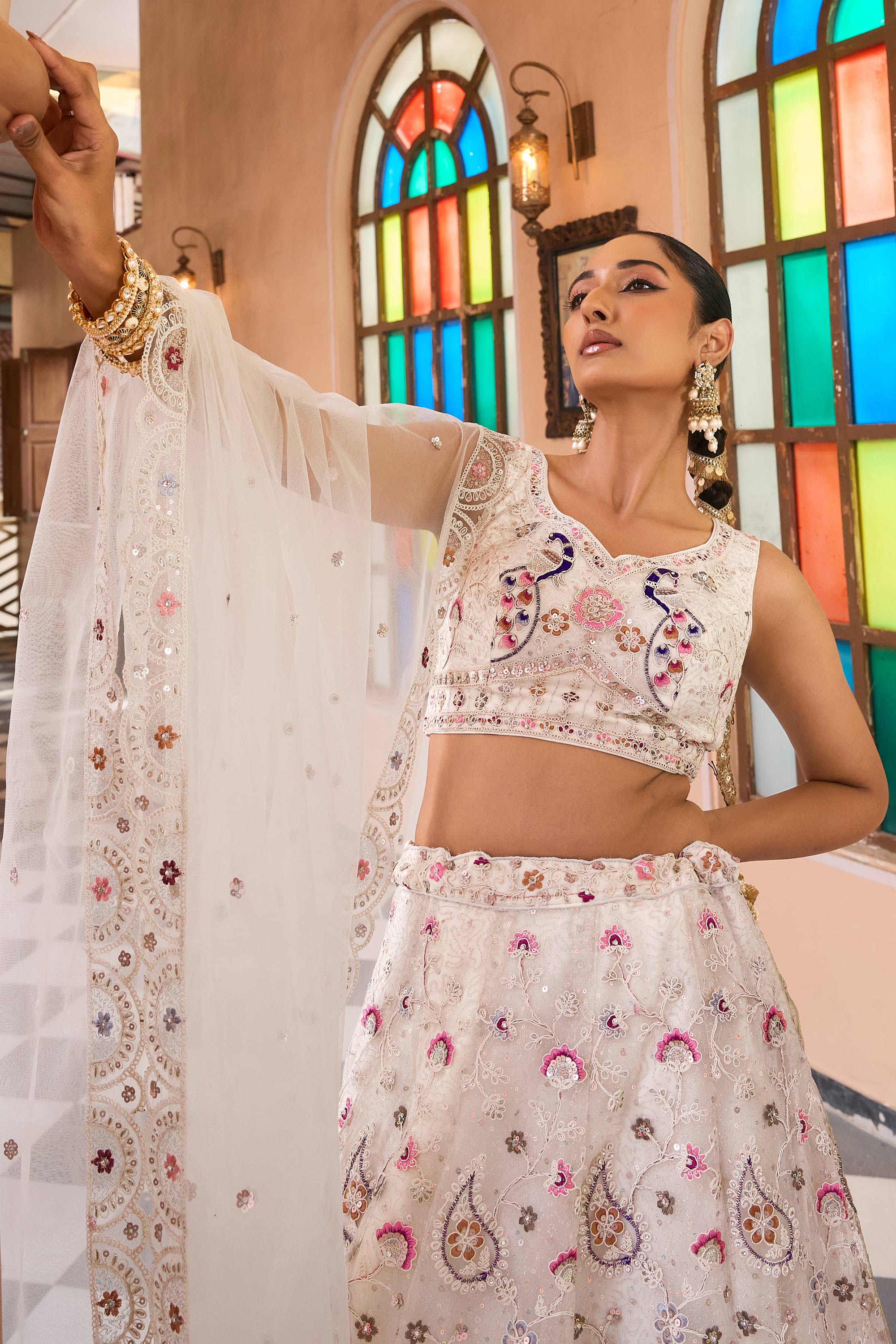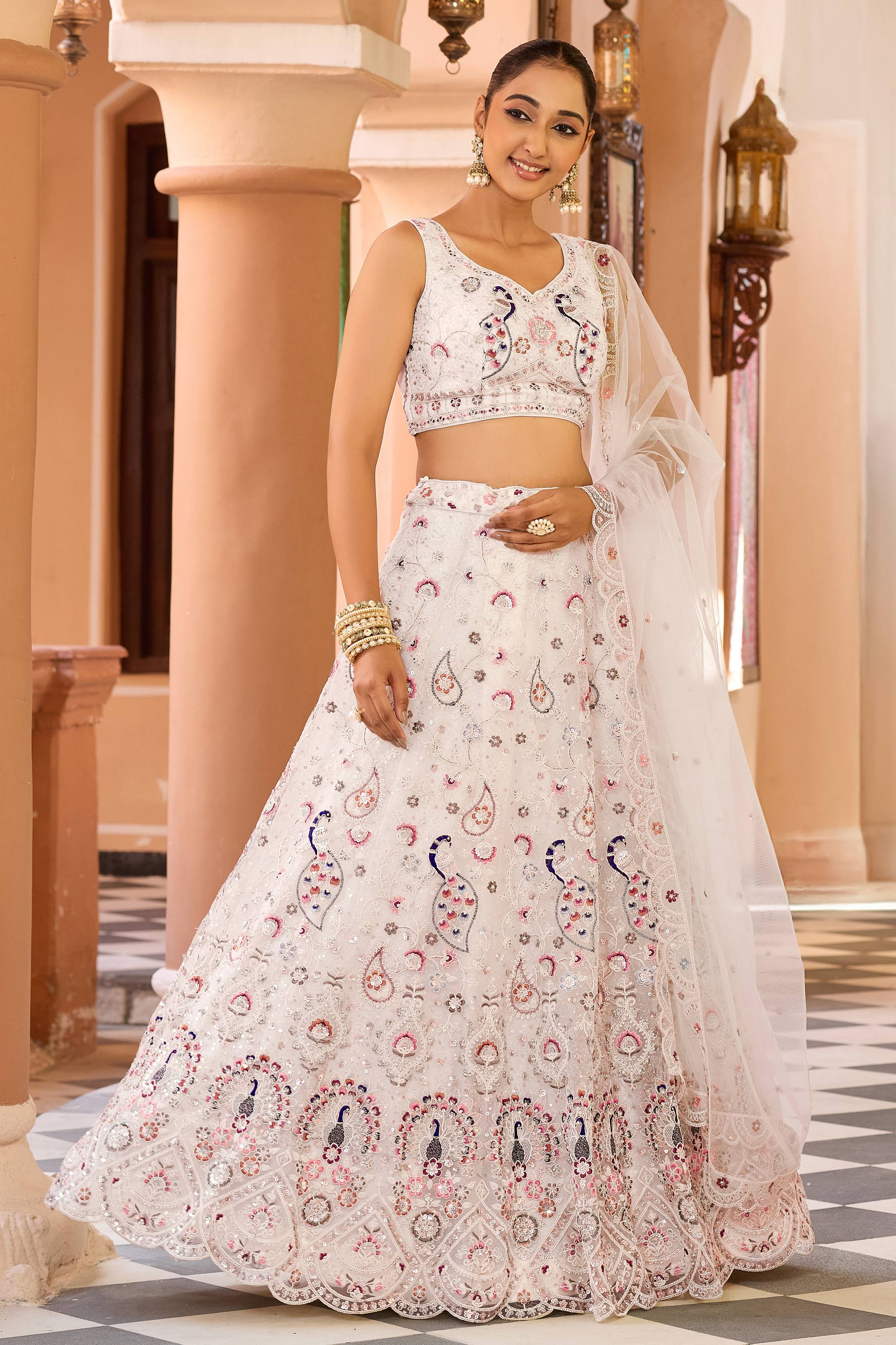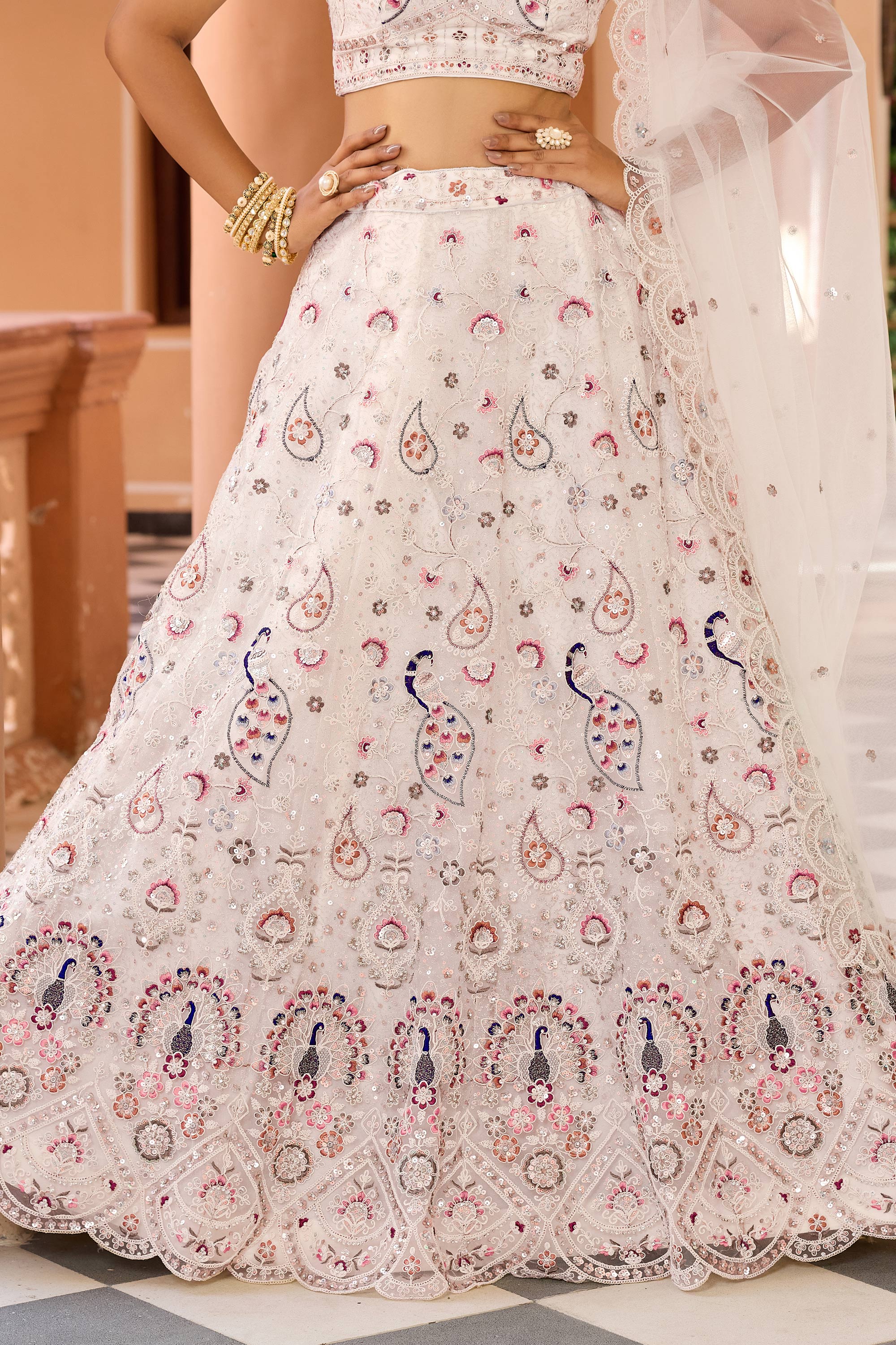Turn heads at every occasion with this elegant semi stitched lehenga made of lightweight color net fabric. Designed with shimmering sequins embroidery, this outfit brings a perfect blend of charm and sophistication to your wardrobe. It comes with an unstitched blouse, giving you the freedom to customize it to your taste, along with a matching dupatta for a complete, stunning ensemble. Ideal for weddings, receptions, and festive events, this lehenga promises to add a touch of glamor and grace. Effortless to drape and style, it's a must have addition to your ethnic wear collection.