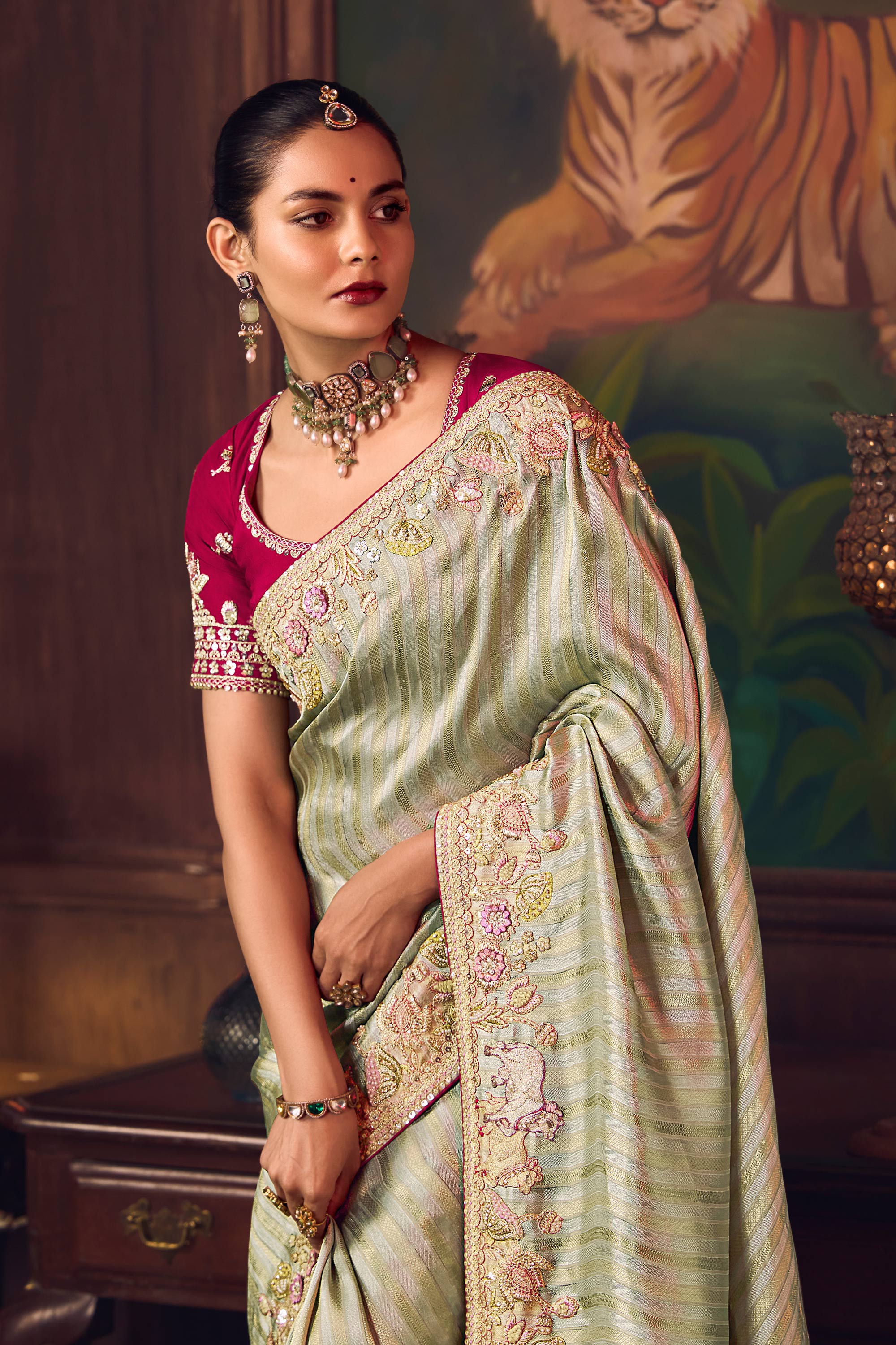 Make your special occasions even more unforgettable with this exquisite Heavy Border Work Wedding Bridal Silk Saree. This saree combines traditional artistry and modern elegance with intricate border detailing, designed to leave a lasting impression. Made from premium quality silk, it ensures a smooth and graceful drape. Paired with an unstitched heavy work blouse, you can personalize the design to suit your style. Whether it's for weddings or celebrations, this saree will make you the center of attention. Choose timeless sophistication for your wardrobe today!