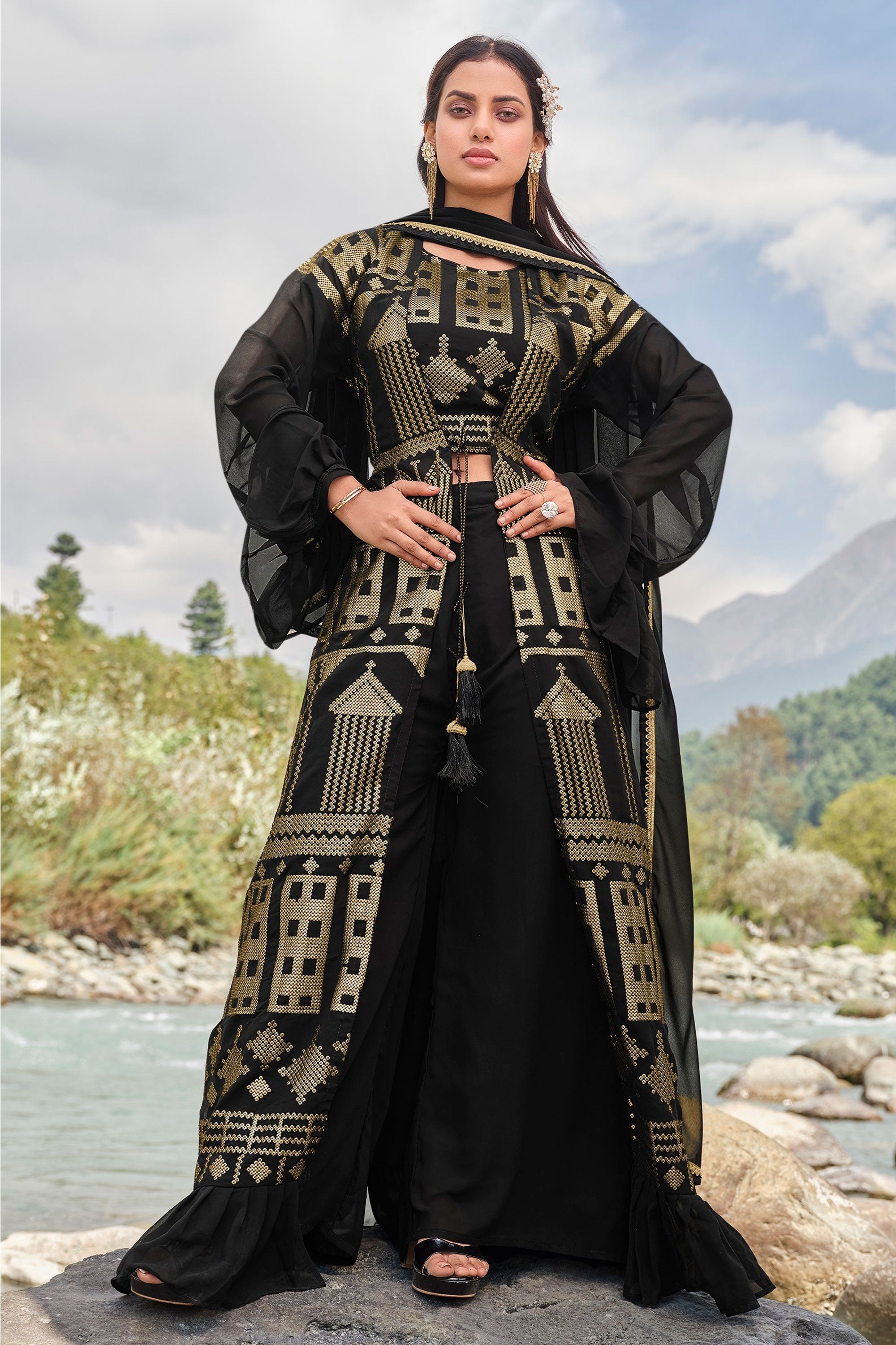 Charming Black Georgette Fabric Palazzo Suit