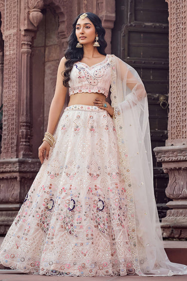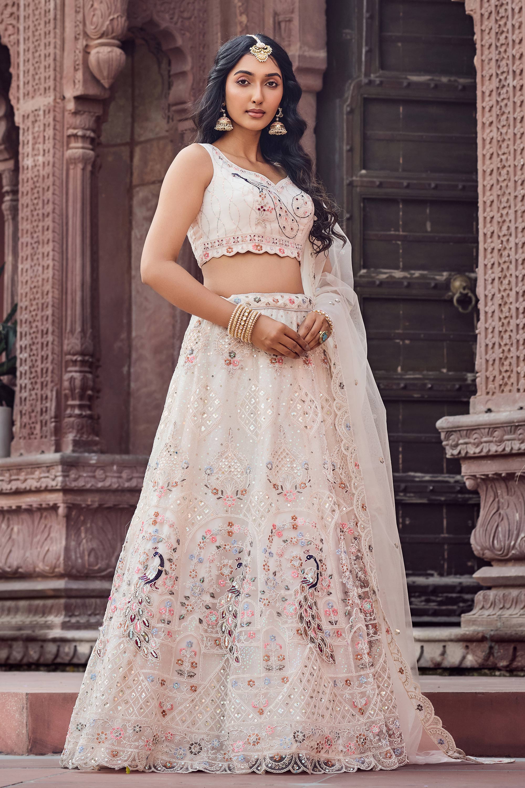 Cream Wedding Wear Embroidered Lehenga Choli With Dupatta