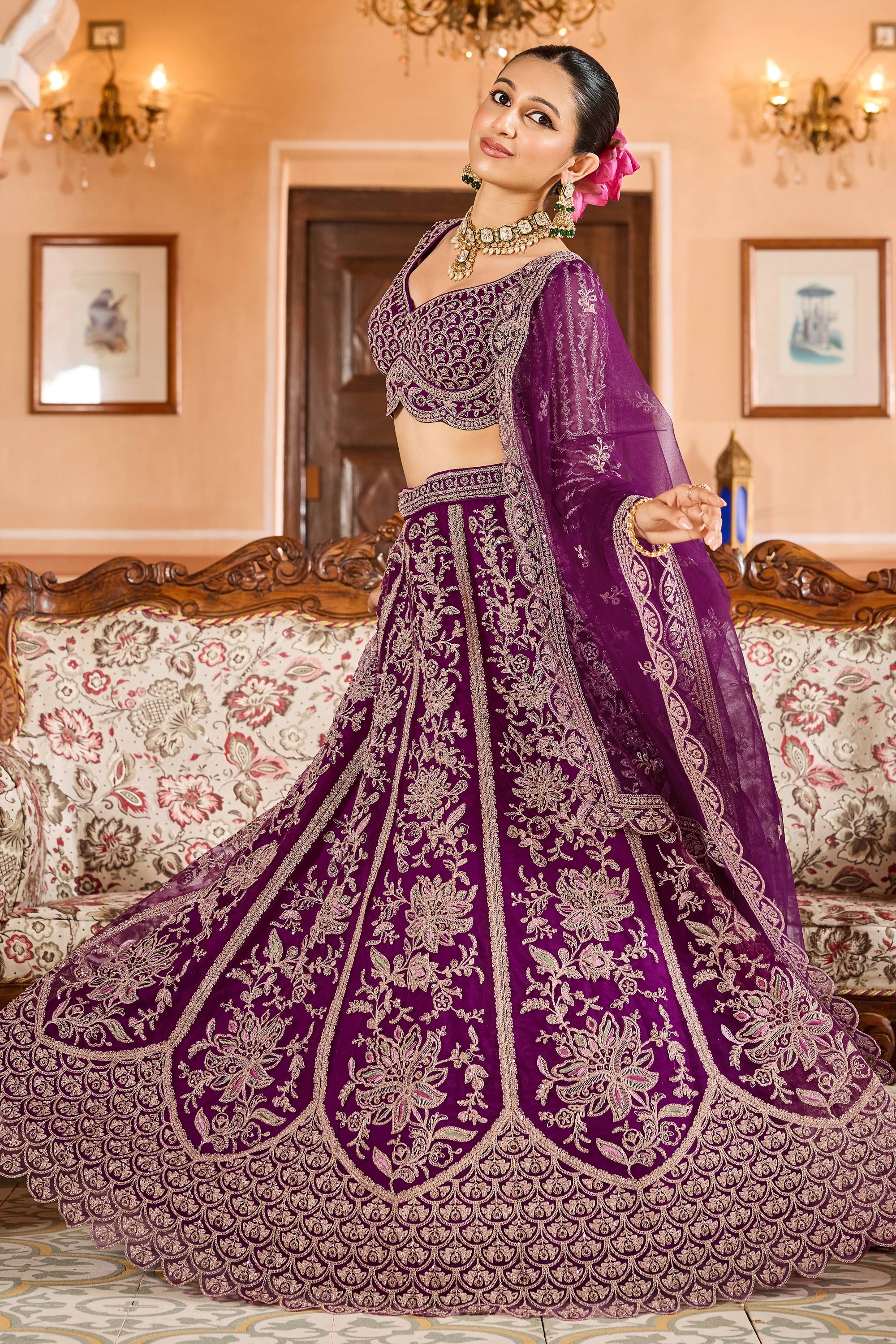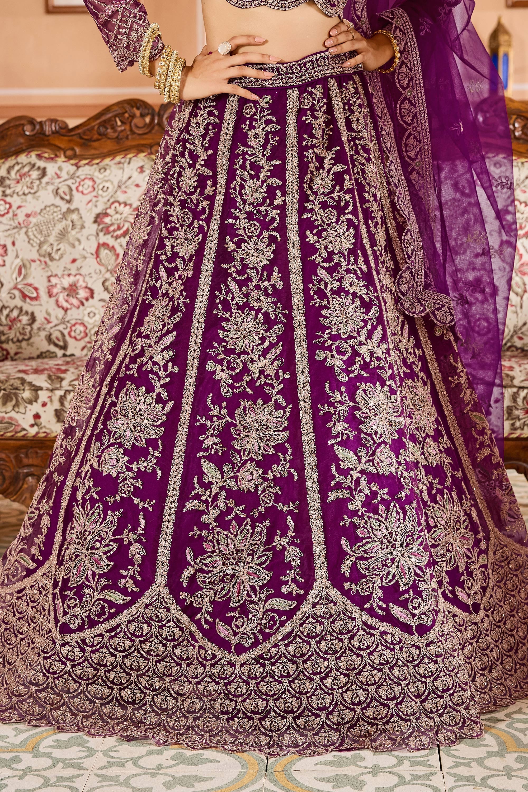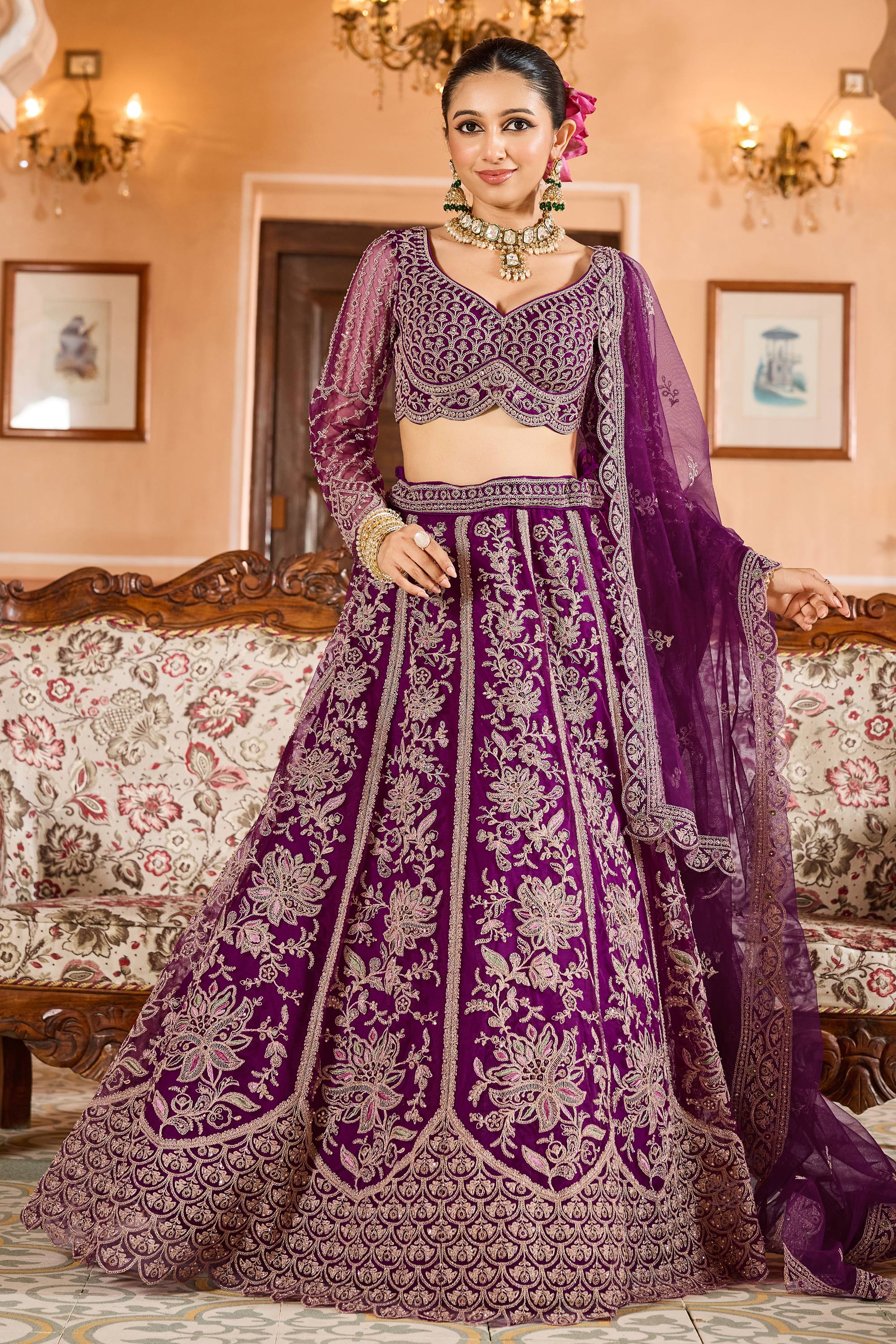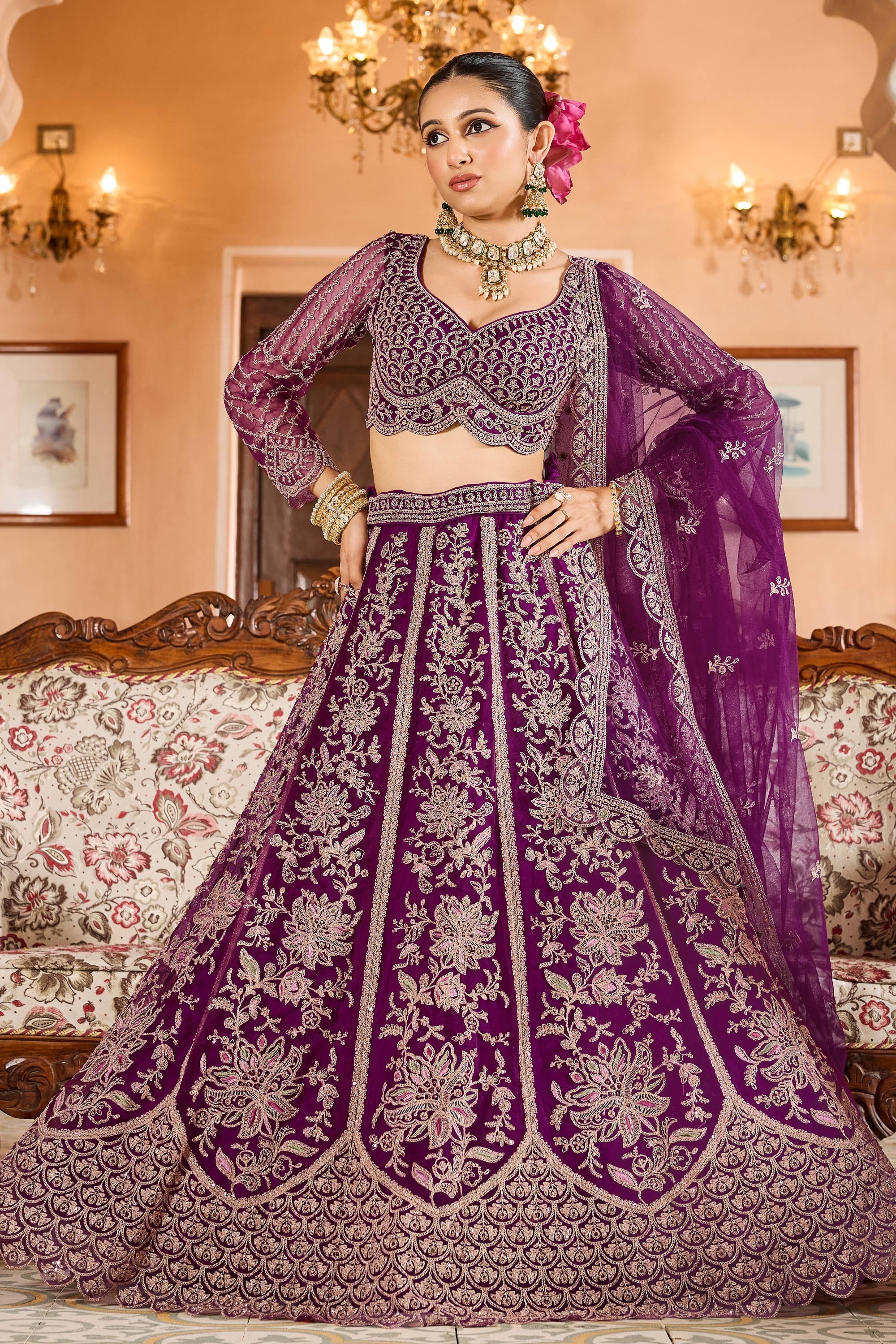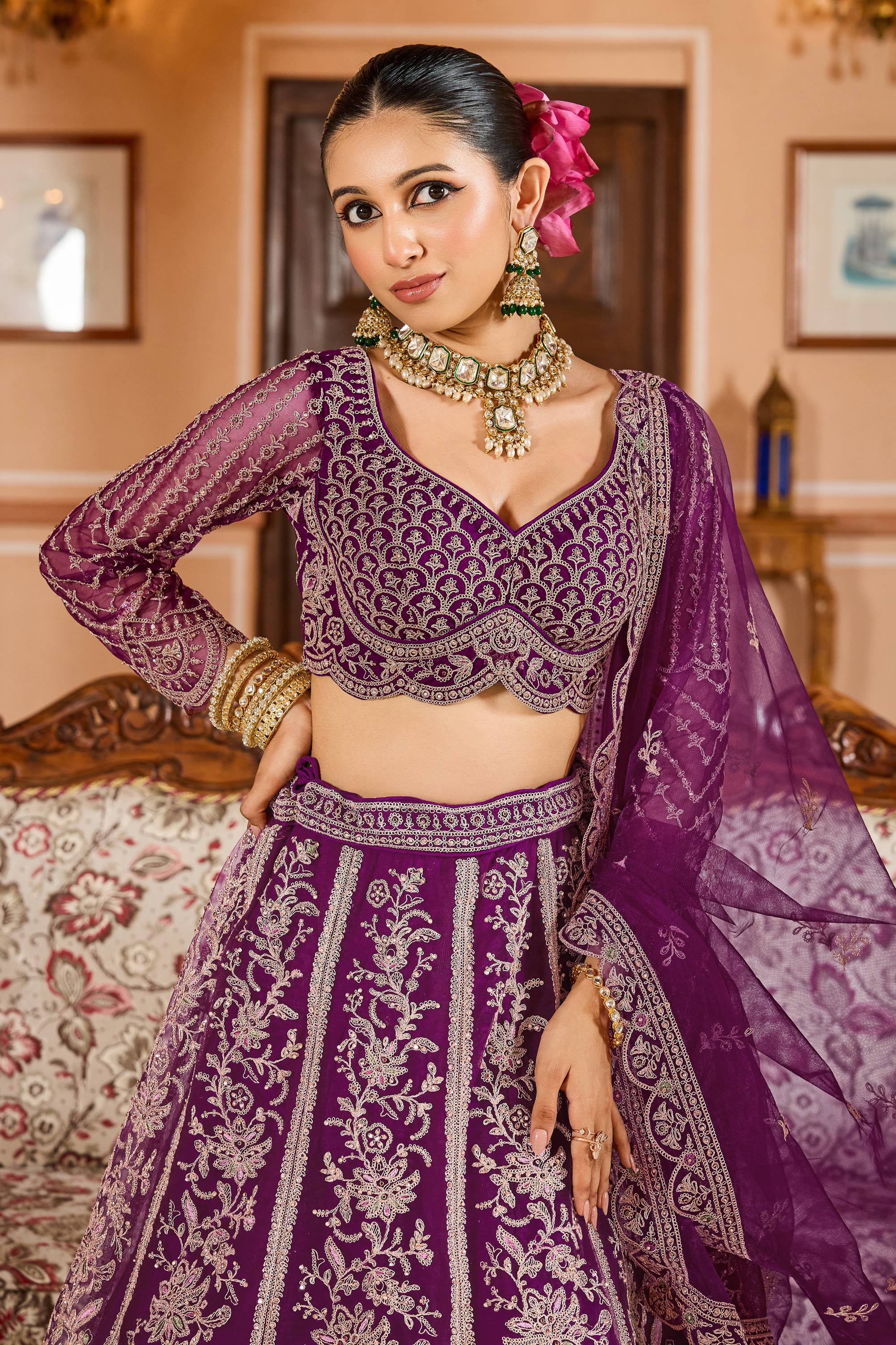 Embroidered Purple Net Fabric Lehenga Choli For Wedding Wear