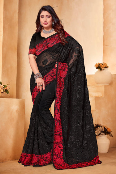 Create an elegant ensemble with our Rich Color Georgette Festive Wear Saree with Blouse. Featuring delicate embroidery work on luxurious georgette material, this saree exhibits both style and quality. Perfect for festive occasions, the vivid colors beautifully capture the celebratory spirit. Paired with a coordinating blouse piece, you will surely steal the show. Maintain the grandeur of this exquisite saree by opting for dry clean only.